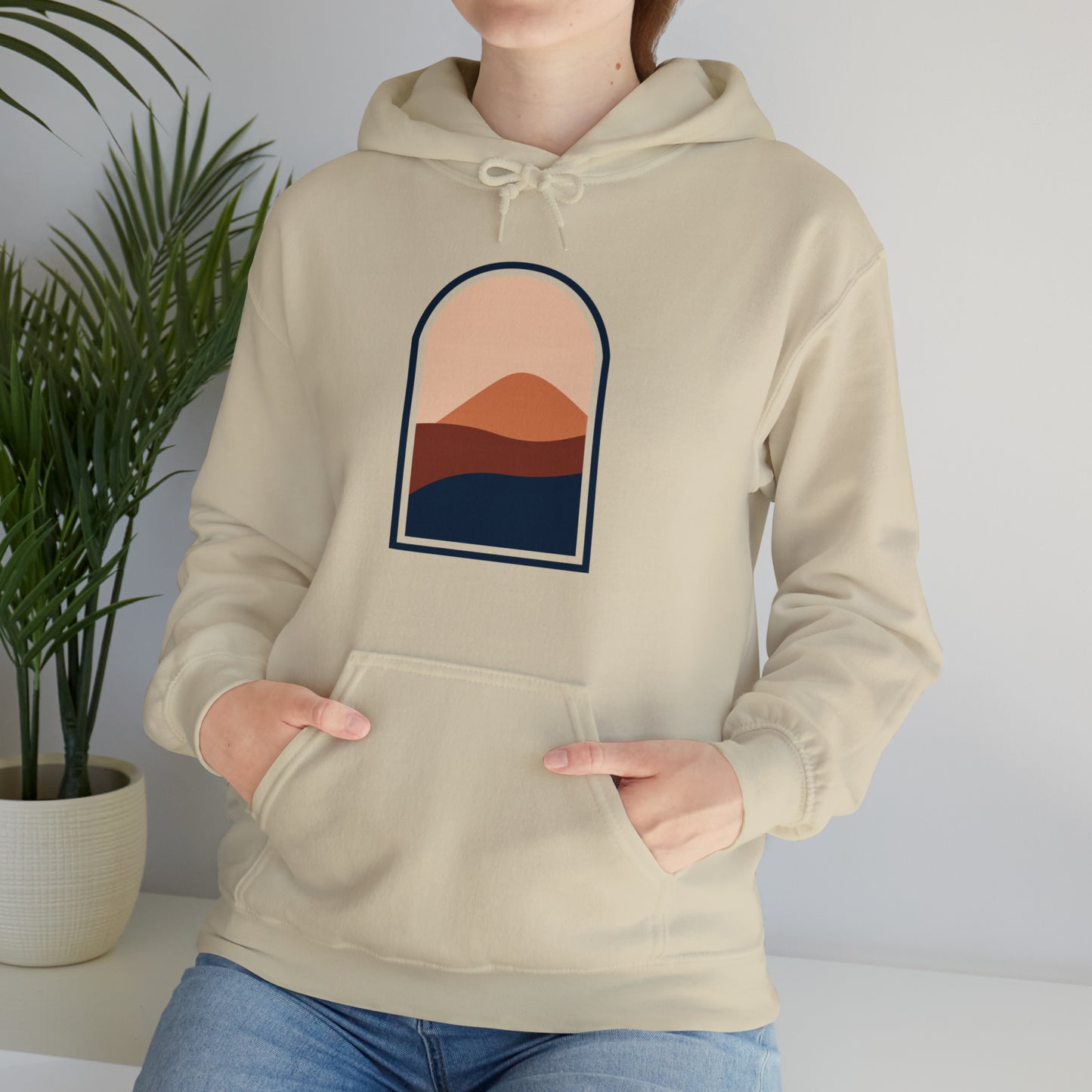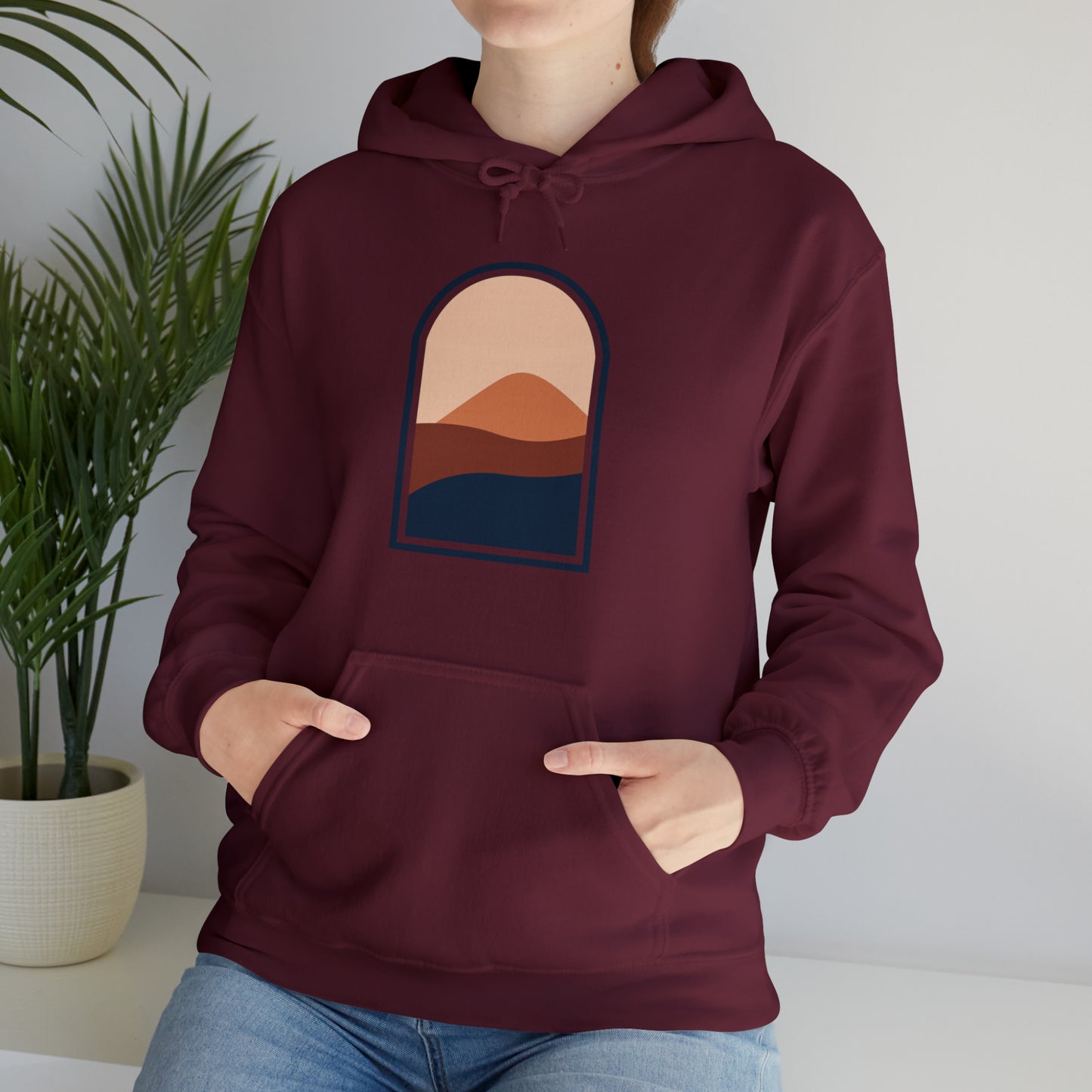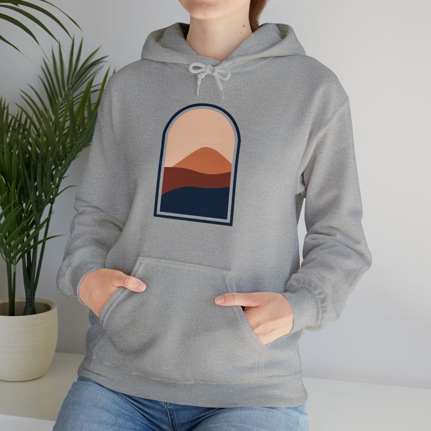 Abstract Shapes Sunrise Sunset Window Landscape V14 | Abstract | Minimalist | Modern Unisex Hooded Hoodie Sweatshirt