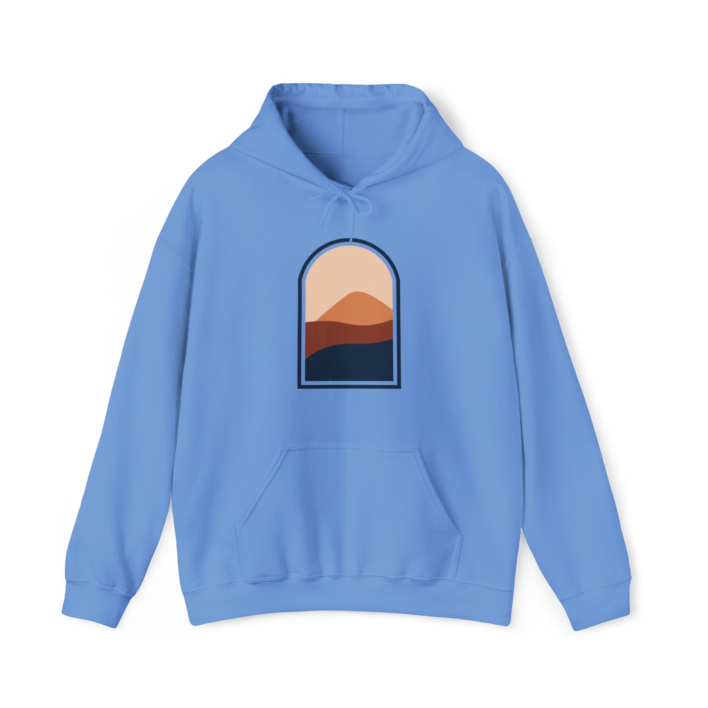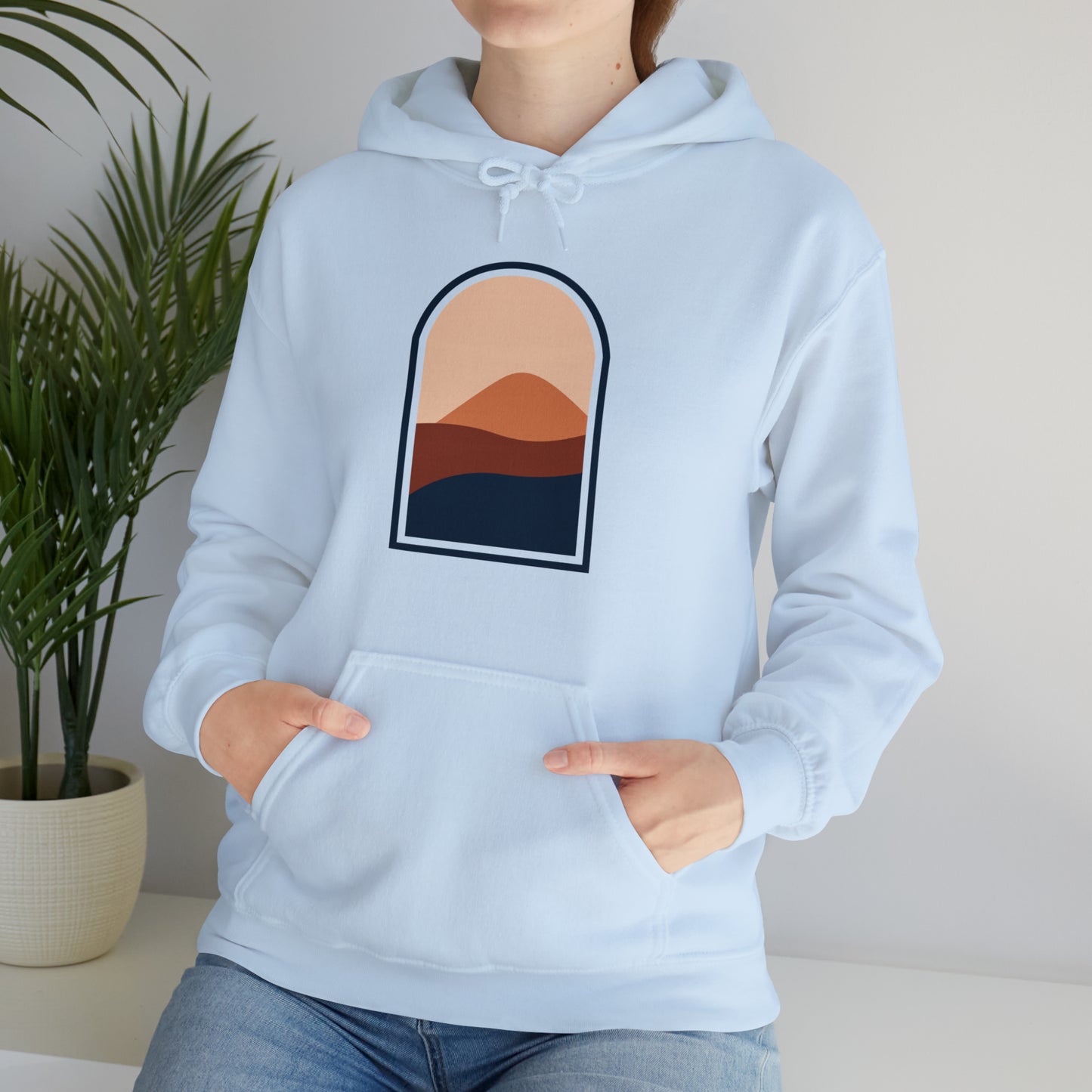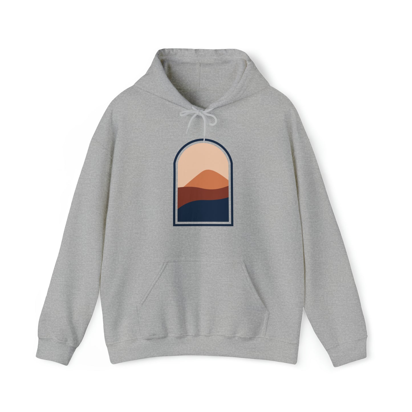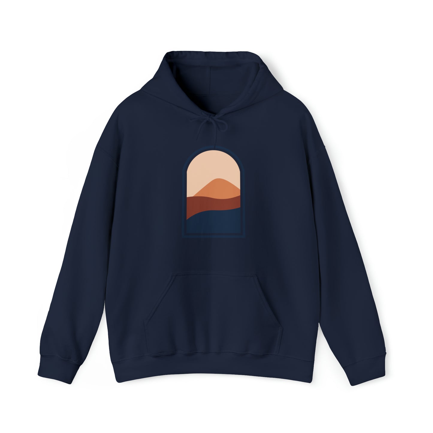 Abstract Shapes Sunrise Sunset Window Landscape V14 | Abstract | Minimalist | Modern Unisex Hooded Hoodie Sweatshirt