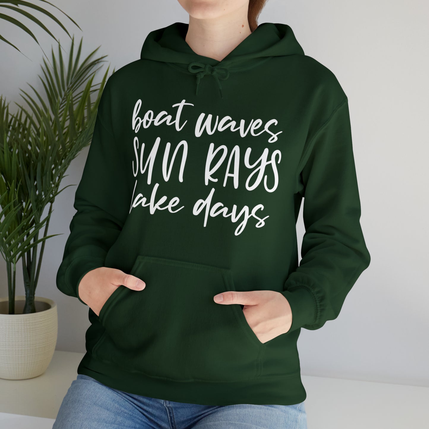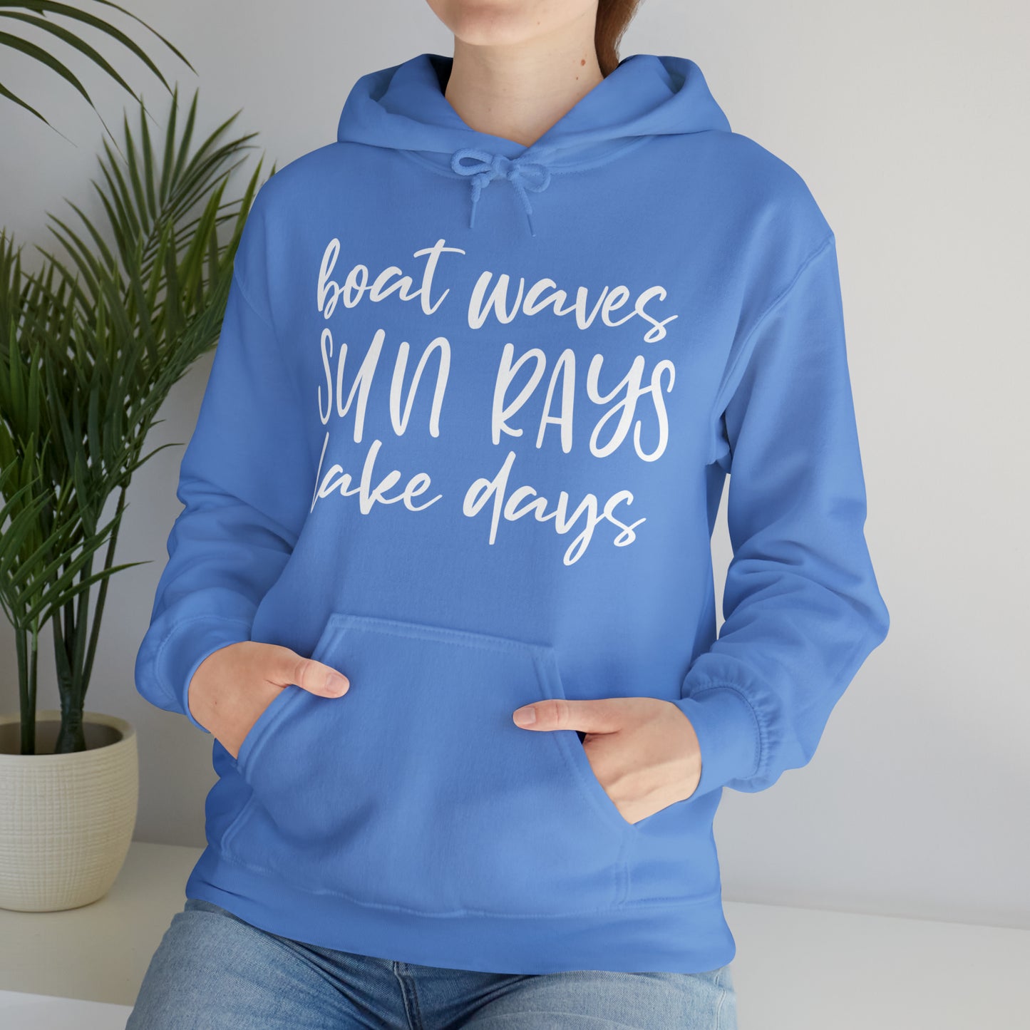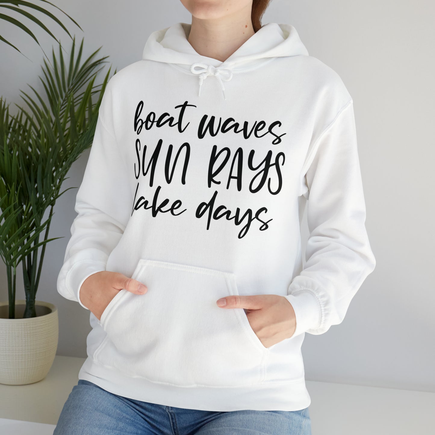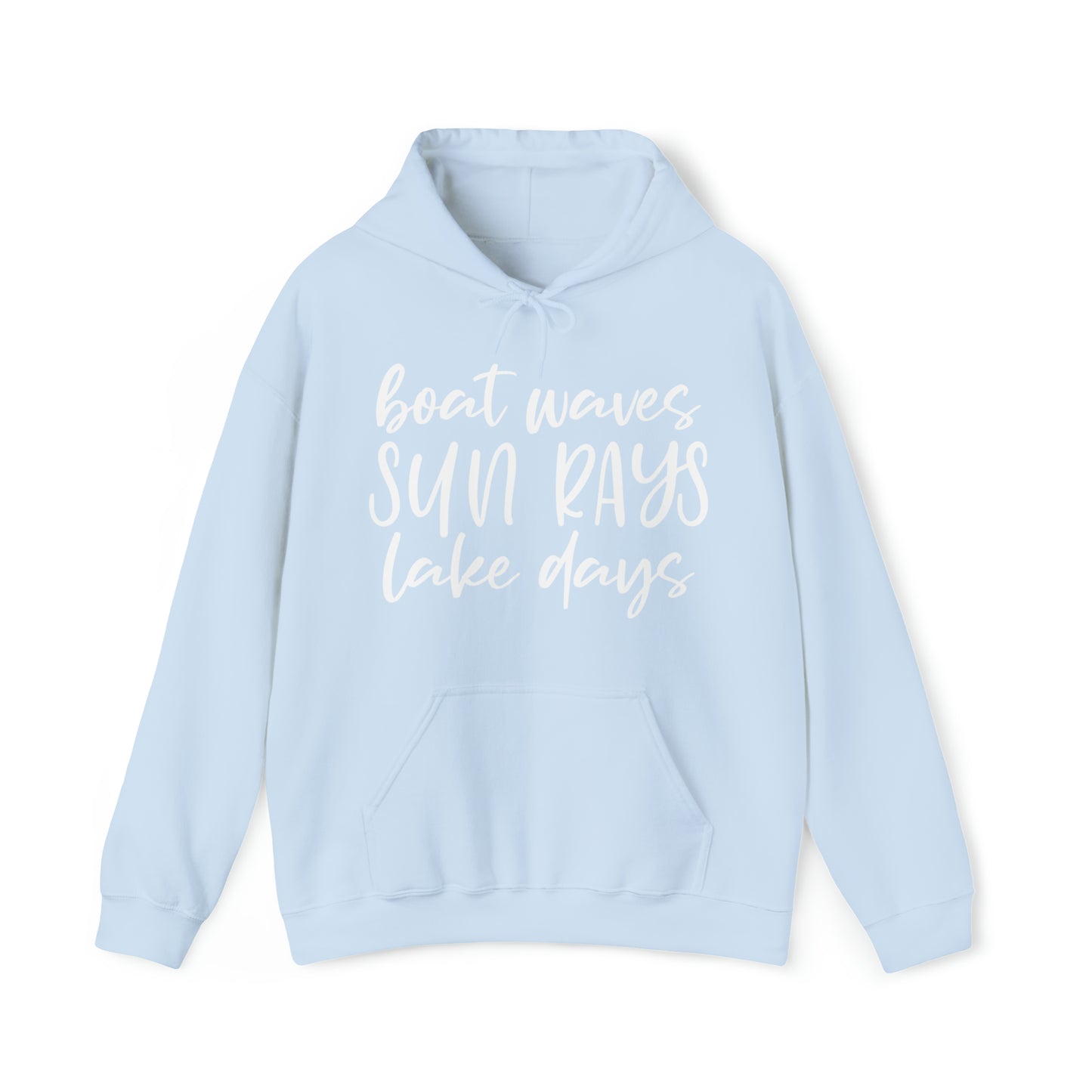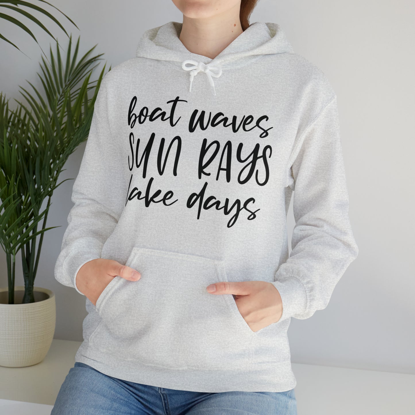 Beach Sweatshirt | Boat Waves Sun Rays Lake Days Beach Life | Unisex Hooded Hoodie Sweatshirt