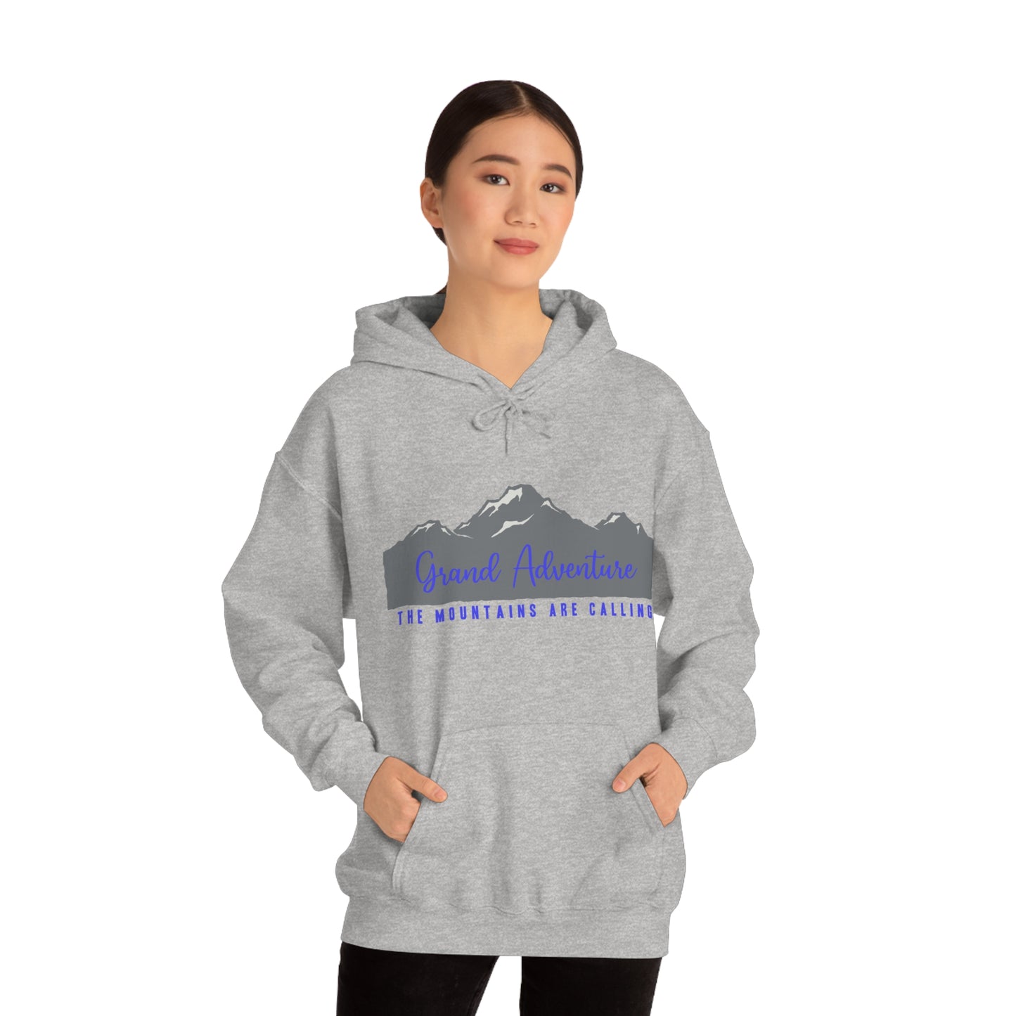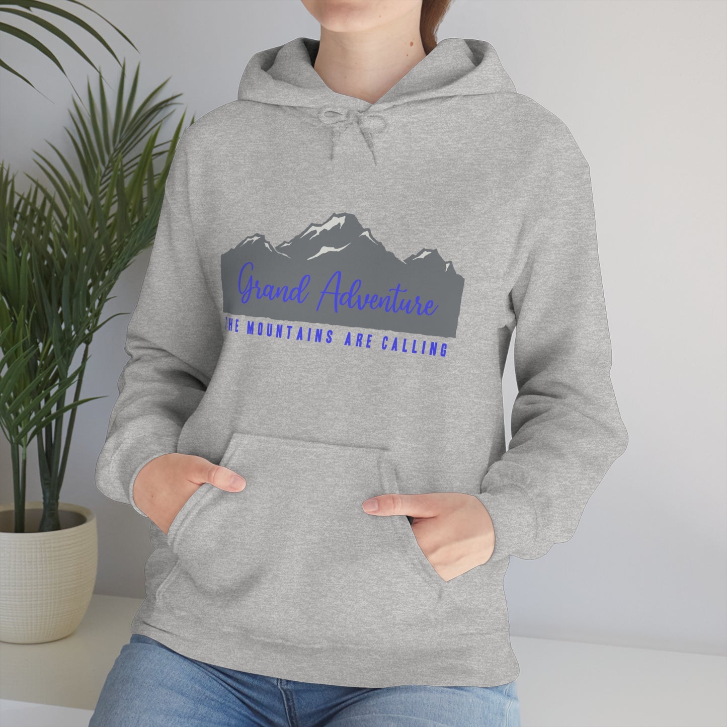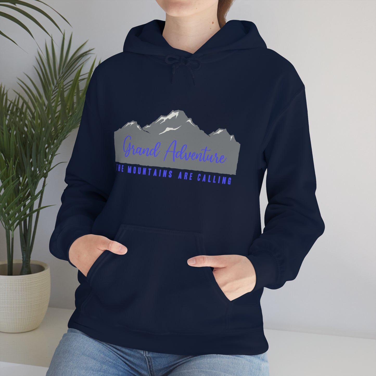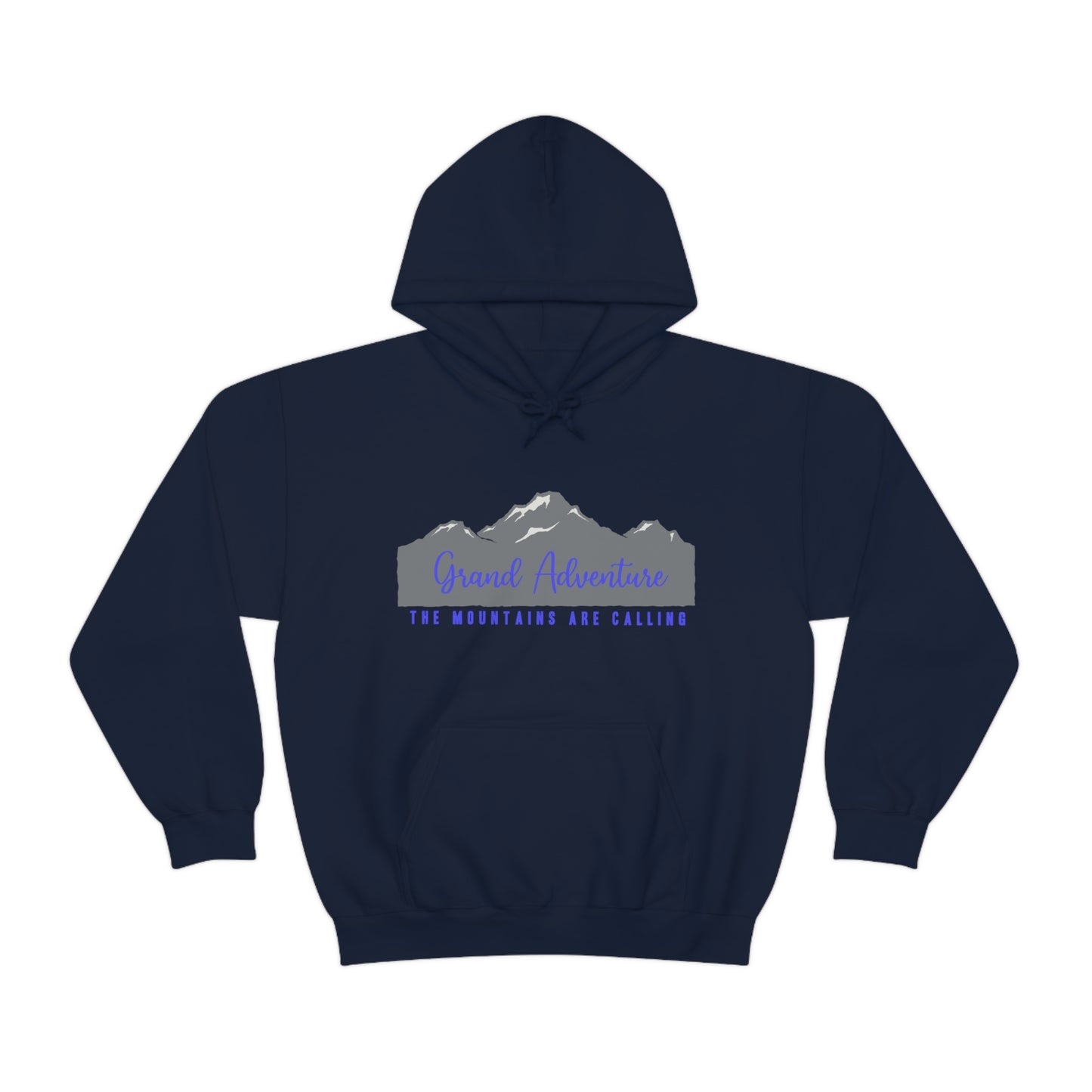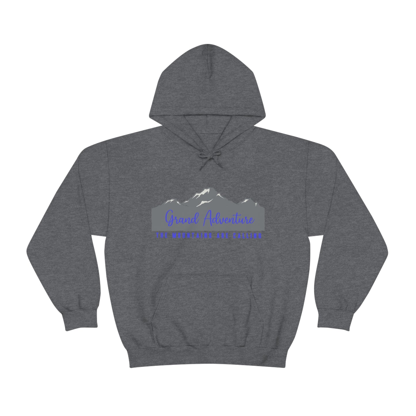 This unisex heavy blend hooded sweatshirt is relaxation itself. Made with a thick blend of cotton and polyester, it feels plush, soft and warm, a perfect choice for any cold day. In the front, the spacious kangaroo pocket adds daily practicality while the hood's drawstring is the same color as the base sweater for extra style points. Chill Stitch – Grand Adventure Mountains - Unisex Hooded Hoodie Sweatshirt – Embrace Your Vibe