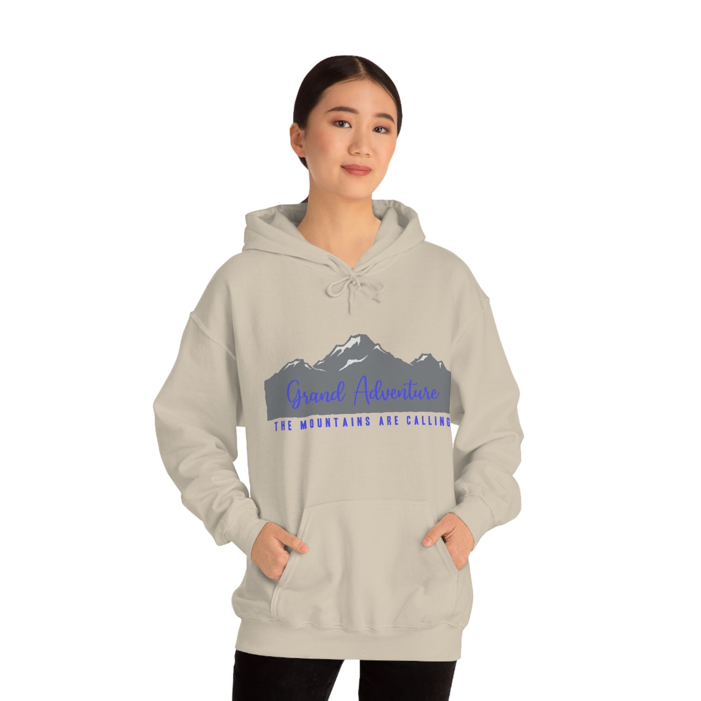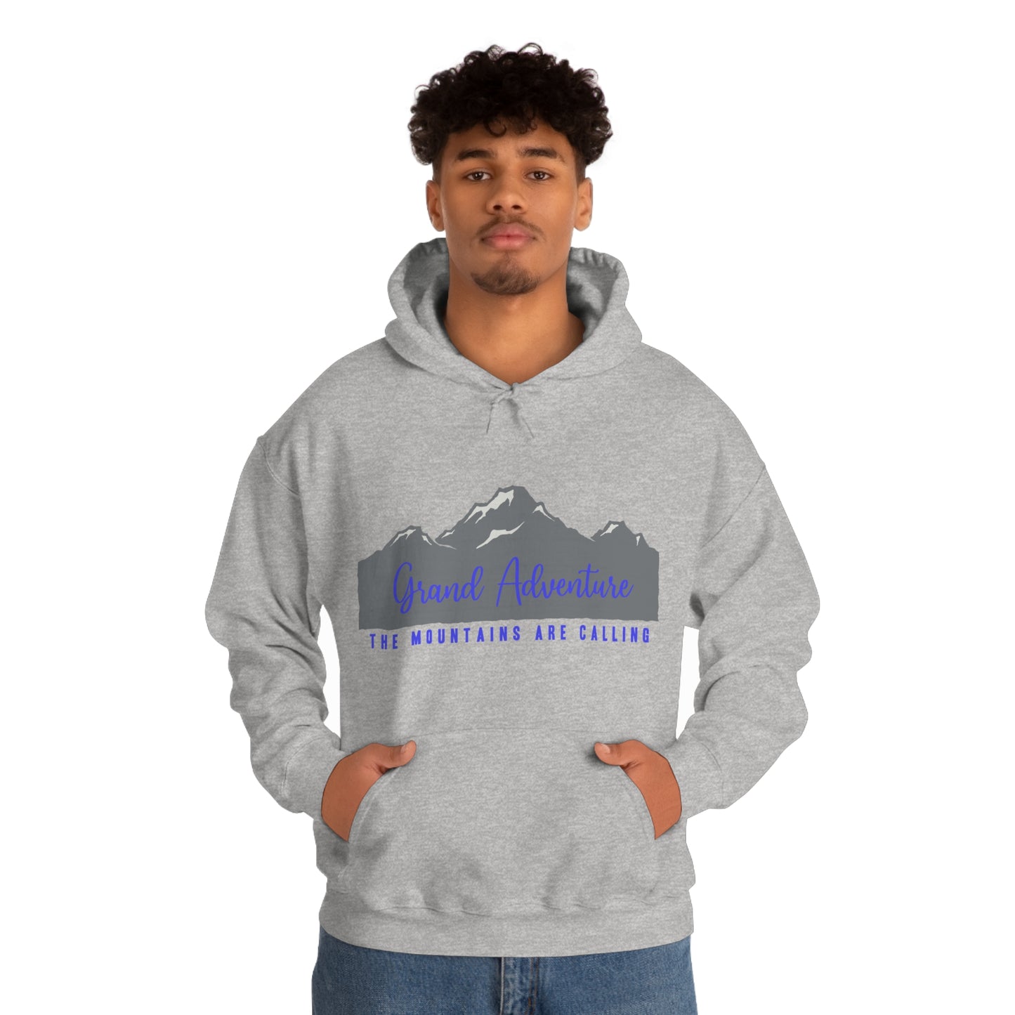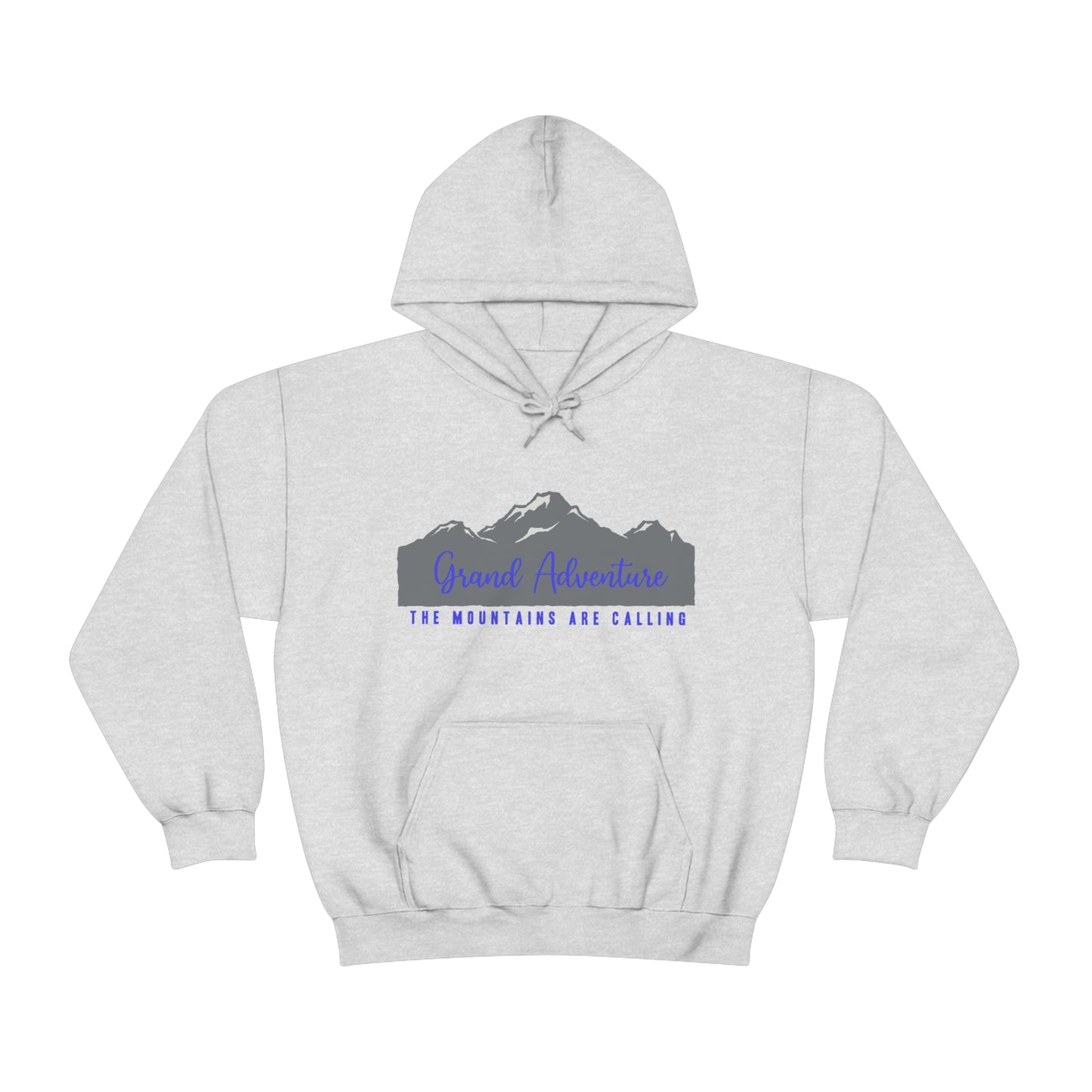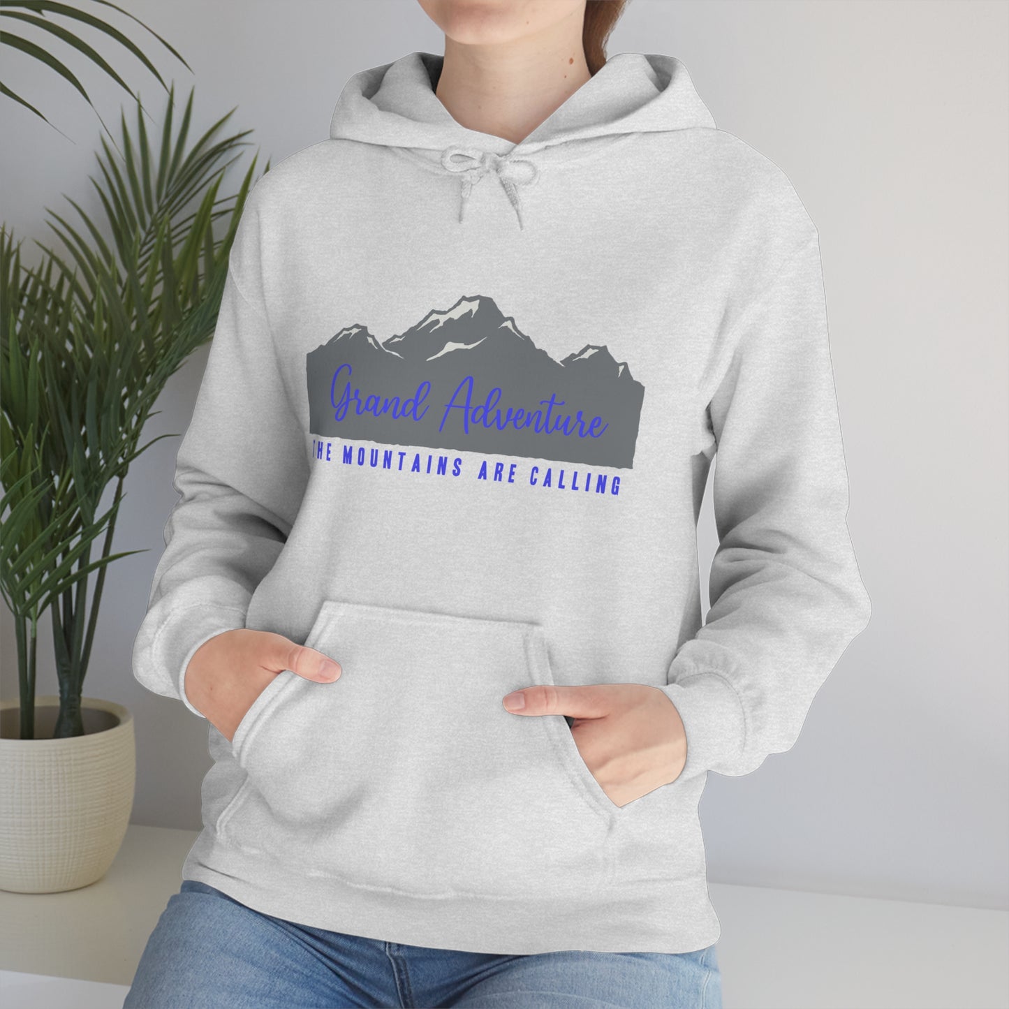 This unisex heavy blend hooded sweatshirt is relaxation itself. Made with a thick blend of cotton and polyester, it feels plush, soft and warm, a perfect choice for any cold day. In the front, the spacious kangaroo pocket adds daily practicality while the hood's drawstring is the same color as the base sweater for extra style points. Chill Stitch – Grand Adventure Mountains - Unisex Hooded Hoodie Sweatshirt – Embrace Your Vibe