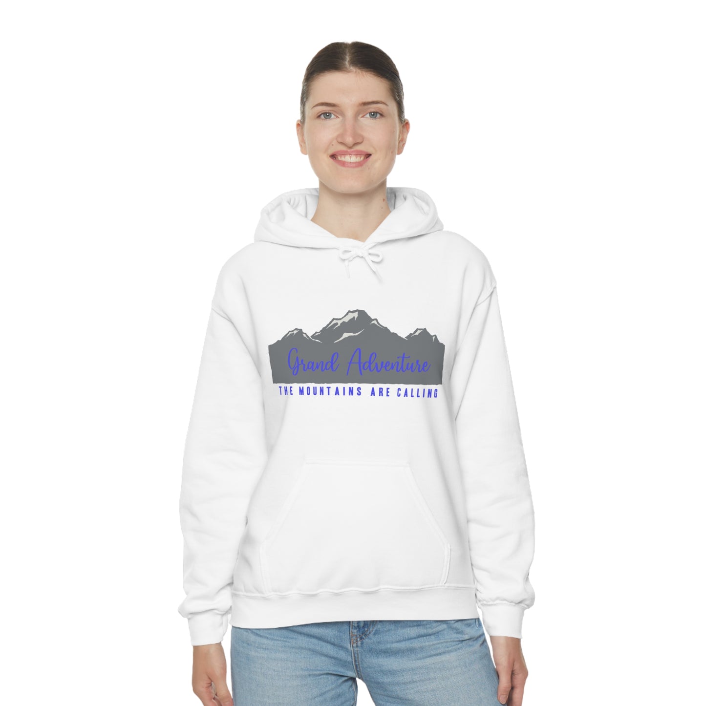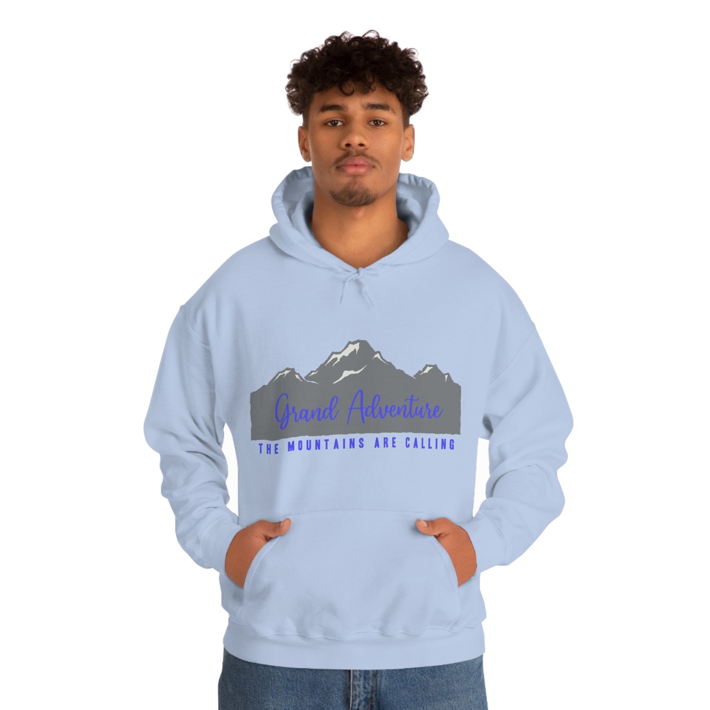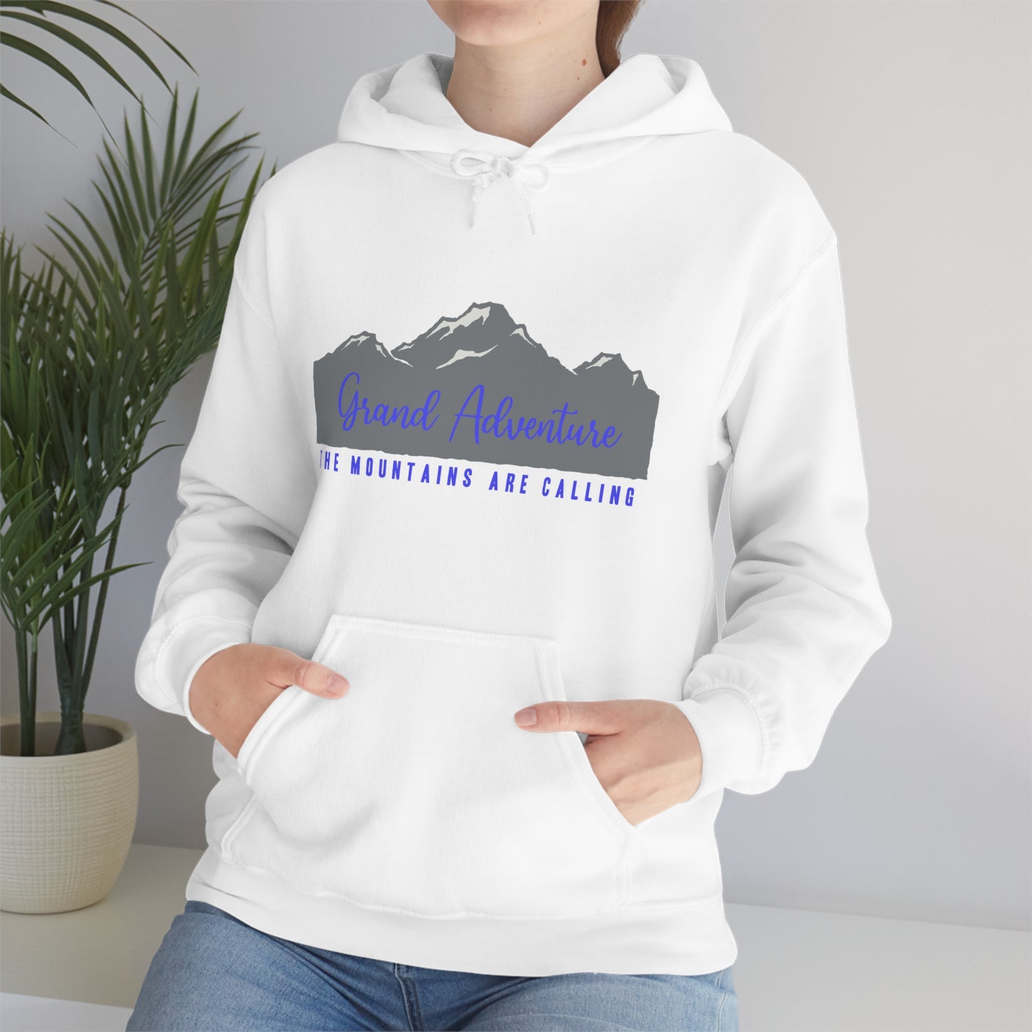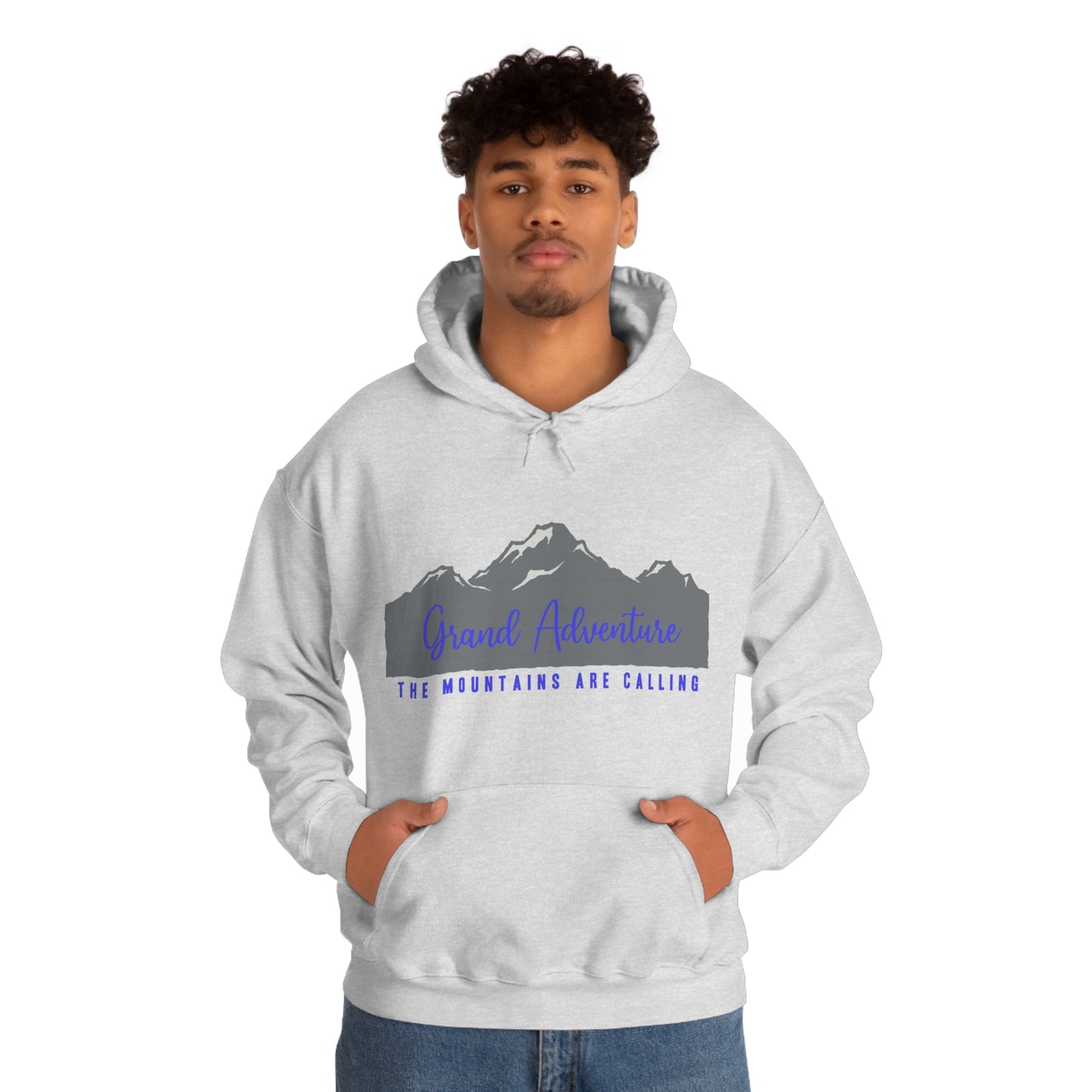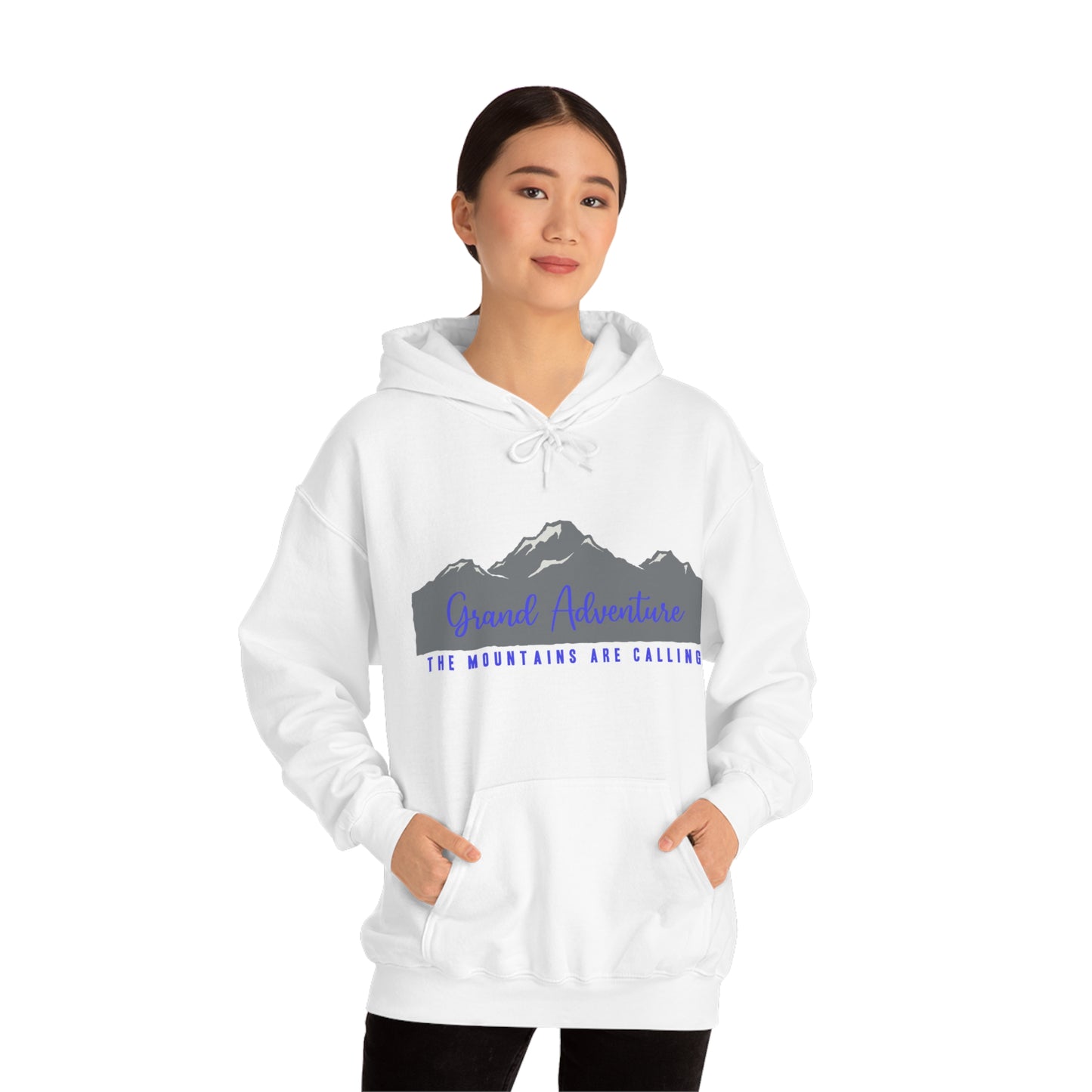 This unisex heavy blend hooded sweatshirt is relaxation itself. Made with a thick blend of cotton and polyester, it feels plush, soft and warm, a perfect choice for any cold day. In the front, the spacious kangaroo pocket adds daily practicality while the hood's drawstring is the same color as the base sweater for extra style points. Chill Stitch – Grand Adventure Mountains - Unisex Hooded Hoodie Sweatshirt – Embrace Your Vibe