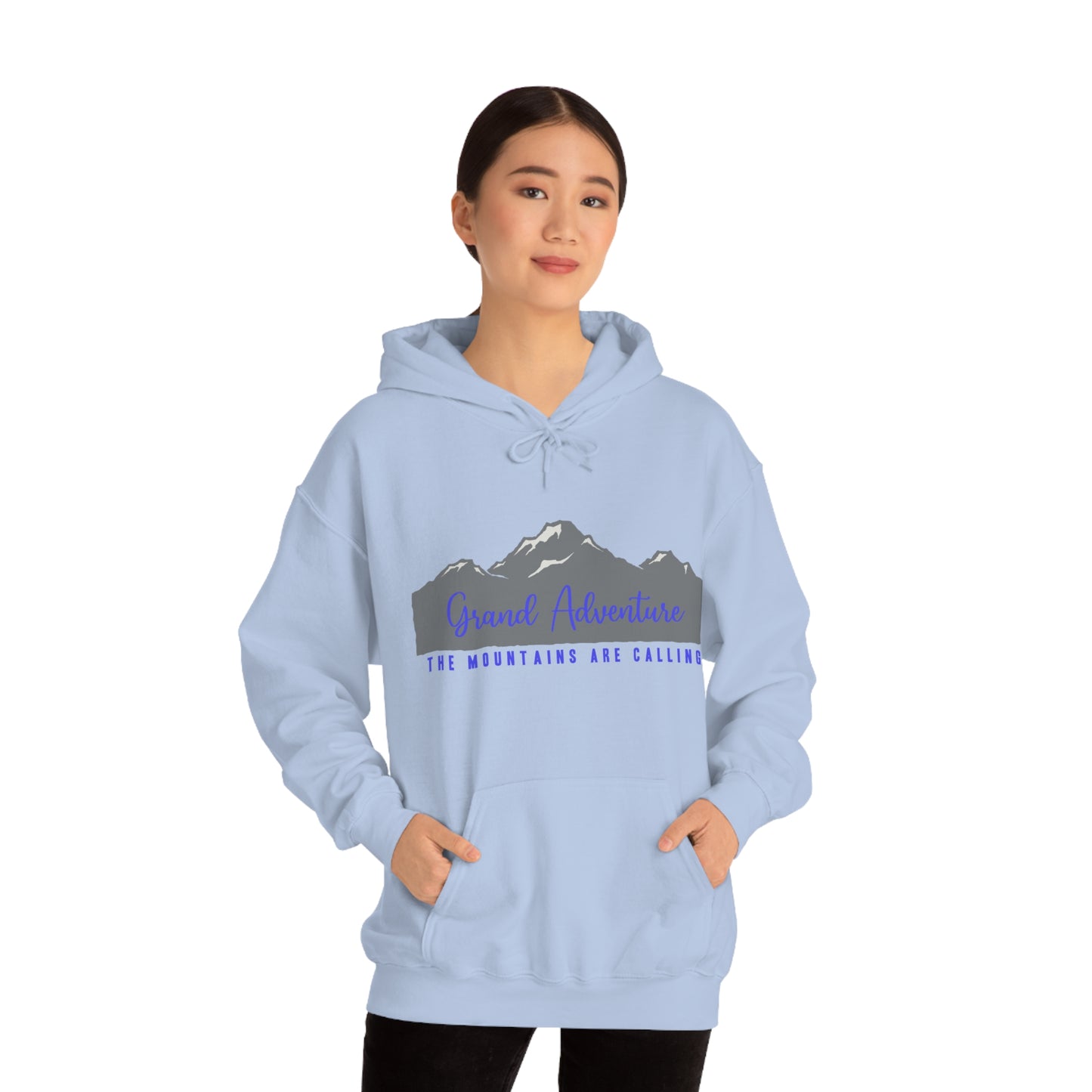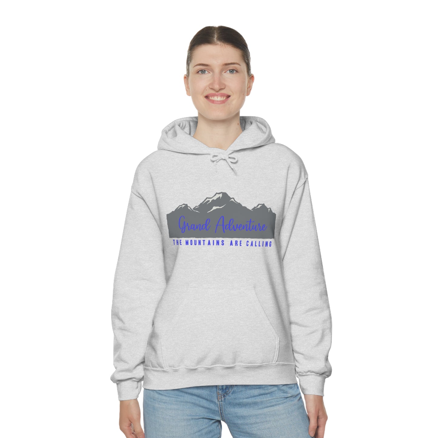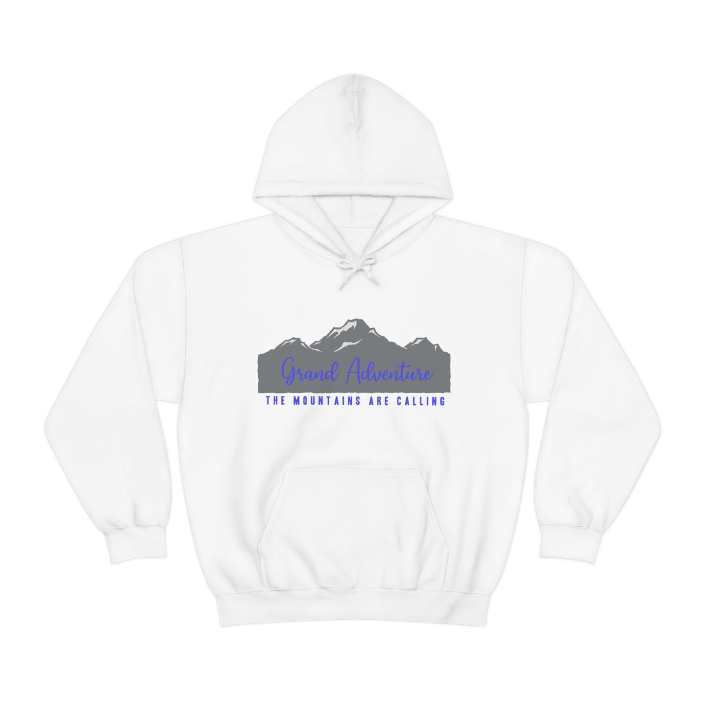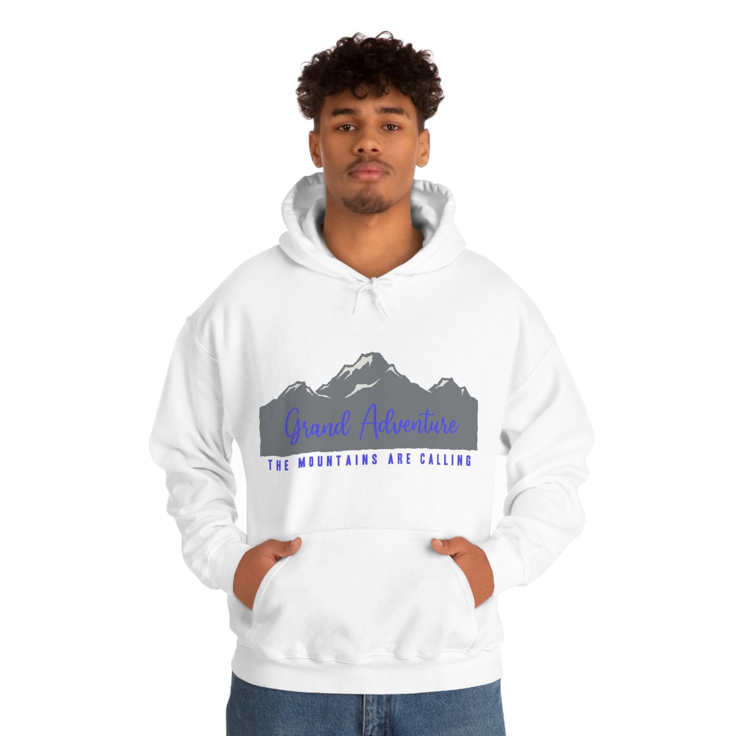 This unisex heavy blend hooded sweatshirt is relaxation itself. Made with a thick blend of cotton and polyester, it feels plush, soft and warm, a perfect choice for any cold day. In the front, the spacious kangaroo pocket adds daily practicality while the hood's drawstring is the same color as the base sweater for extra style points. Chill Stitch – Grand Adventure Mountains - Unisex Hooded Hoodie Sweatshirt – Embrace Your Vibe