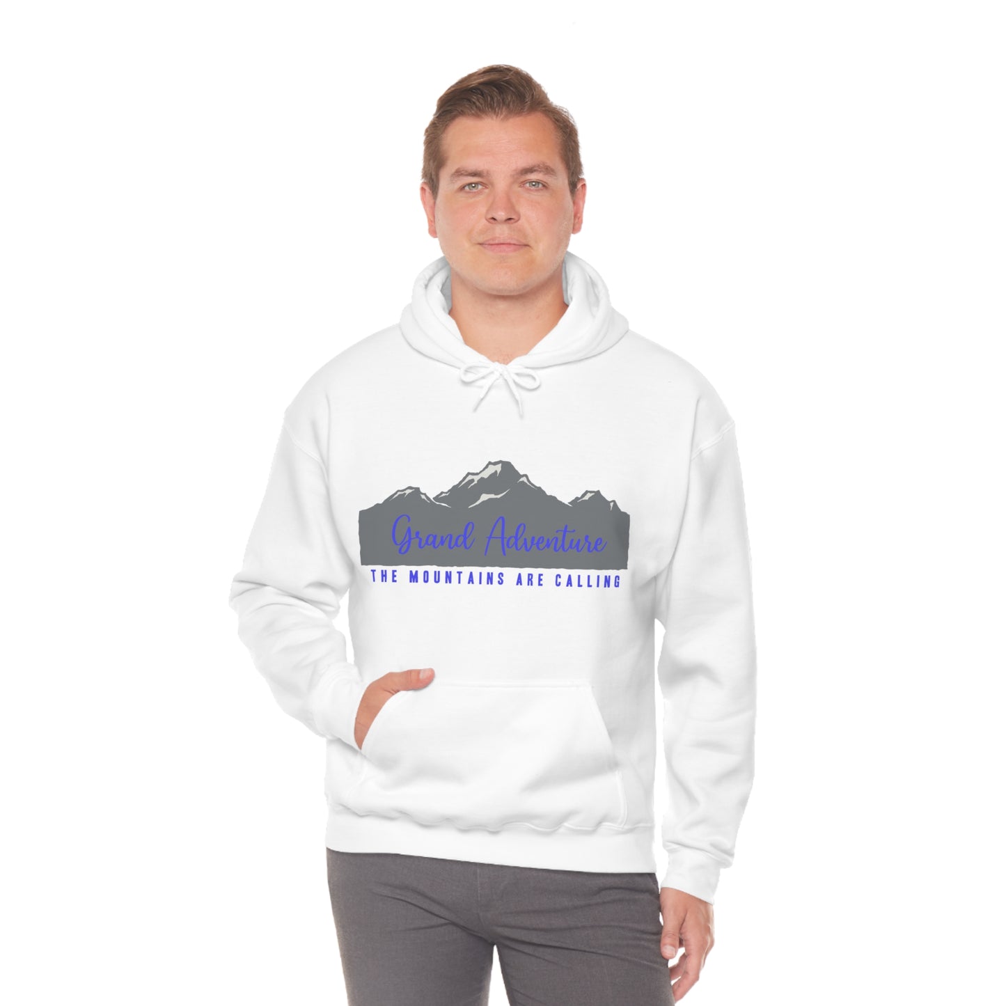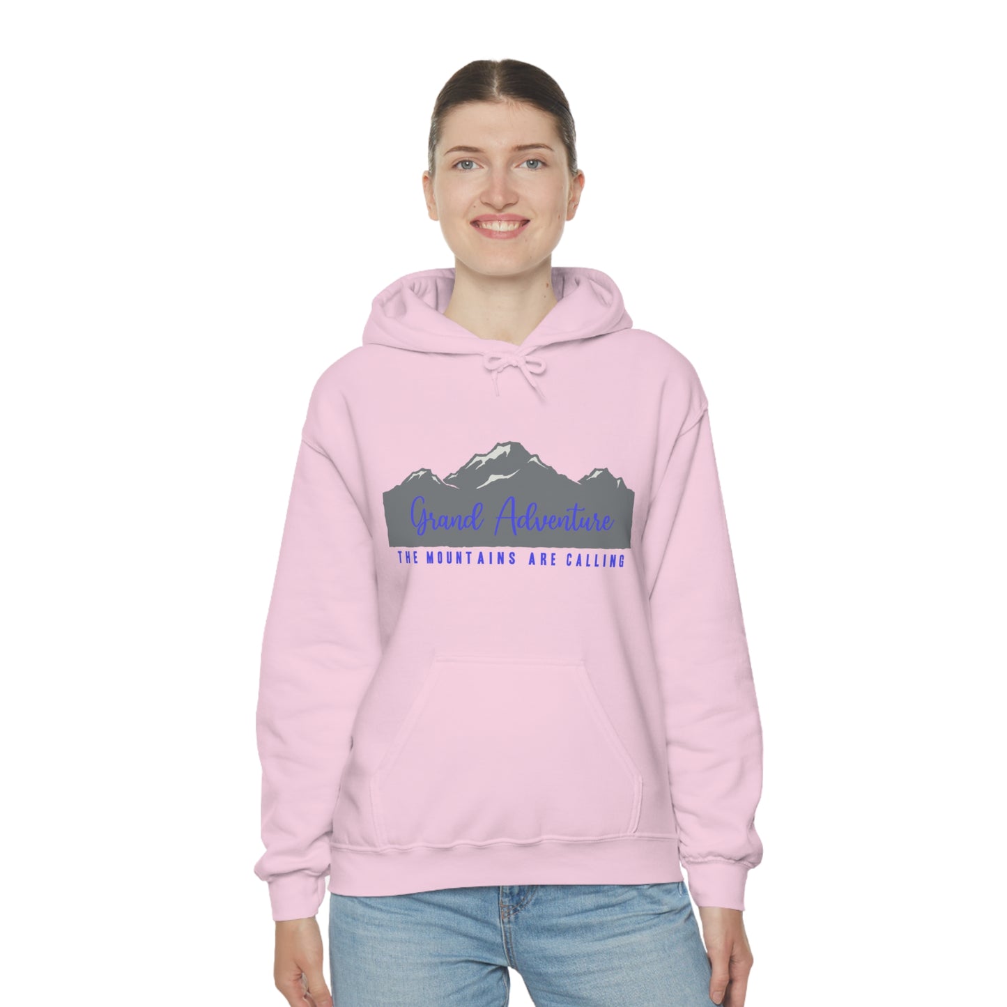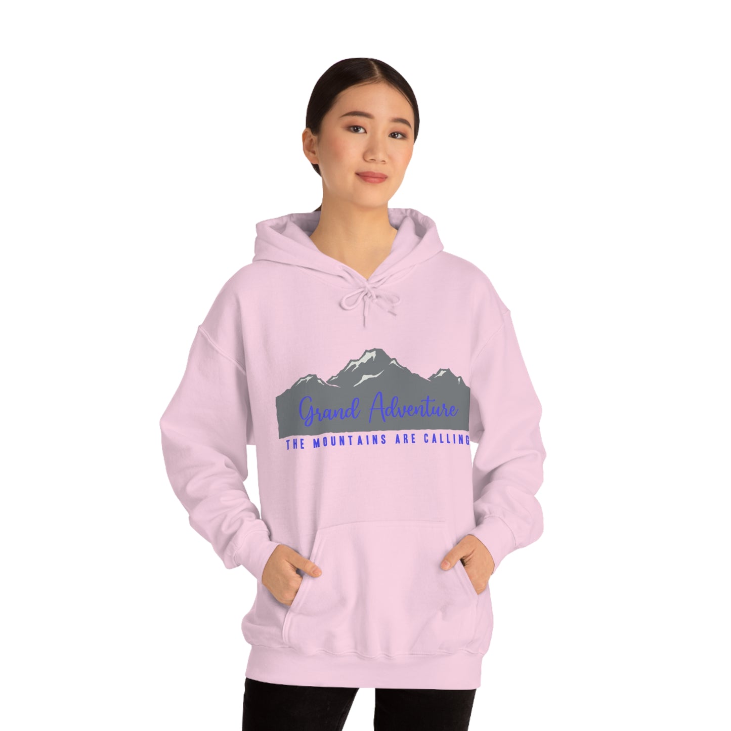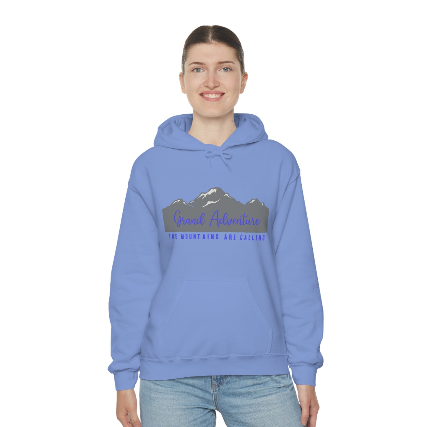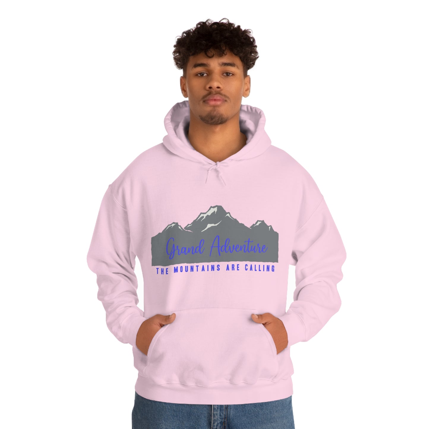 This unisex heavy blend hooded sweatshirt is relaxation itself. Made with a thick blend of cotton and polyester, it feels plush, soft and warm, a perfect choice for any cold day. In the front, the spacious kangaroo pocket adds daily practicality while the hood's drawstring is the same color as the base sweater for extra style points. Chill Stitch – Grand Adventure Mountains - Unisex Hooded Hoodie Sweatshirt – Embrace Your Vibe