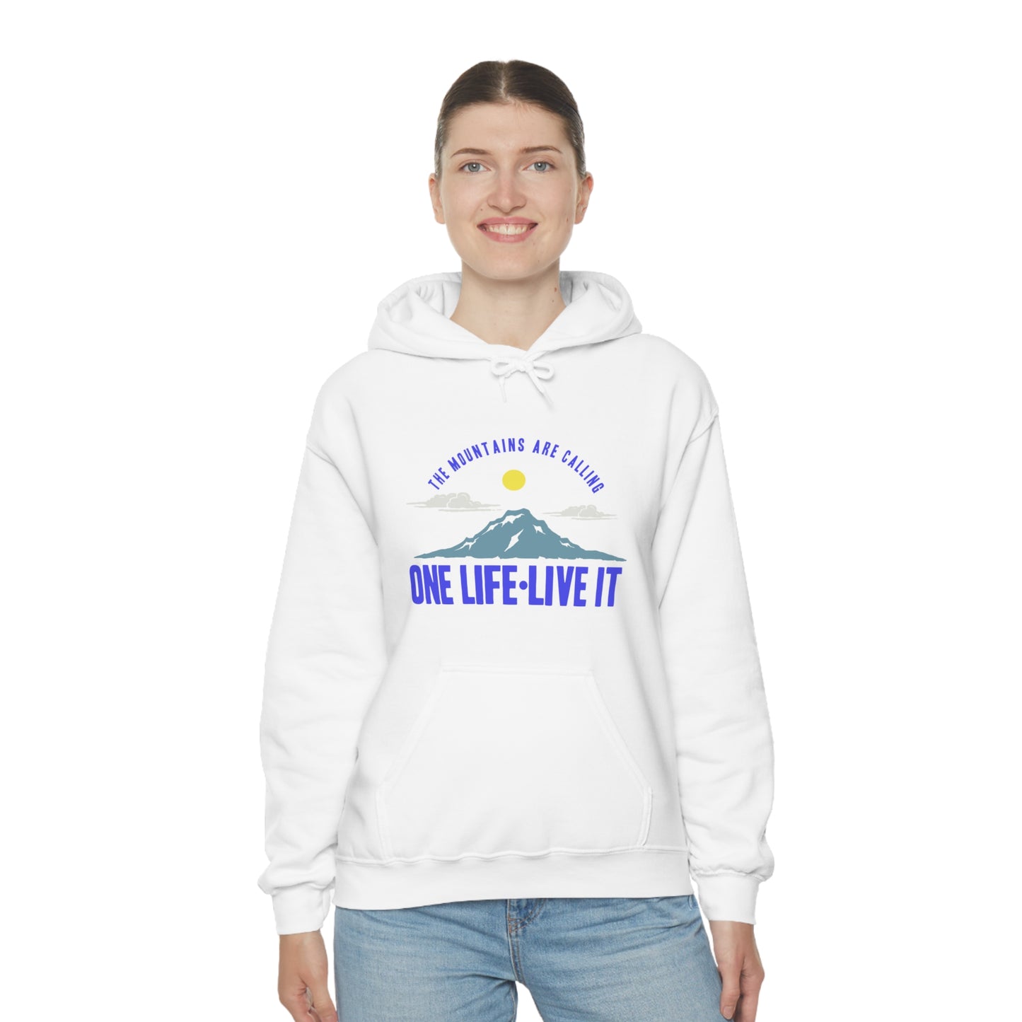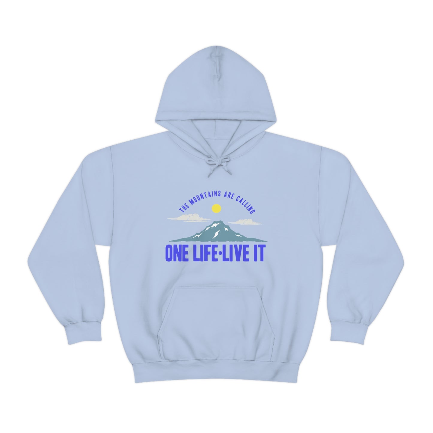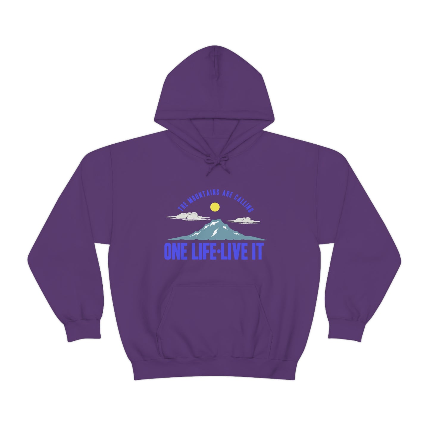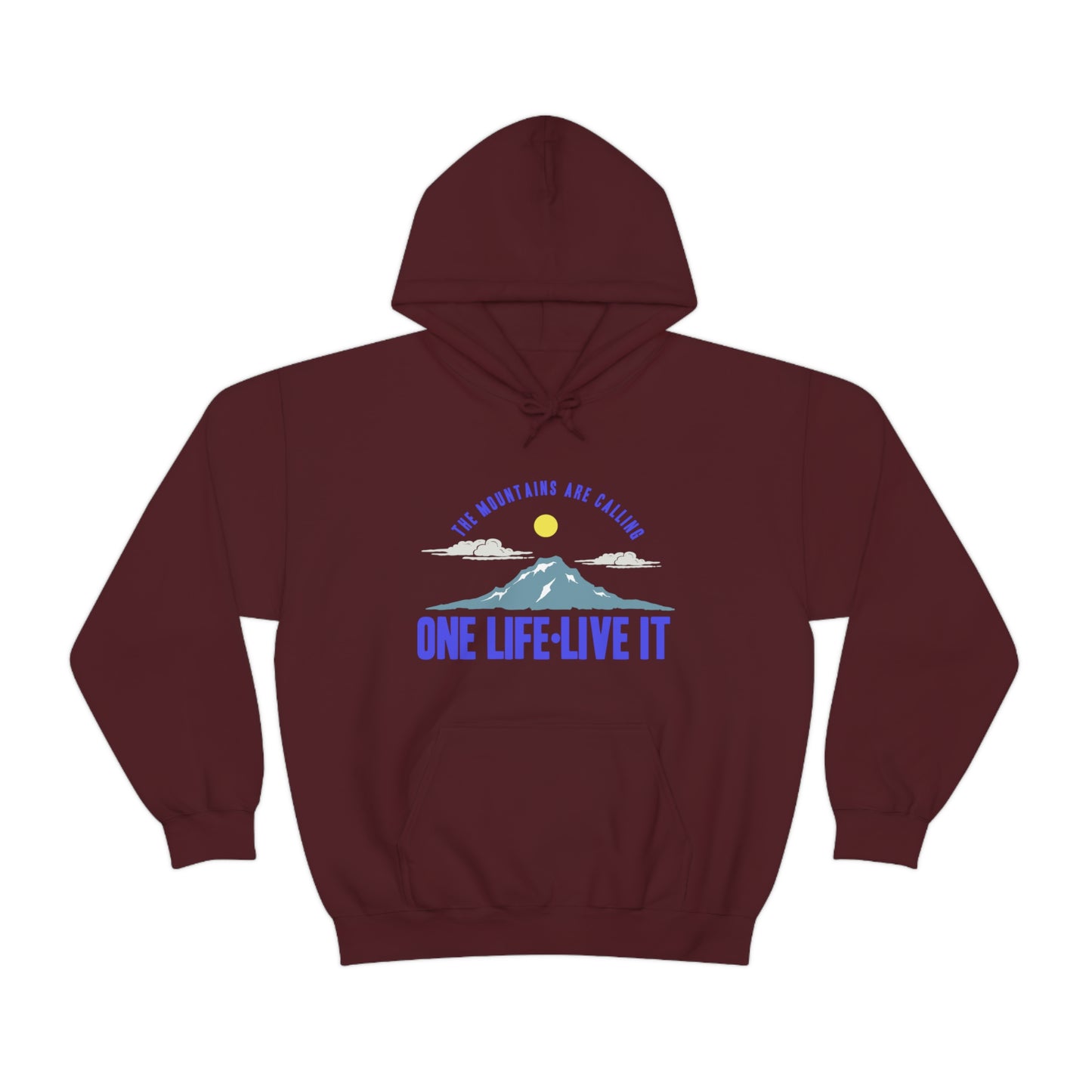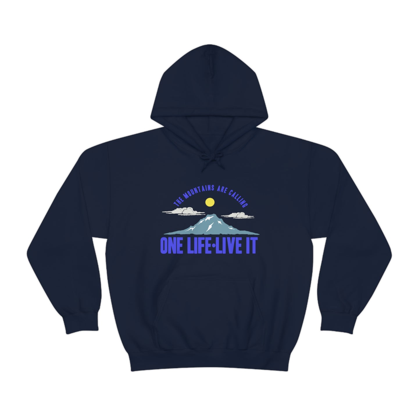 This unisex heavy blend hooded sweatshirt is relaxation itself. Made with a thick blend of cotton and polyester, it feels plush, soft and warm, a perfect choice for any cold day. In the front, the spacious kangaroo pocket adds daily practicality while the hood's drawstring is the same color as the base sweater for extra style points. Chill Stitch – Mountains One Life Live It - Unisex Hooded Hoodie Sweatshirt – Embrace Your Vibe