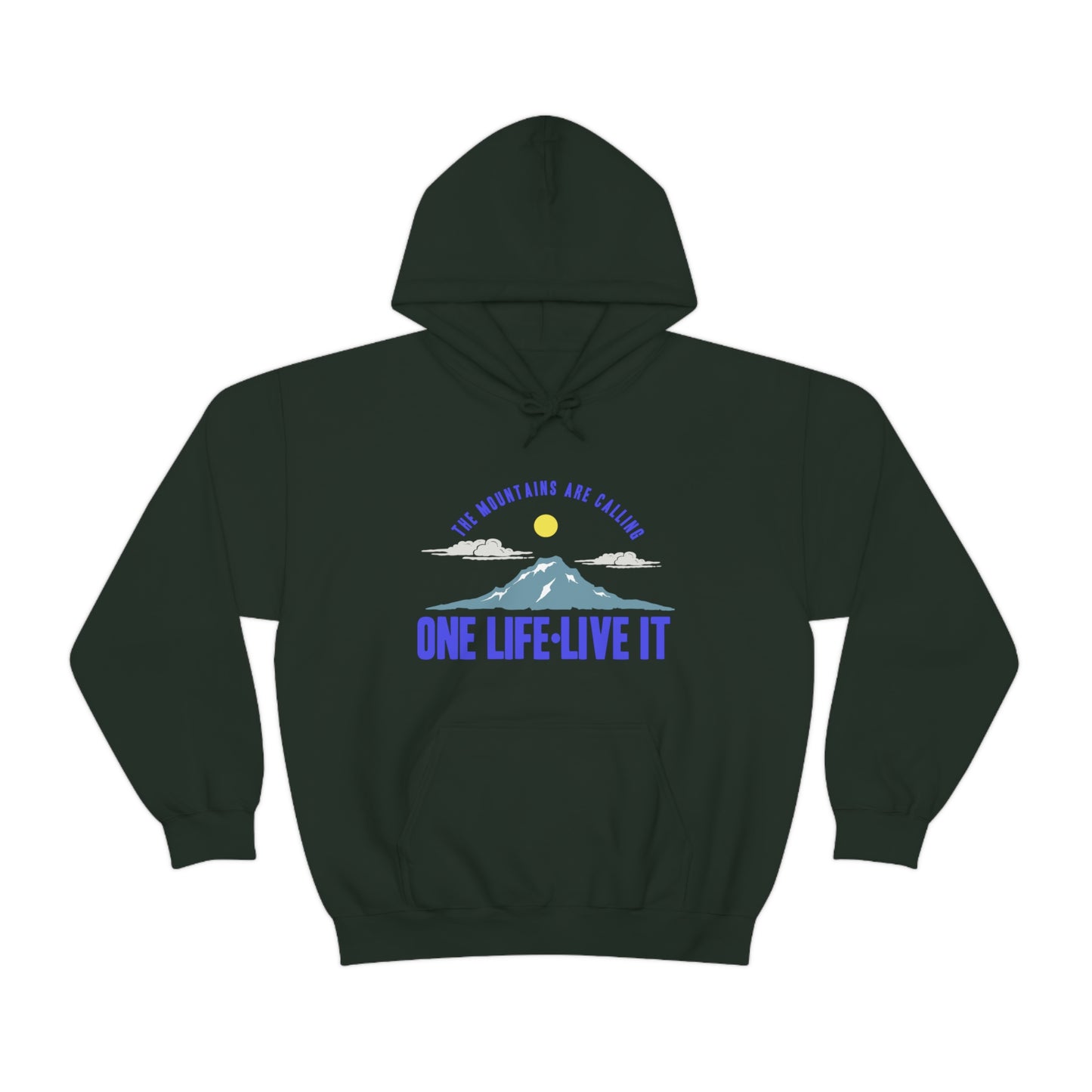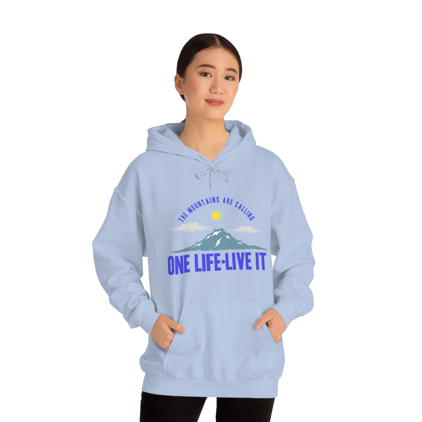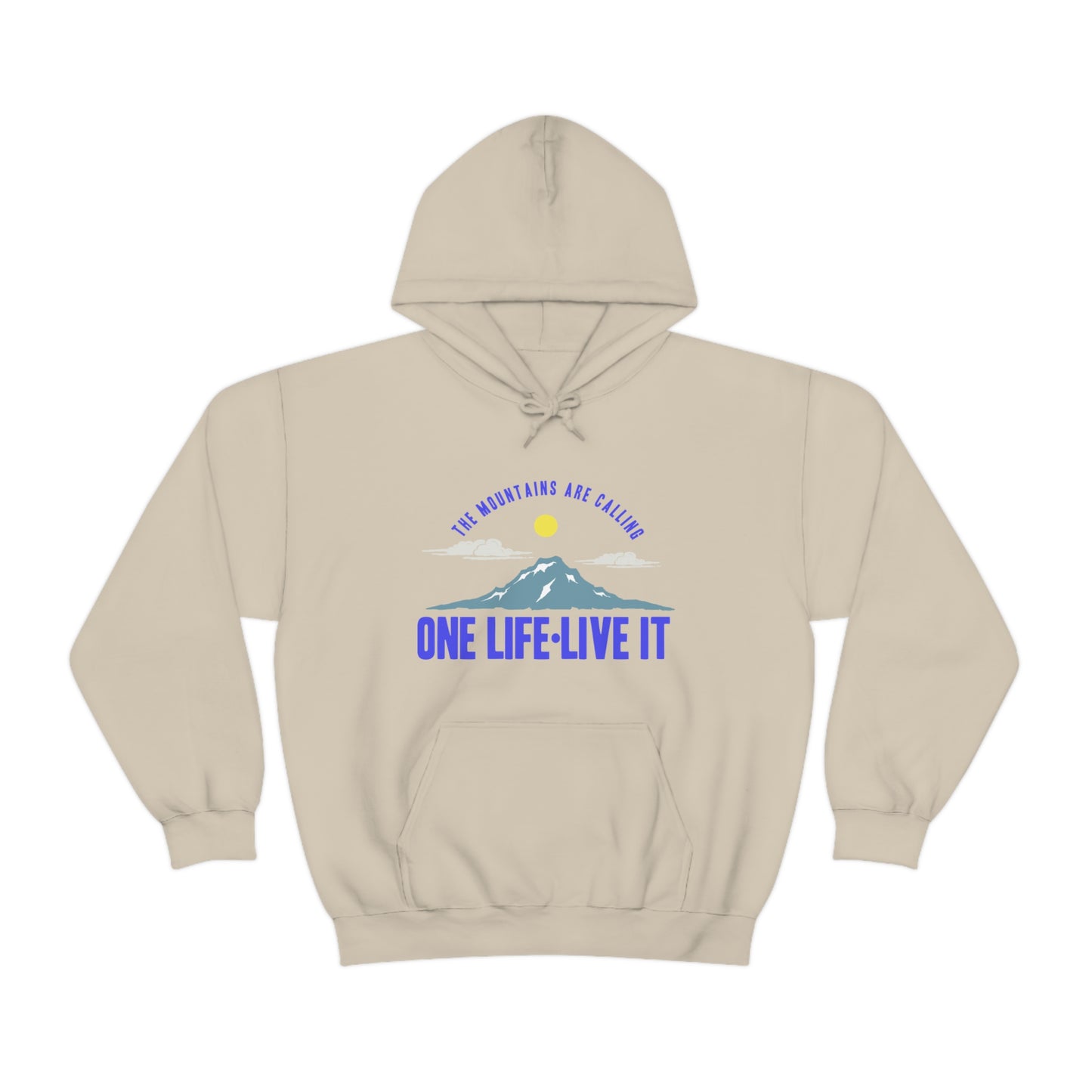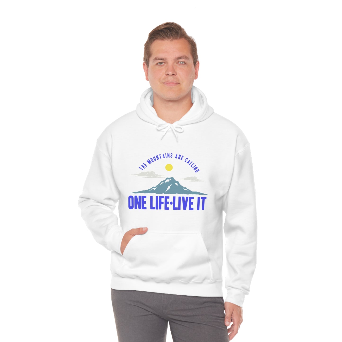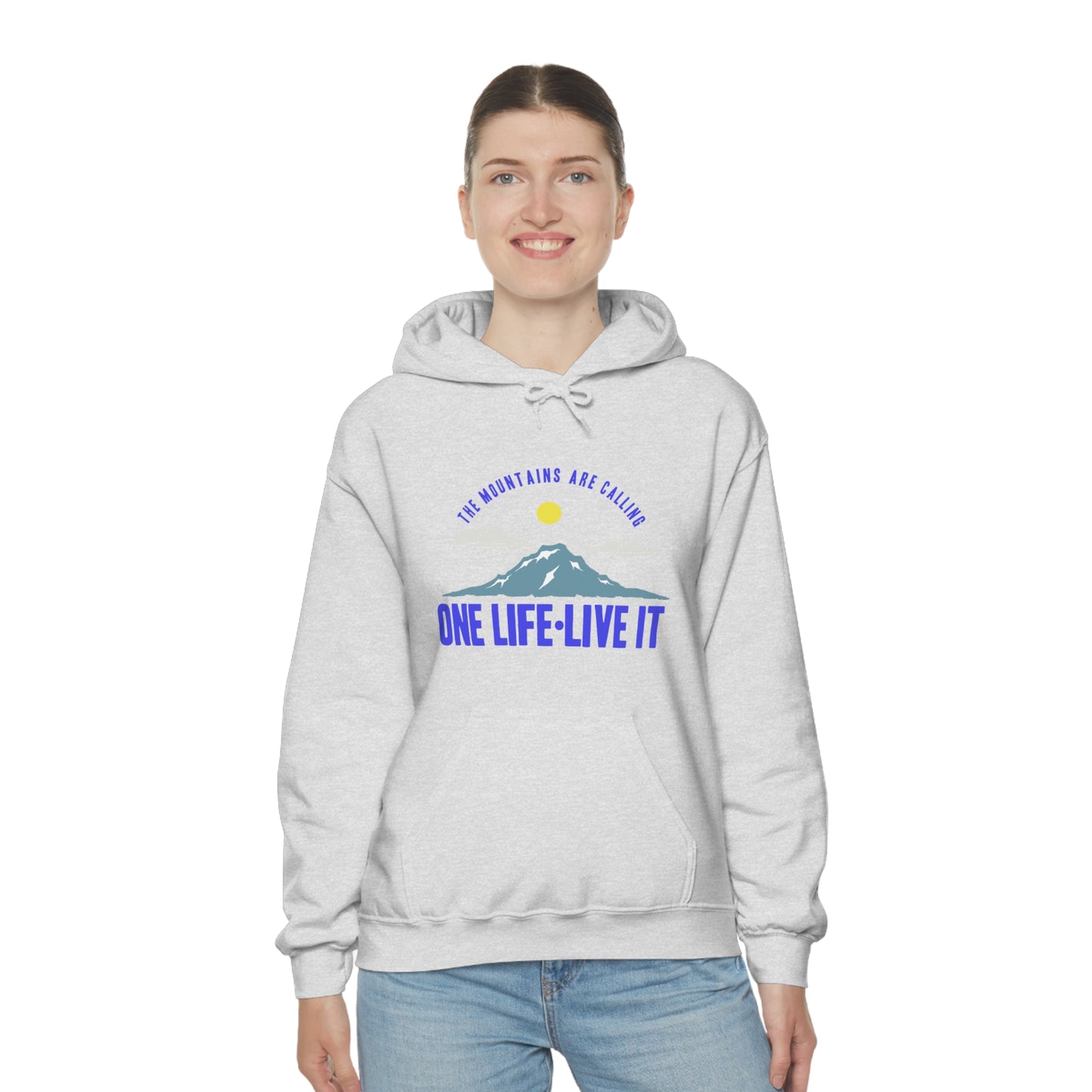 This unisex heavy blend hooded sweatshirt is relaxation itself. Made with a thick blend of cotton and polyester, it feels plush, soft and warm, a perfect choice for any cold day. In the front, the spacious kangaroo pocket adds daily practicality while the hood's drawstring is the same color as the base sweater for extra style points. Chill Stitch – Mountains One Life Live It - Unisex Hooded Hoodie Sweatshirt – Embrace Your Vibe