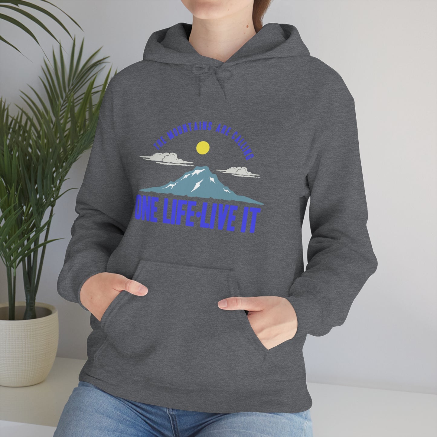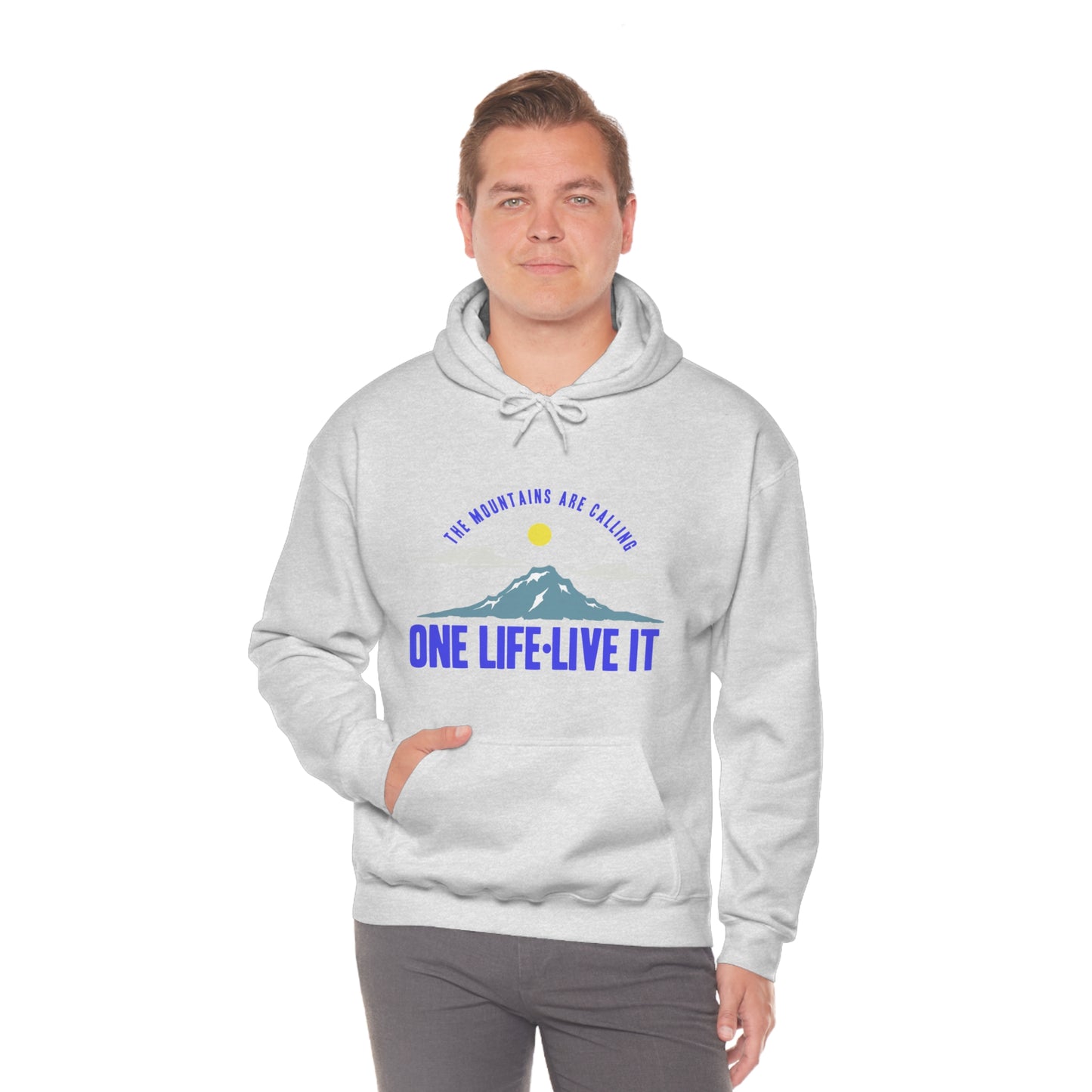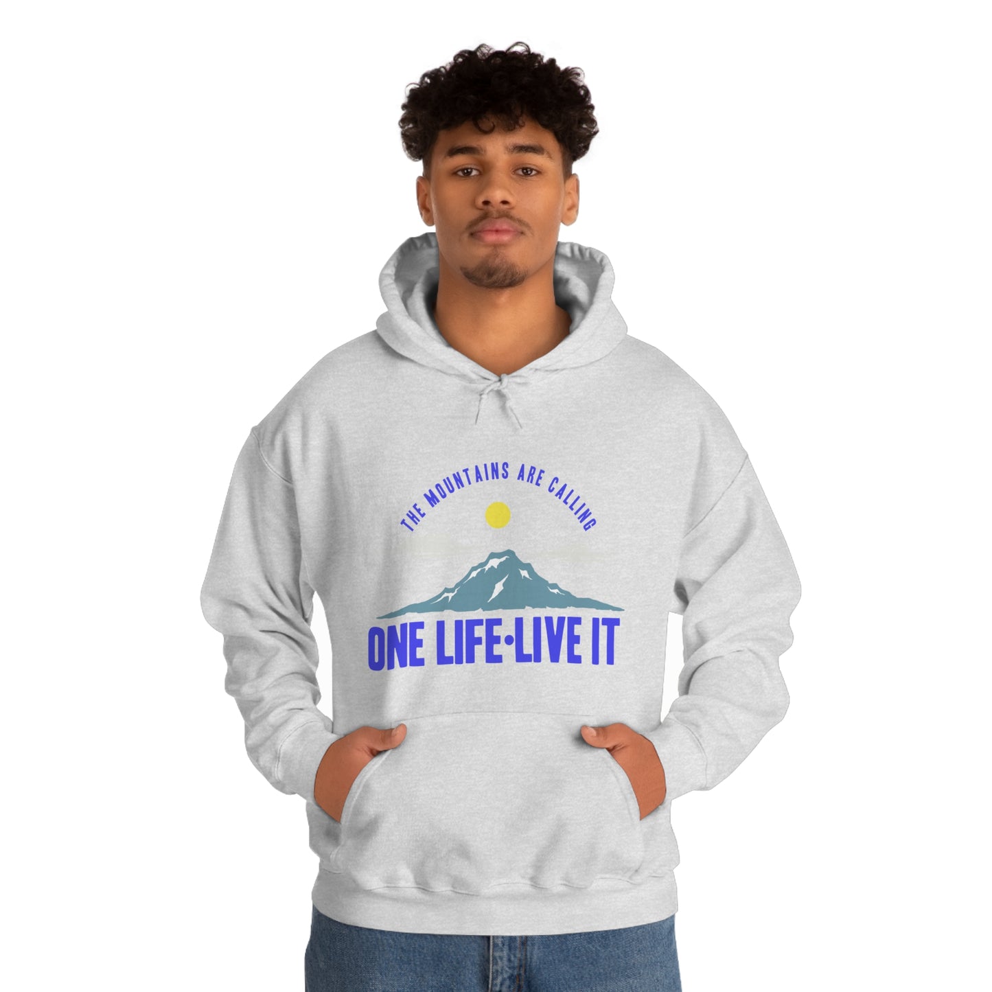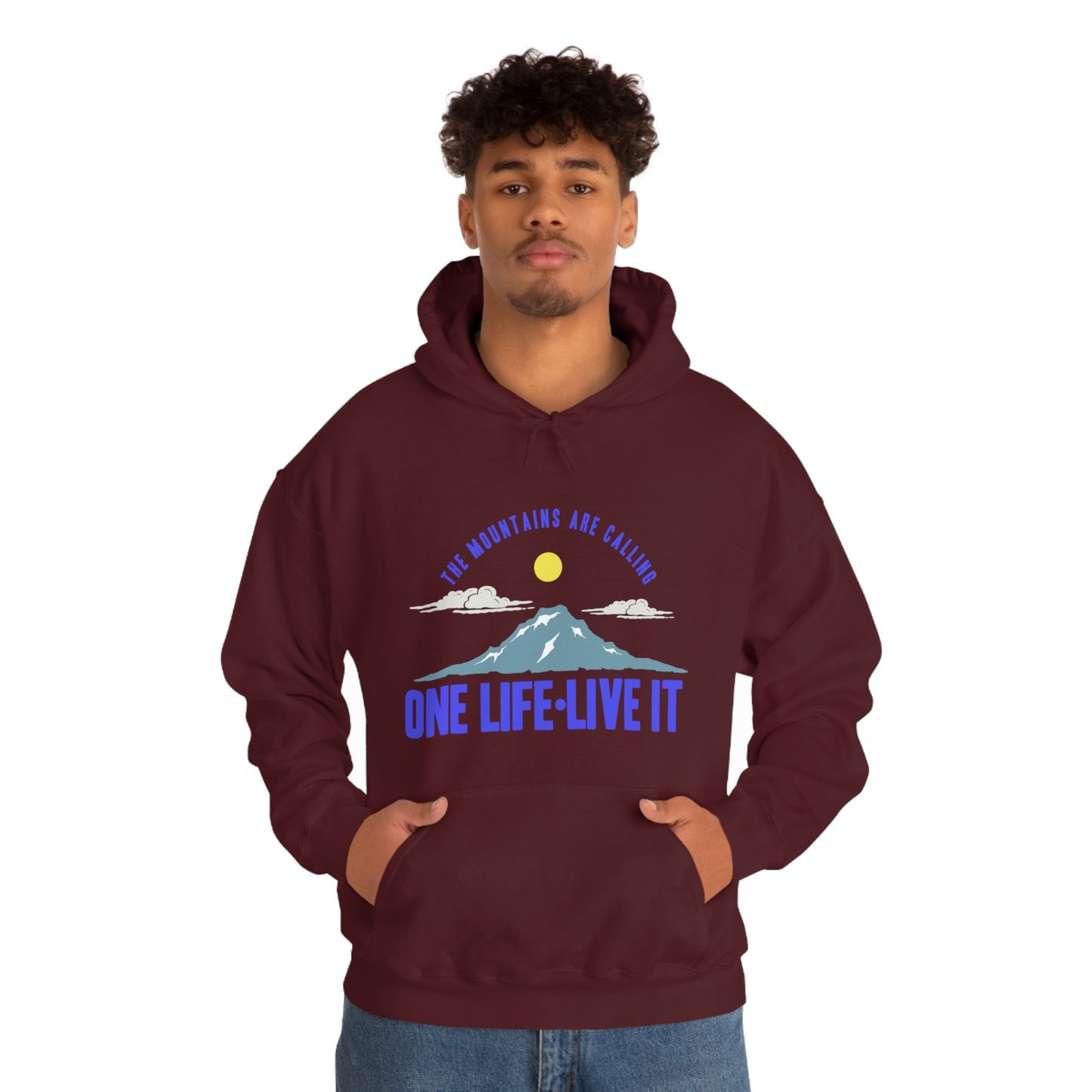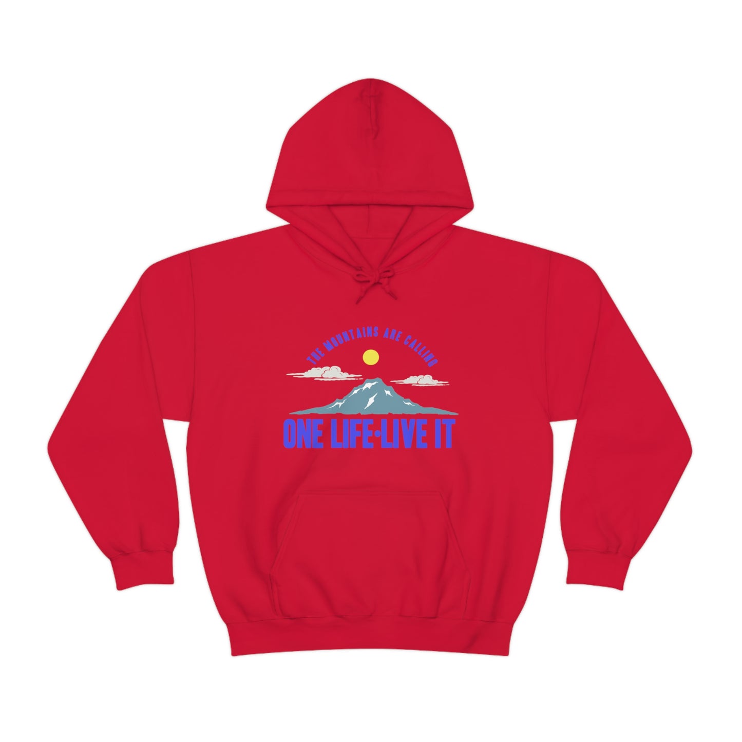 This unisex heavy blend hooded sweatshirt is relaxation itself. Made with a thick blend of cotton and polyester, it feels plush, soft and warm, a perfect choice for any cold day. In the front, the spacious kangaroo pocket adds daily practicality while the hood's drawstring is the same color as the base sweater for extra style points. Chill Stitch – Mountains One Life Live It - Unisex Hooded Hoodie Sweatshirt – Embrace Your Vibe