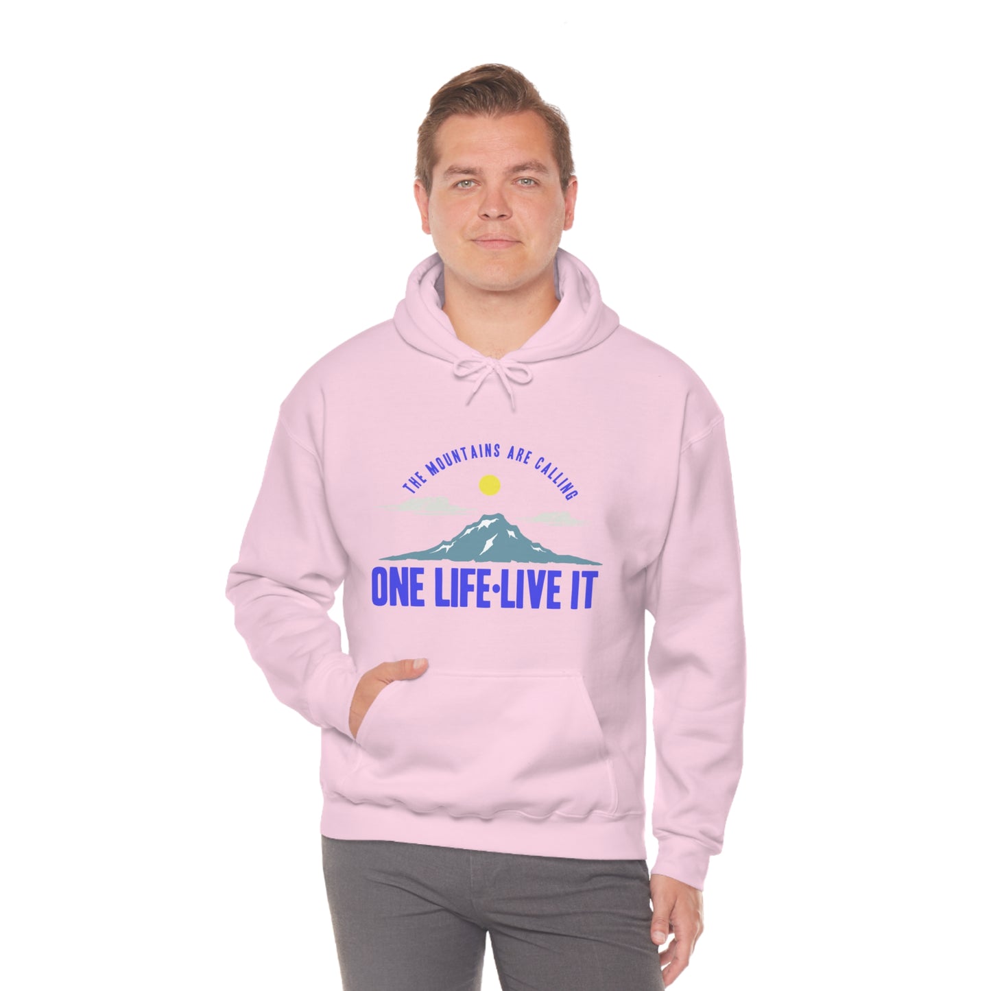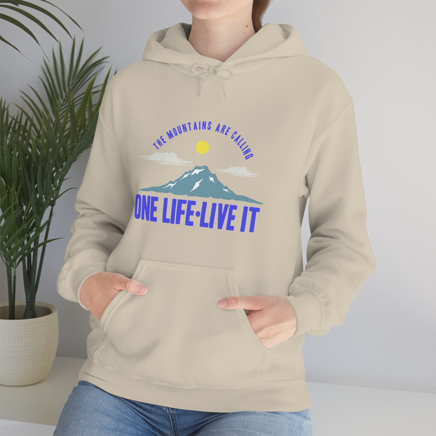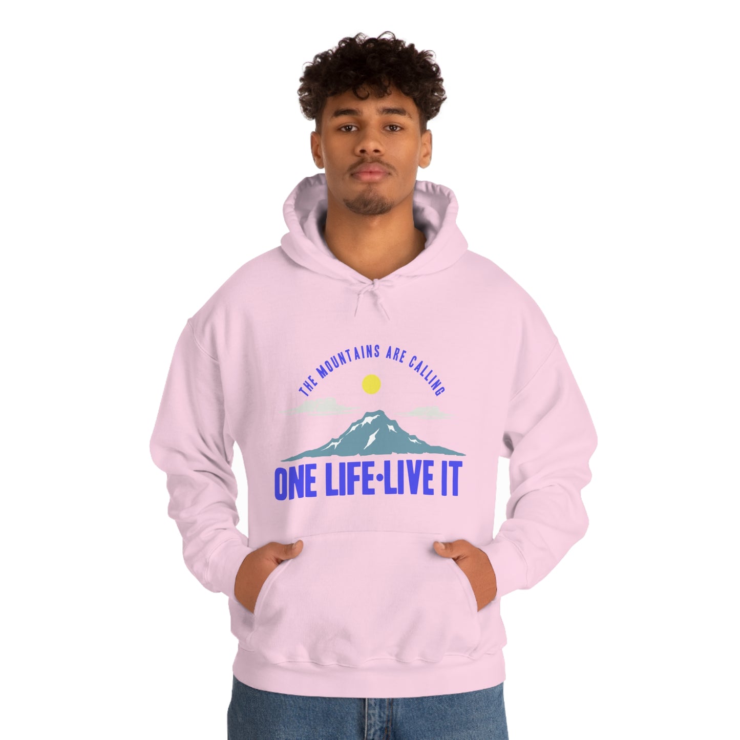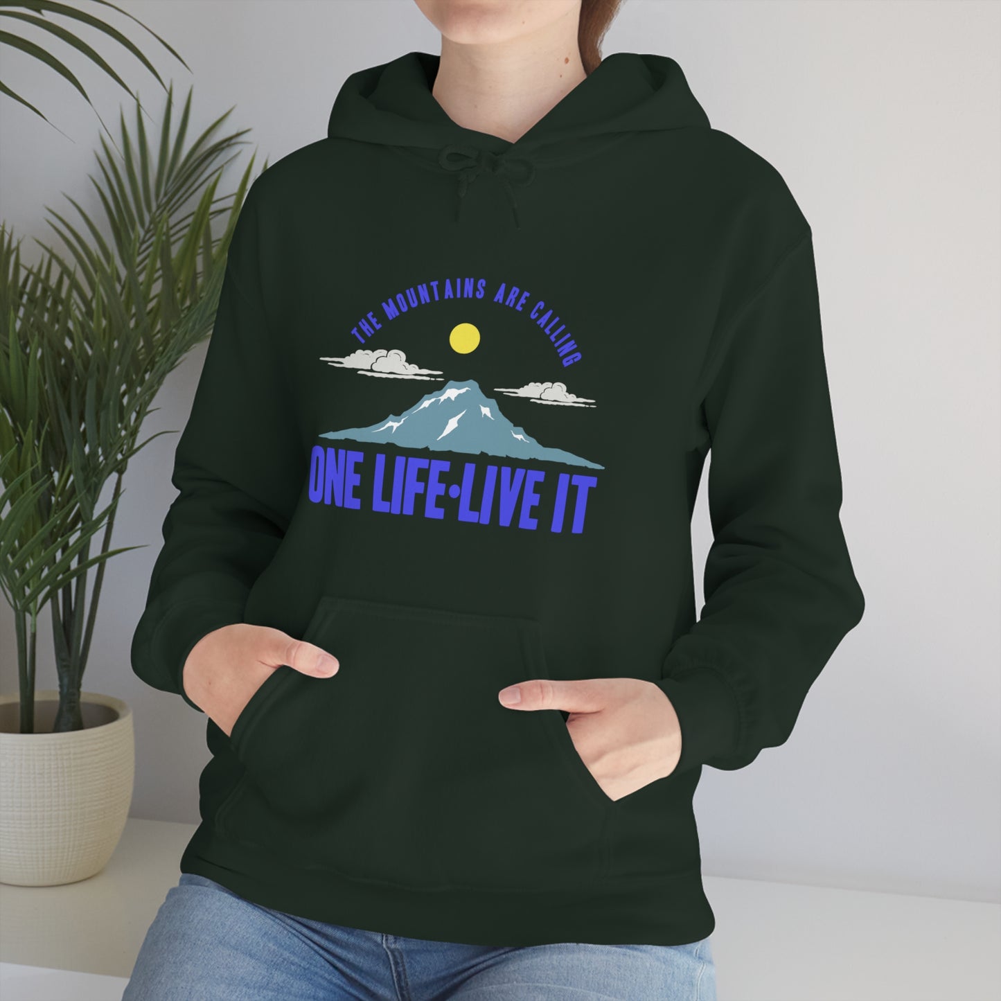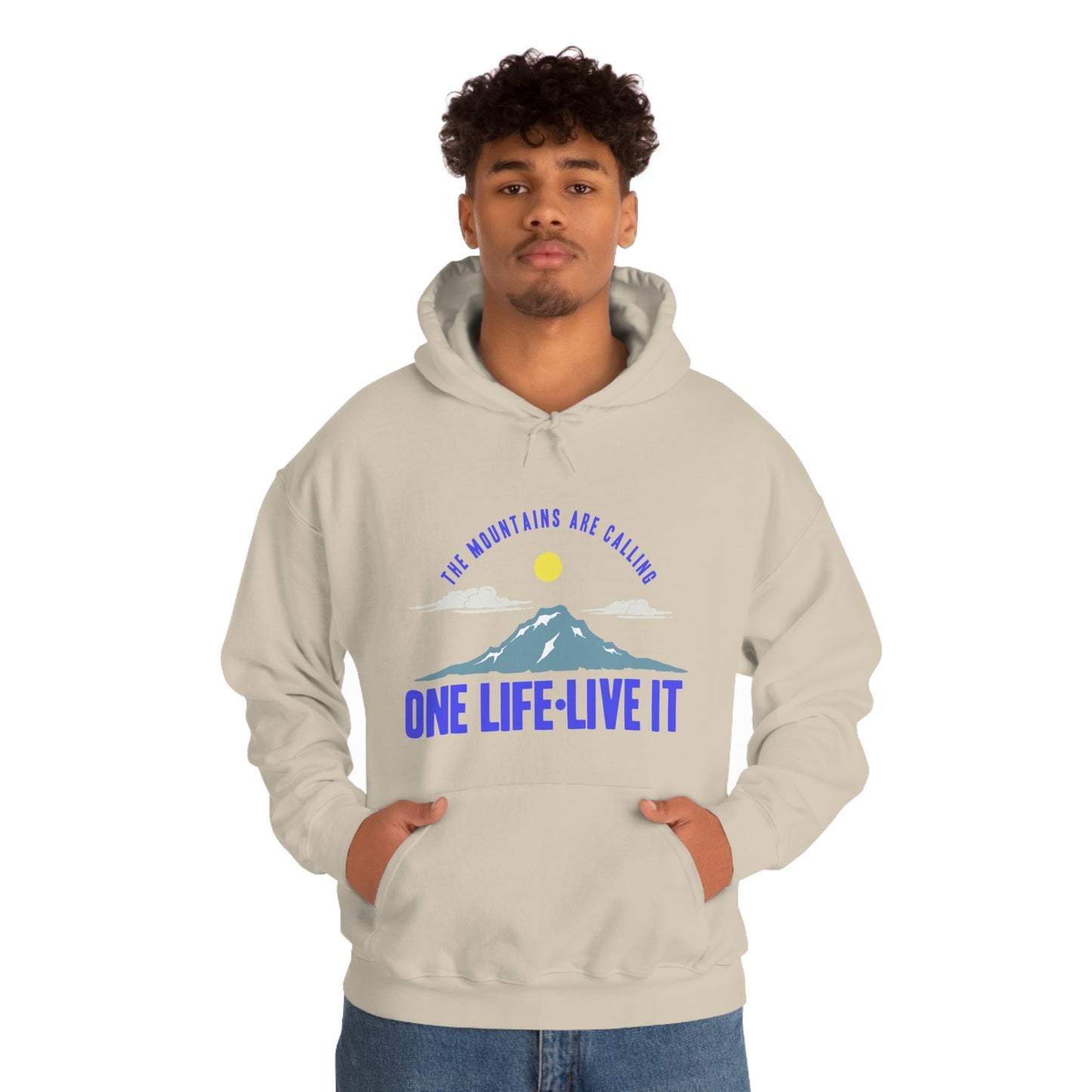 This unisex heavy blend hooded sweatshirt is relaxation itself. Made with a thick blend of cotton and polyester, it feels plush, soft and warm, a perfect choice for any cold day. In the front, the spacious kangaroo pocket adds daily practicality while the hood's drawstring is the same color as the base sweater for extra style points. Chill Stitch – Mountains One Life Live It - Unisex Hooded Hoodie Sweatshirt – Embrace Your Vibe