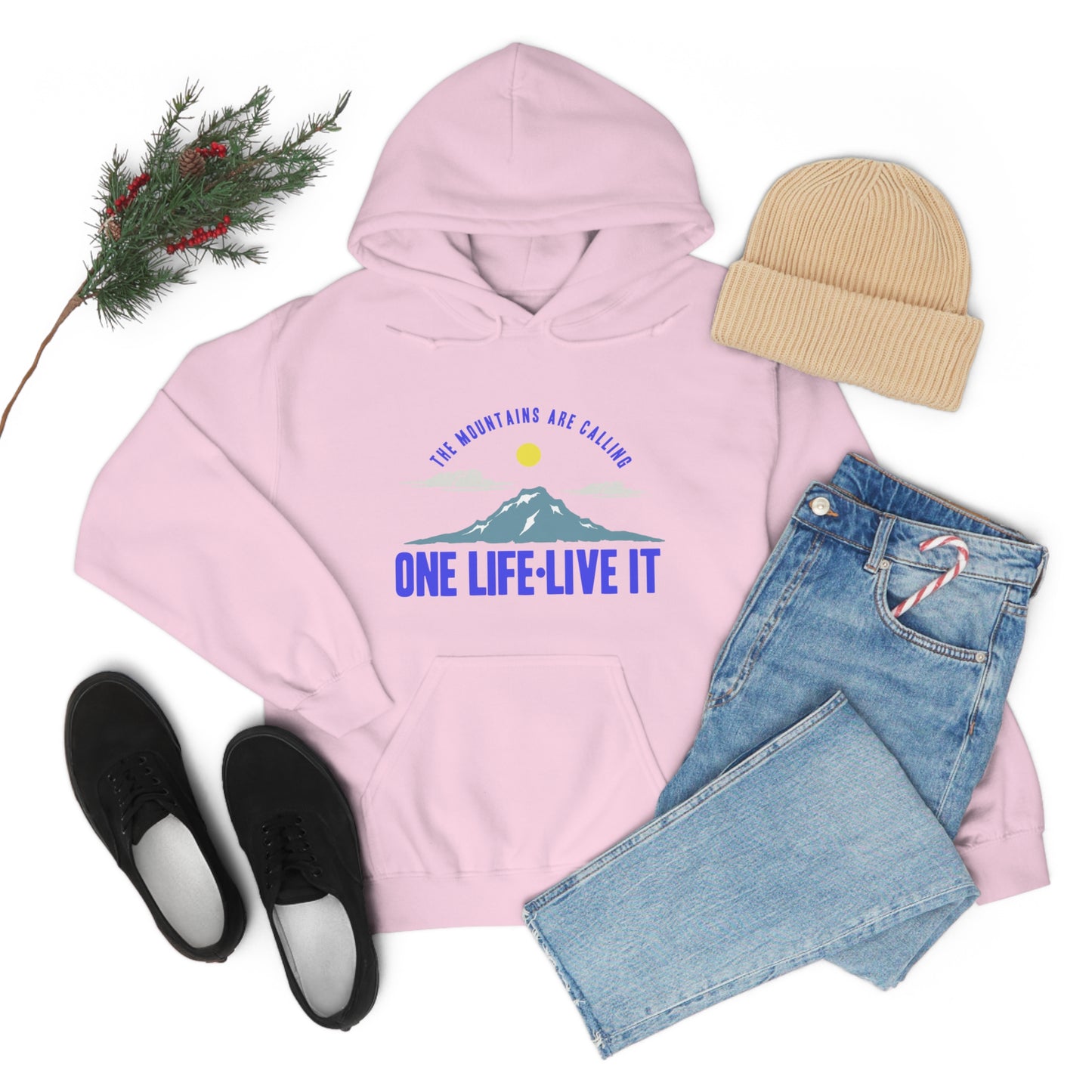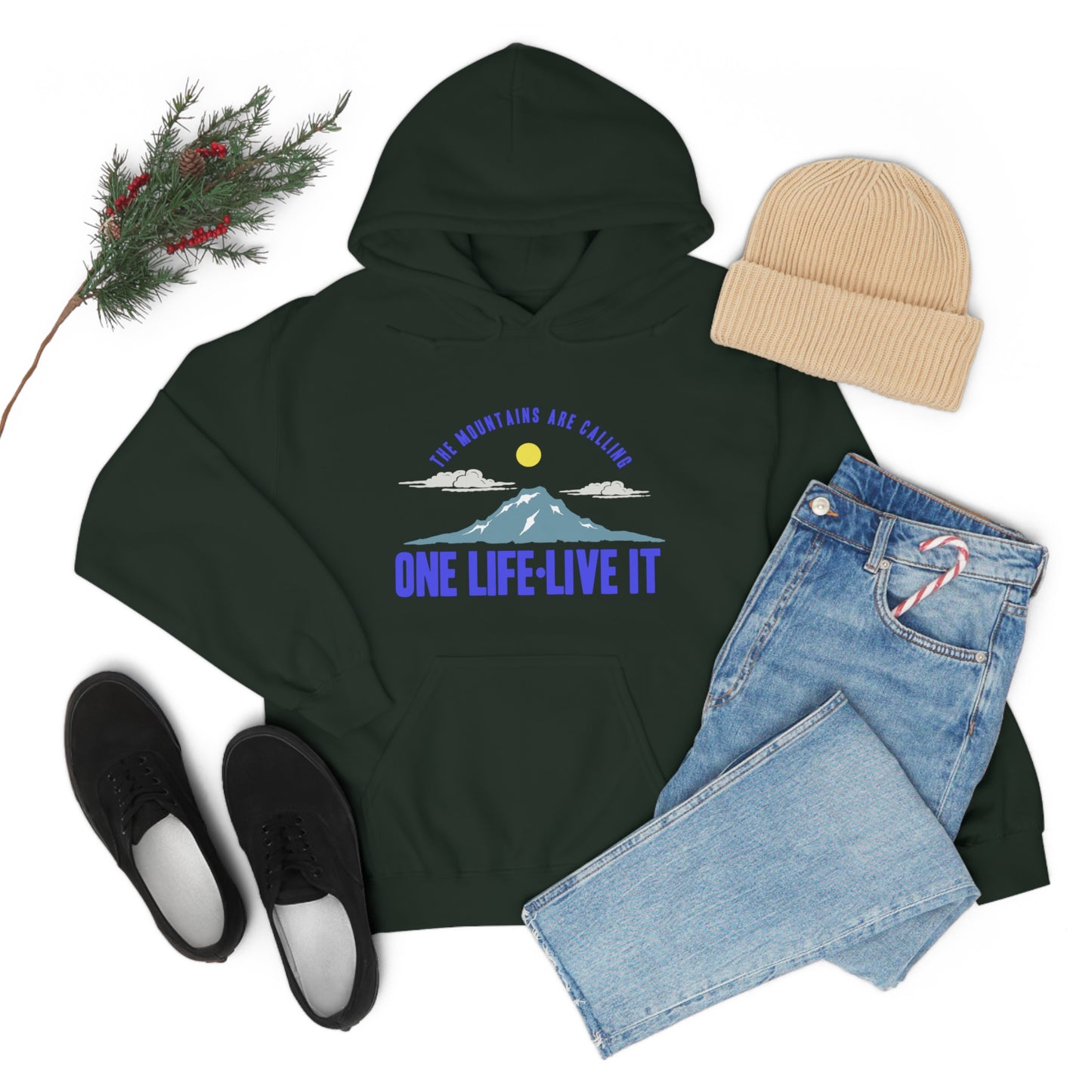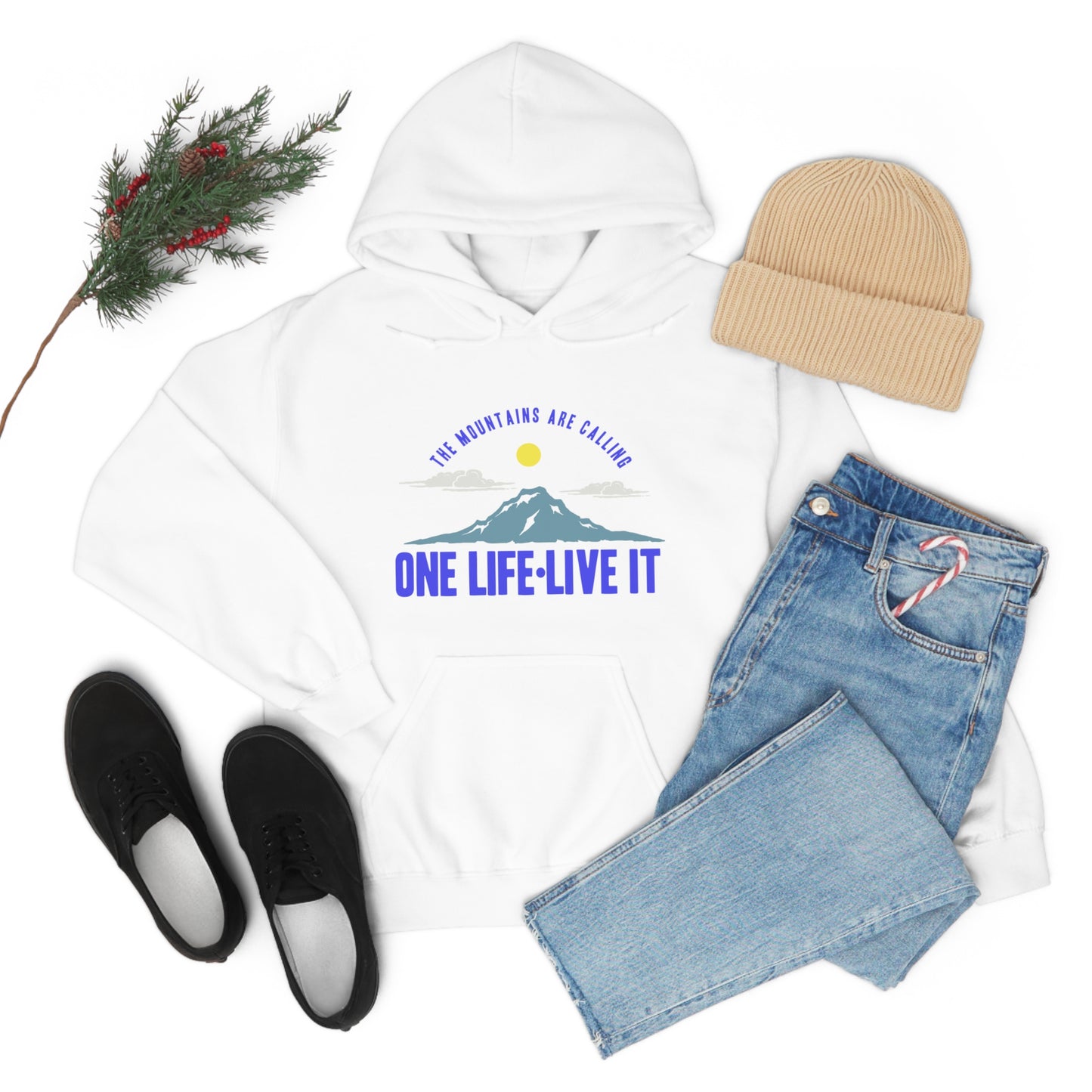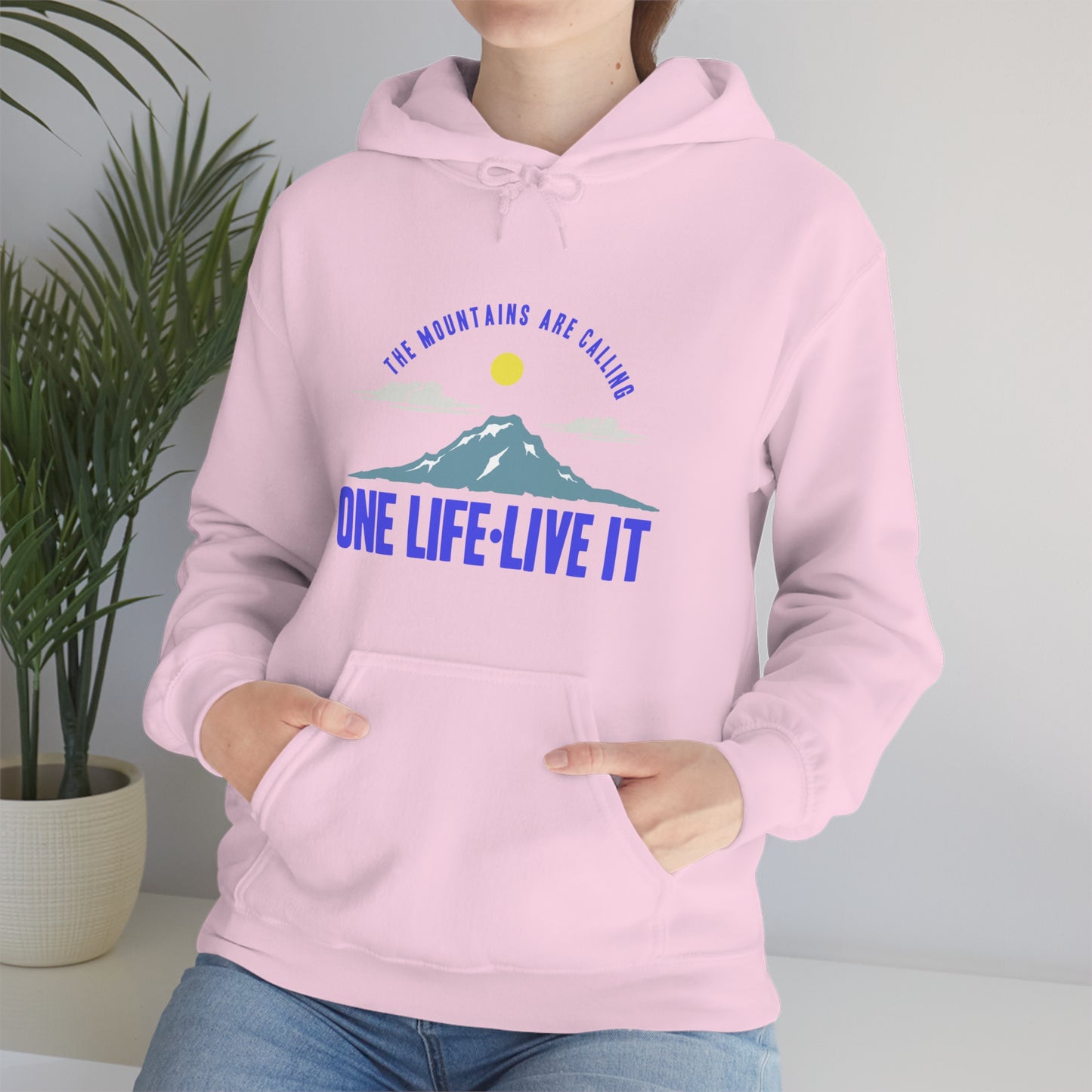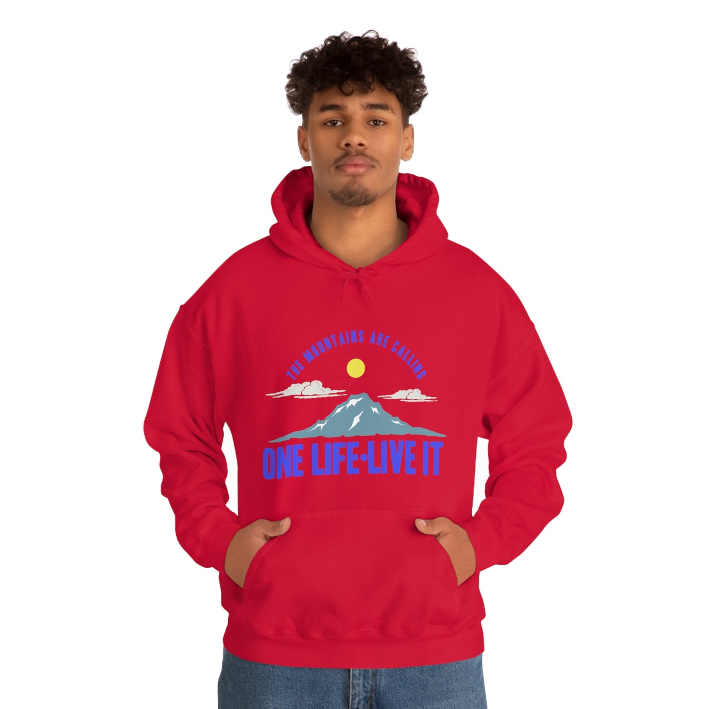 This unisex heavy blend hooded sweatshirt is relaxation itself. Made with a thick blend of cotton and polyester, it feels plush, soft and warm, a perfect choice for any cold day. In the front, the spacious kangaroo pocket adds daily practicality while the hood's drawstring is the same color as the base sweater for extra style points. Chill Stitch – Mountains One Life Live It - Unisex Hooded Hoodie Sweatshirt – Embrace Your Vibe