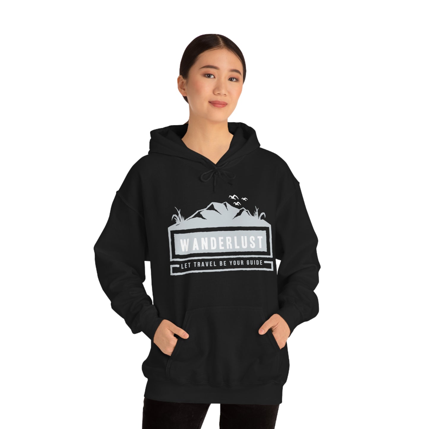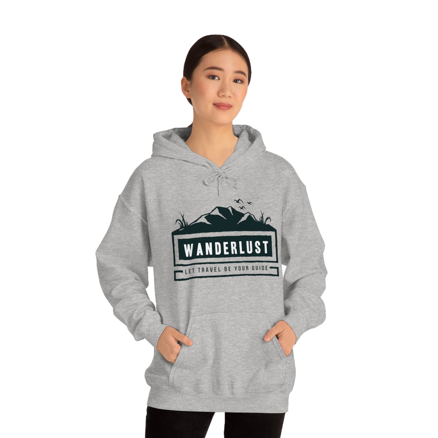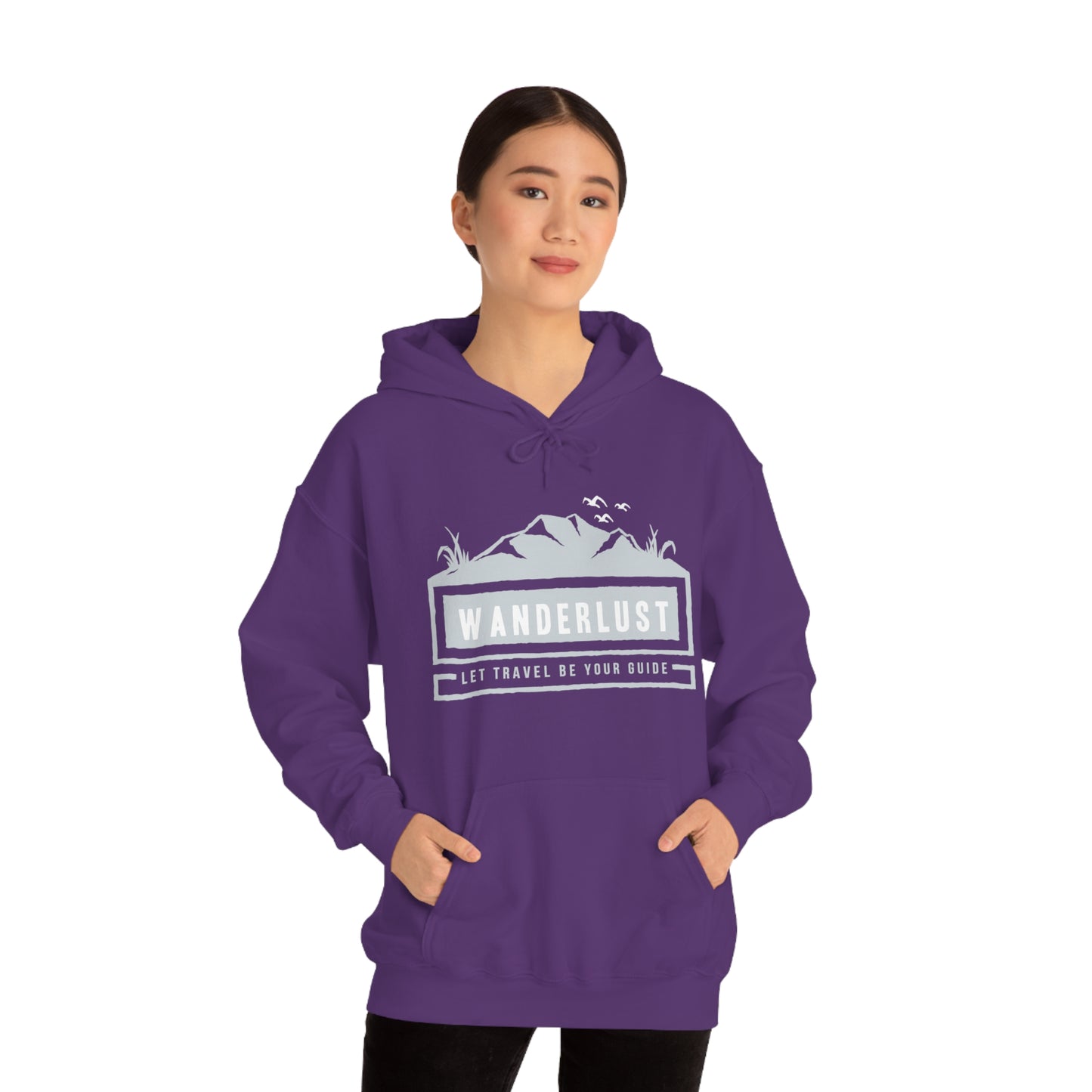 This unisex heavy blend hooded sweatshirt is relaxation itself. Made with a thick blend of cotton and polyester, it feels plush, soft and warm, a perfect choice for any cold day. In the front, the spacious kangaroo pocket adds daily practicality while the hood's drawstring is the same color as the base sweater for extra style points. Chill Stitch – Wanderlust Travel - Unisex Hooded Hoodie Sweatshirt – Embrace Your Vibe