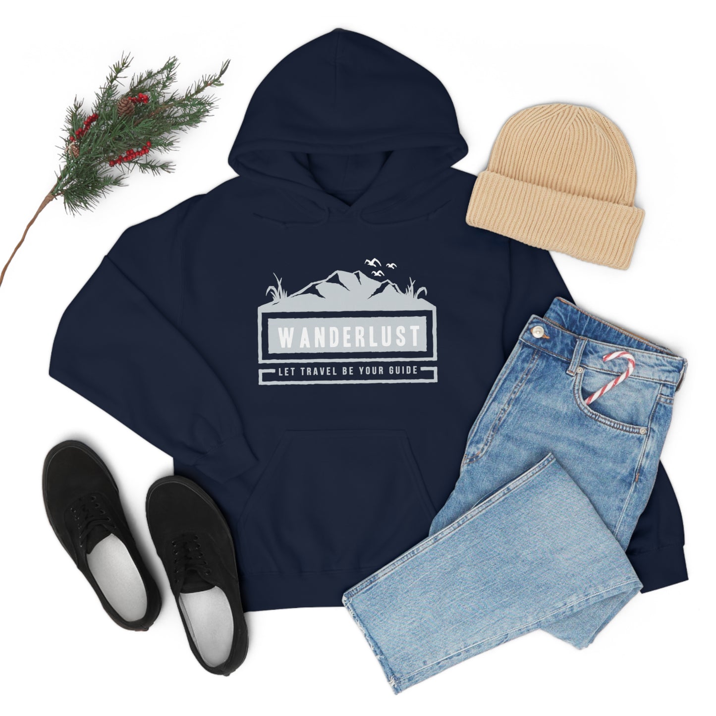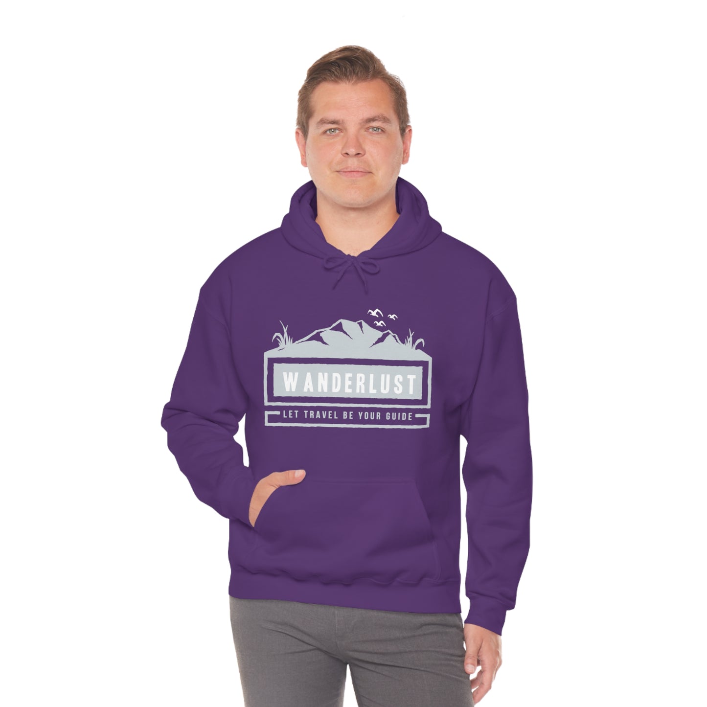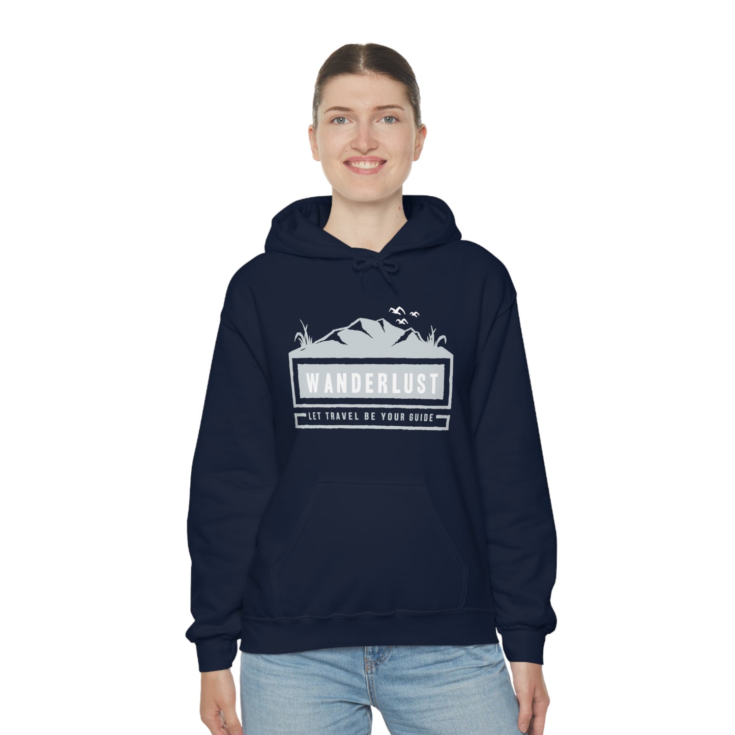This unisex heavy blend hooded sweatshirt is relaxation itself. Made with a thick blend of cotton and polyester, it feels plush, soft and warm, a perfect choice for any cold day. In the front, the spacious kangaroo pocket adds daily practicality while the hood's drawstring is the same color as the base sweater for extra style points. Chill Stitch – Wanderlust Travel - Unisex Hooded Hoodie Sweatshirt – Embrace Your Vibe