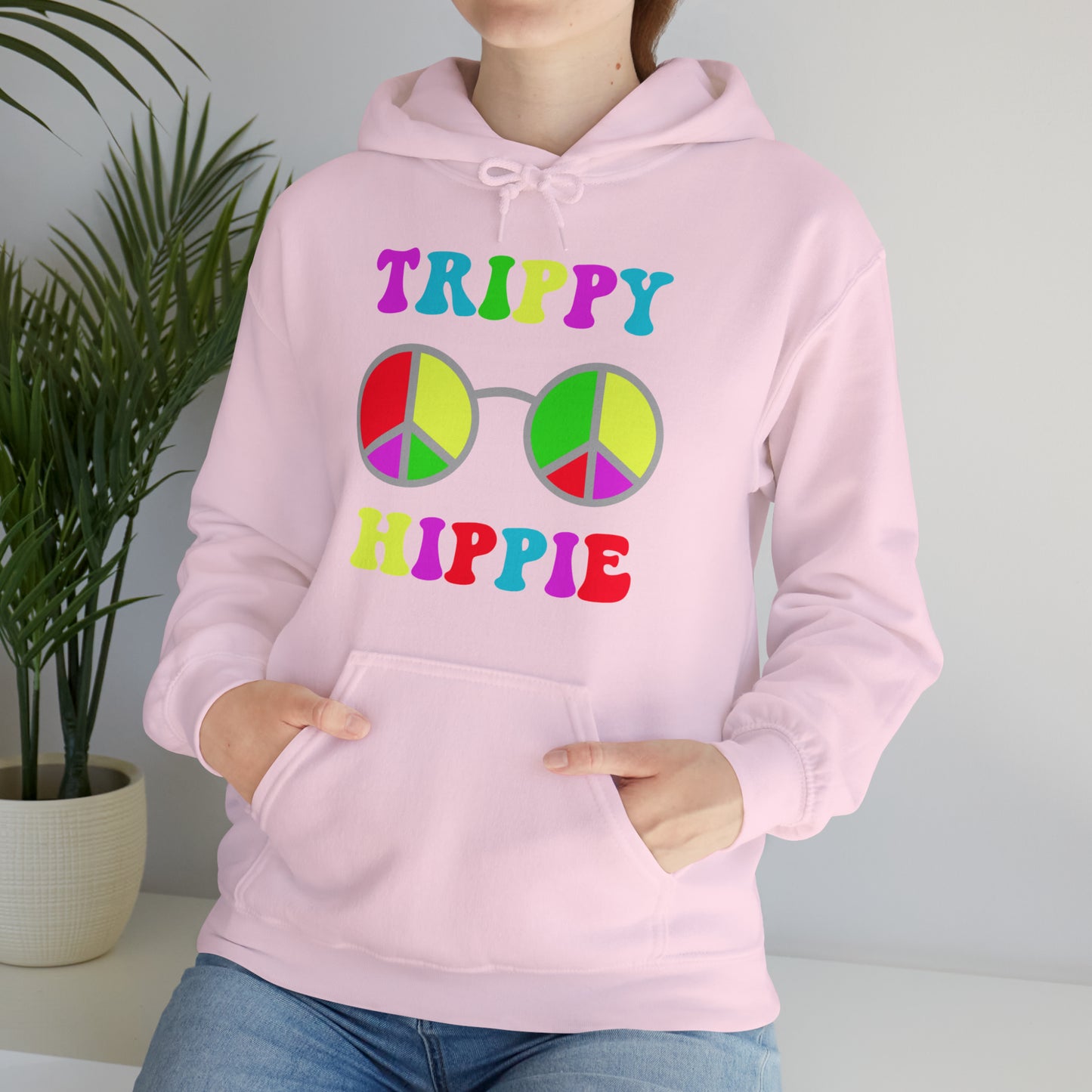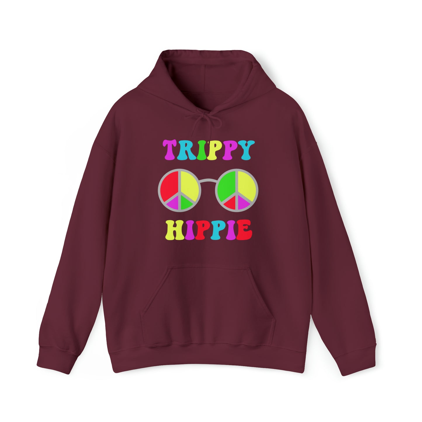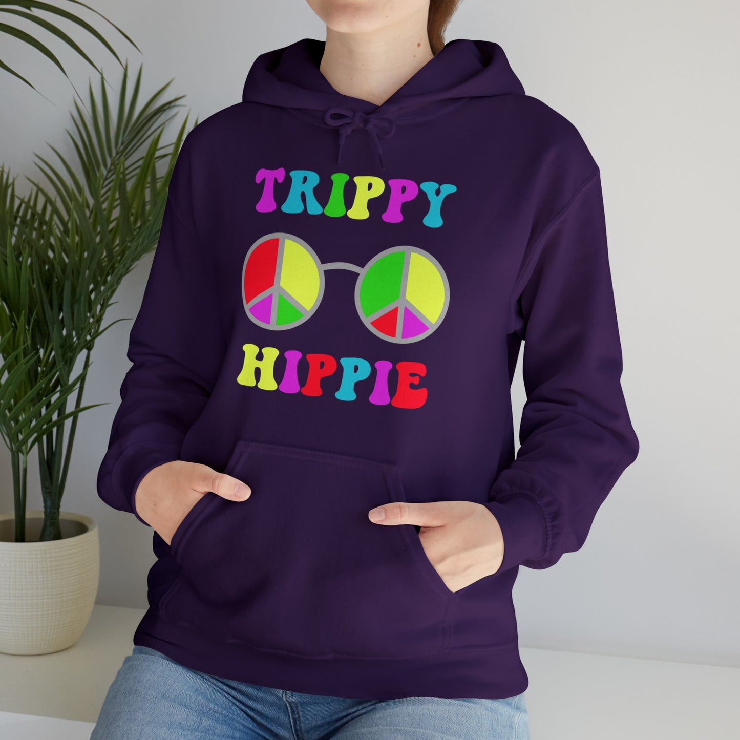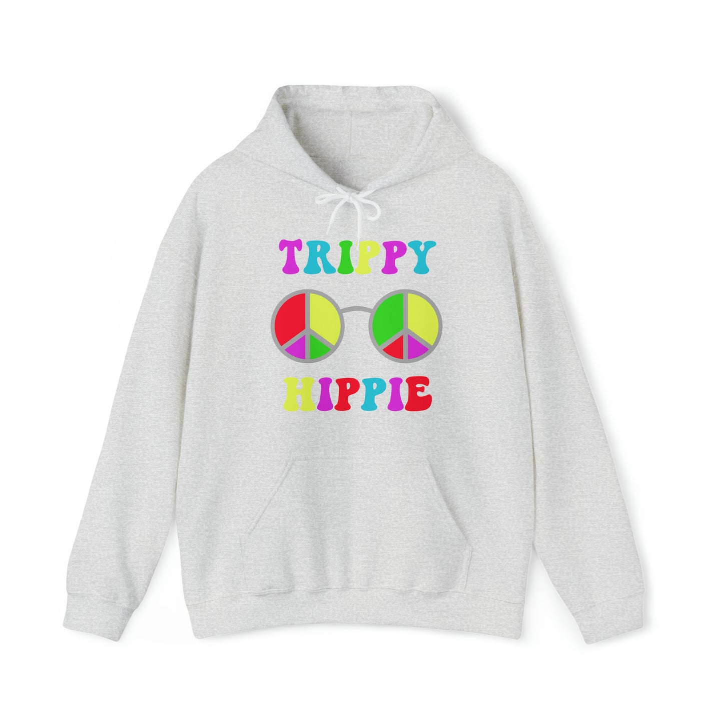 This unisex heavy blend hooded sweatshirt is relaxation itself. Made with a thick blend of cotton and polyester, it feels plush, soft and warm, a perfect choice for any cold day. In the front, the spacious kangaroo pocket adds daily practicality while the hood's drawstring is the same color as the base sweater for extra style points. Chill Stitch – Trippy Hippie Sunglasses - Unisex Hooded Hoodie Sweatshirt – Embrace Your Vibe