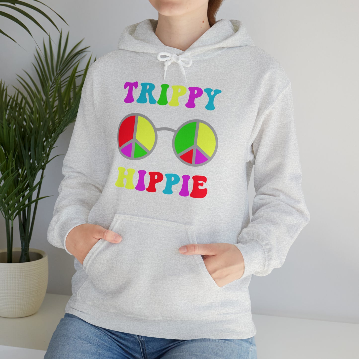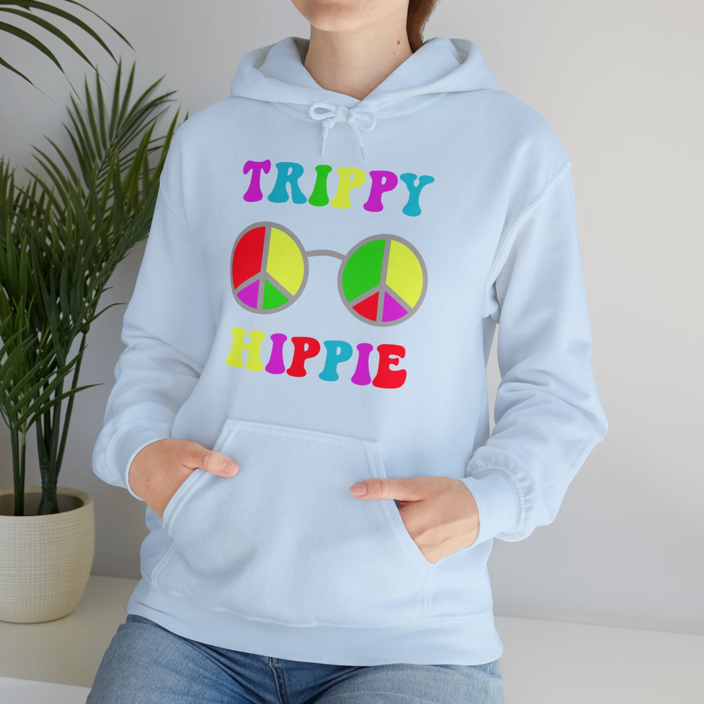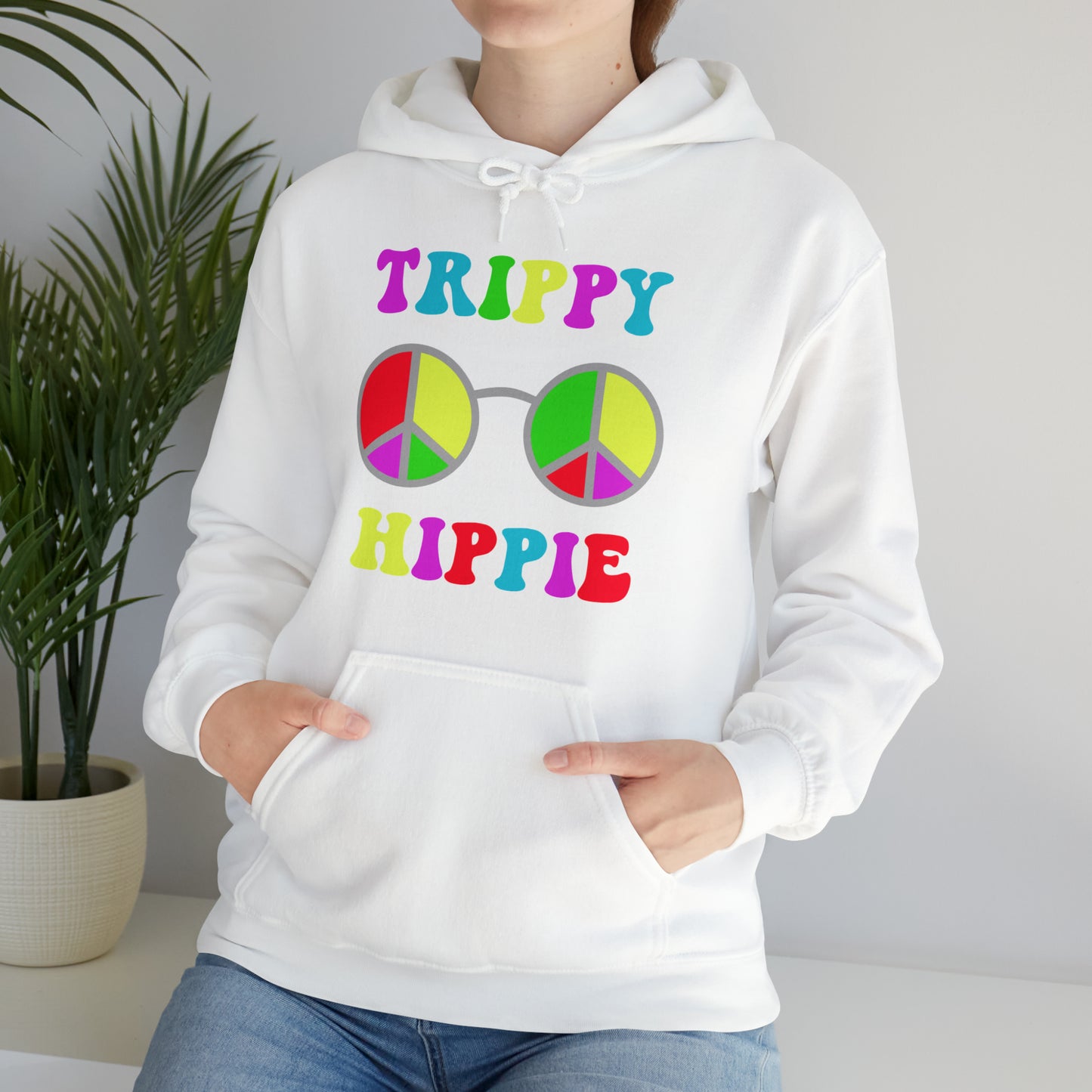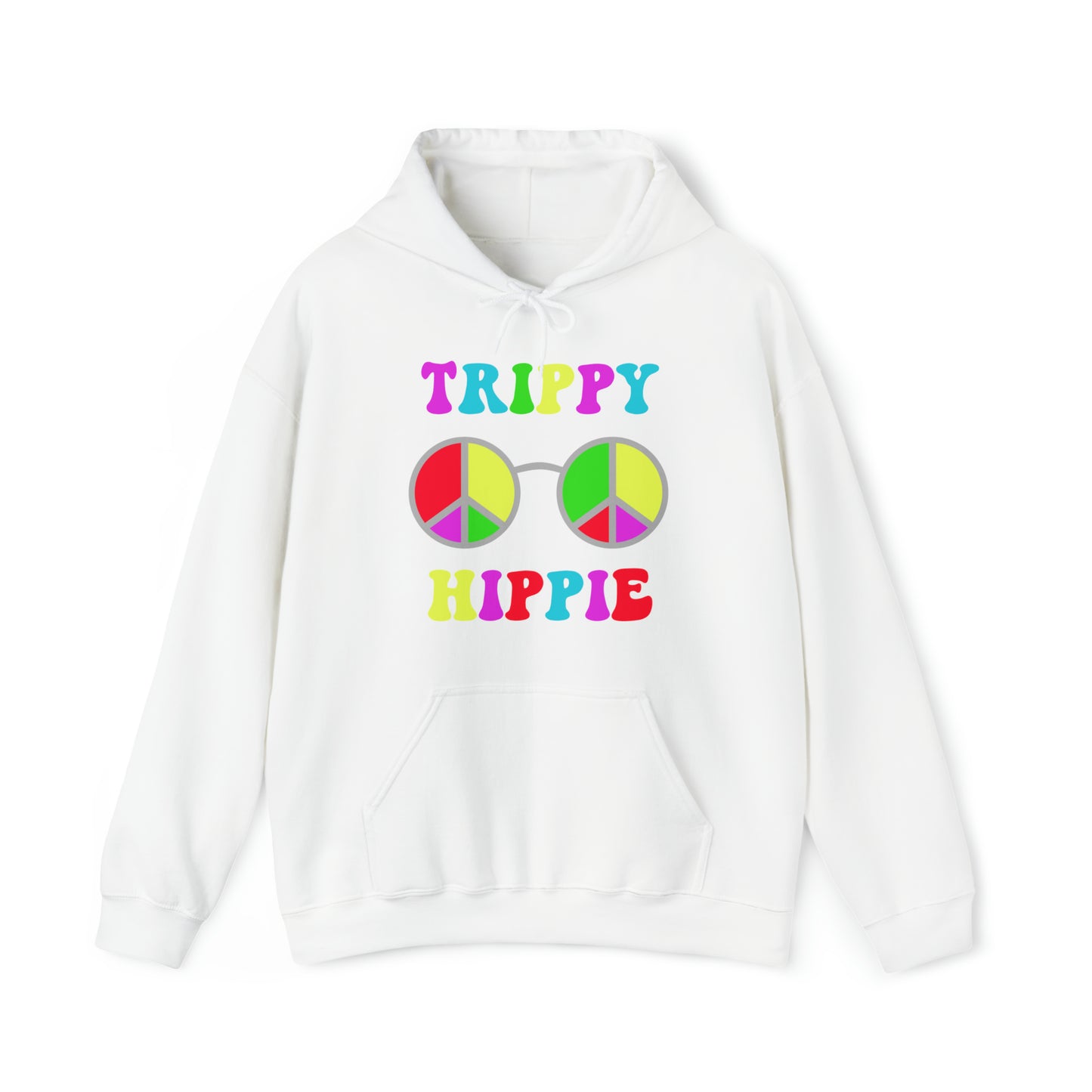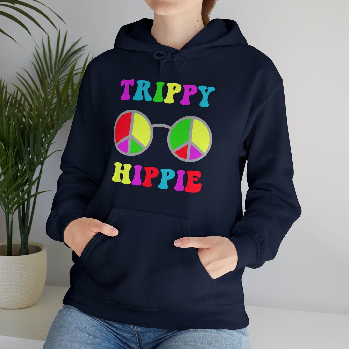 This unisex heavy blend hooded sweatshirt is relaxation itself. Made with a thick blend of cotton and polyester, it feels plush, soft and warm, a perfect choice for any cold day. In the front, the spacious kangaroo pocket adds daily practicality while the hood's drawstring is the same color as the base sweater for extra style points. Chill Stitch – Trippy Hippie Sunglasses - Unisex Hooded Hoodie Sweatshirt – Embrace Your Vibe