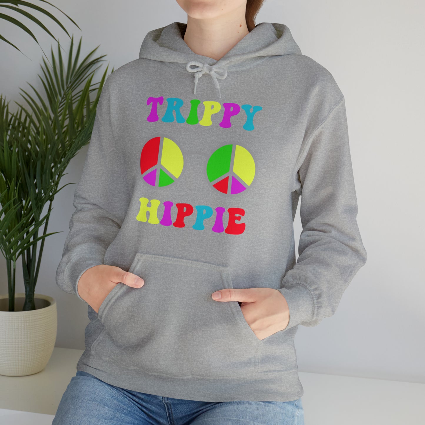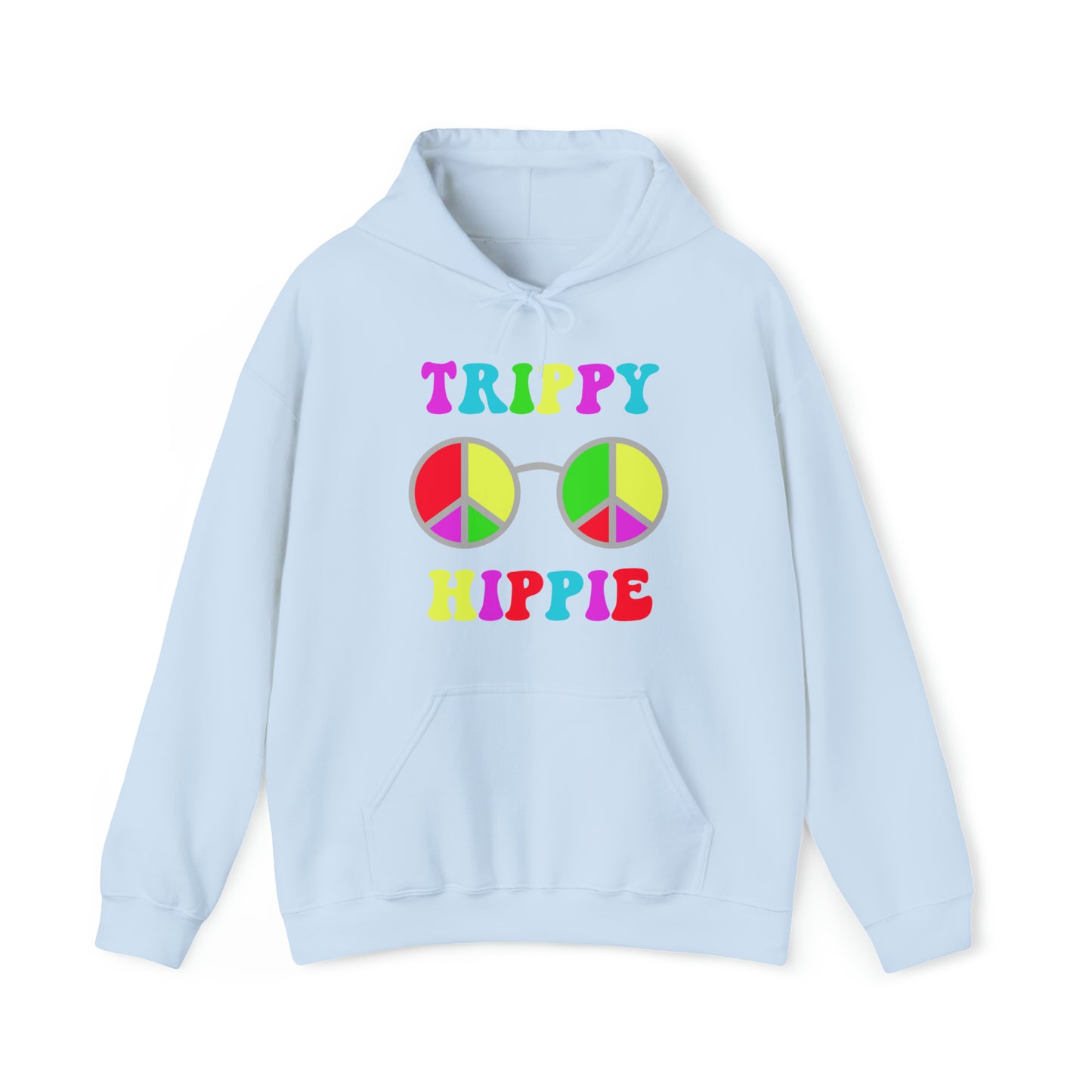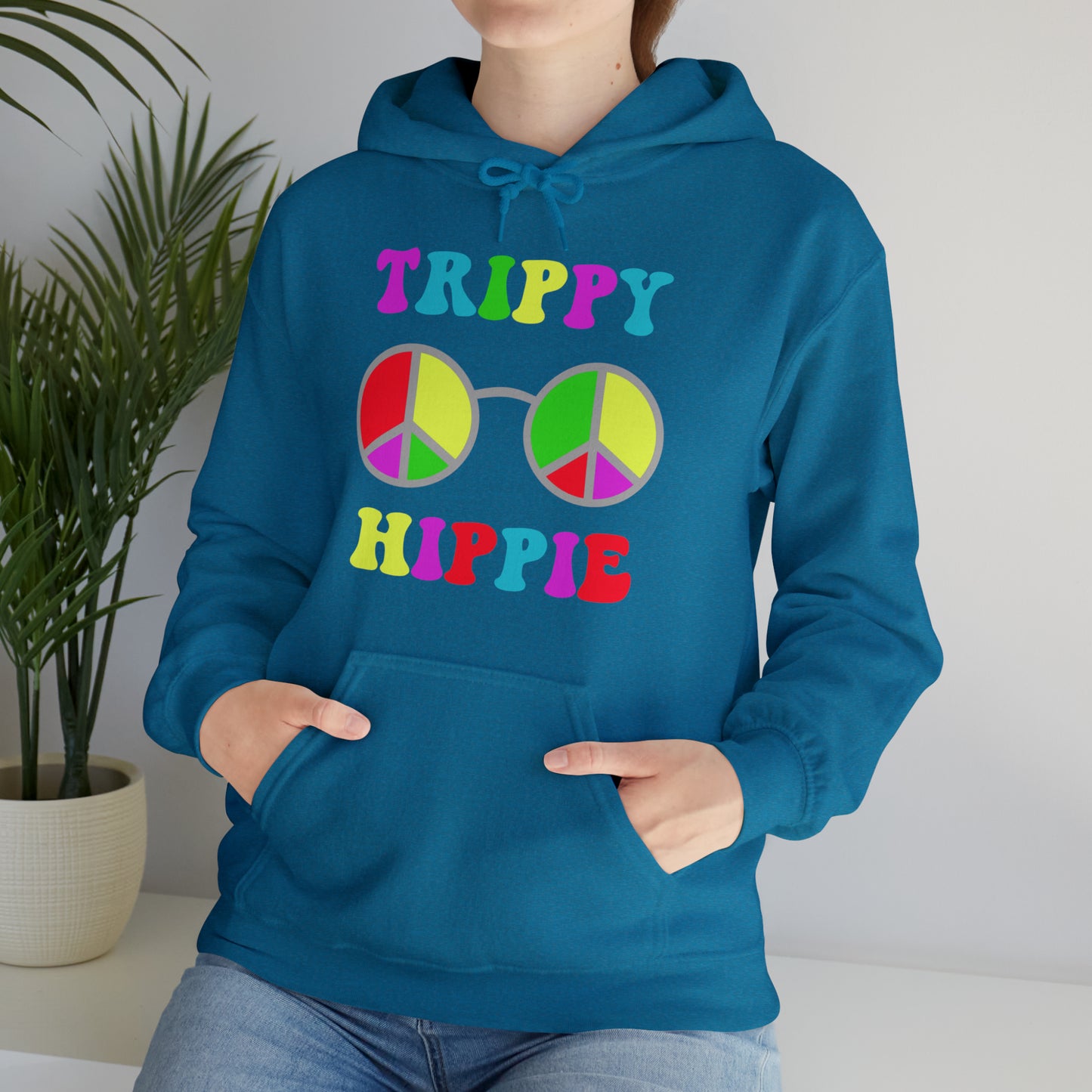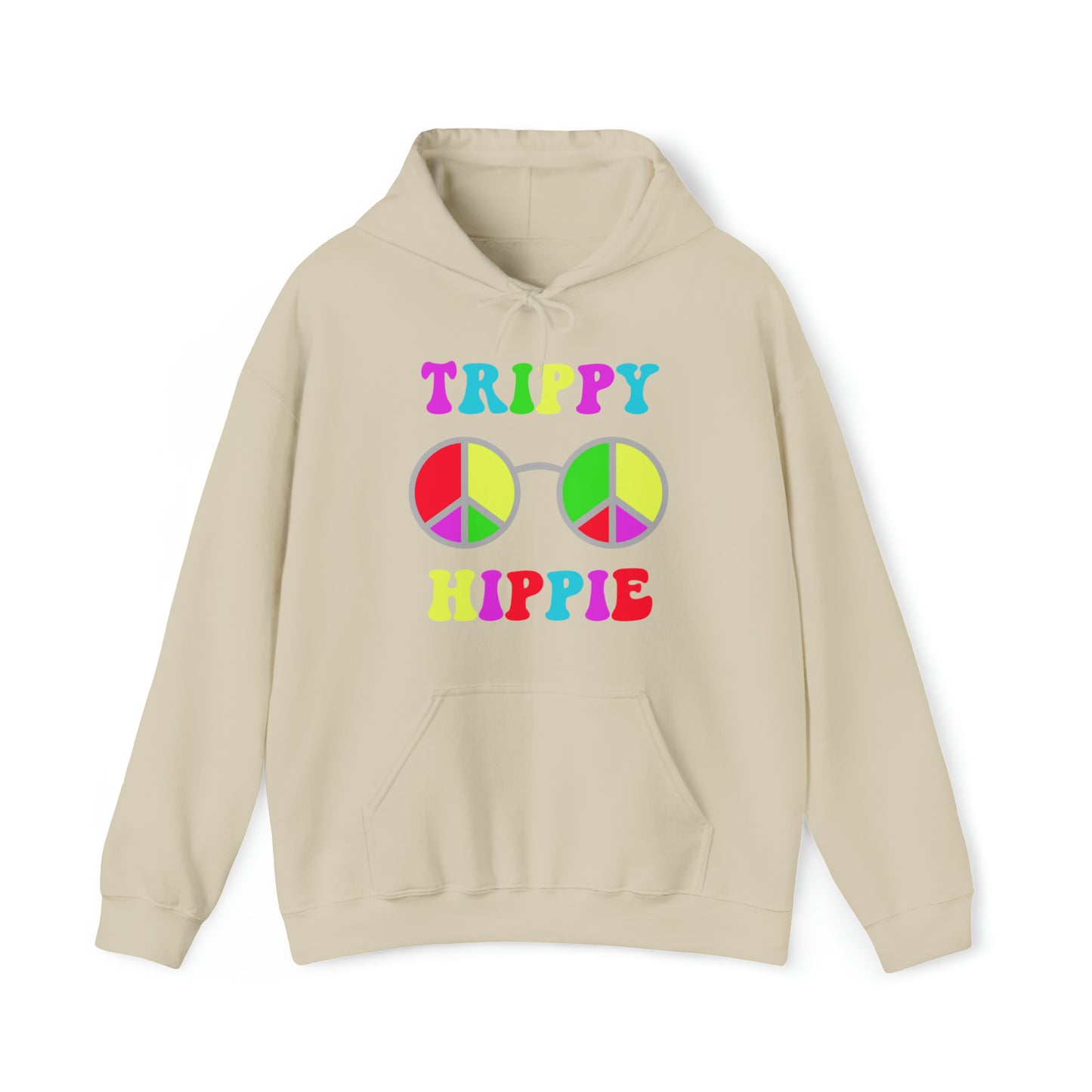 This unisex heavy blend hooded sweatshirt is relaxation itself. Made with a thick blend of cotton and polyester, it feels plush, soft and warm, a perfect choice for any cold day. In the front, the spacious kangaroo pocket adds daily practicality while the hood's drawstring is the same color as the base sweater for extra style points. Chill Stitch – Trippy Hippie Sunglasses - Unisex Hooded Hoodie Sweatshirt – Embrace Your Vibe