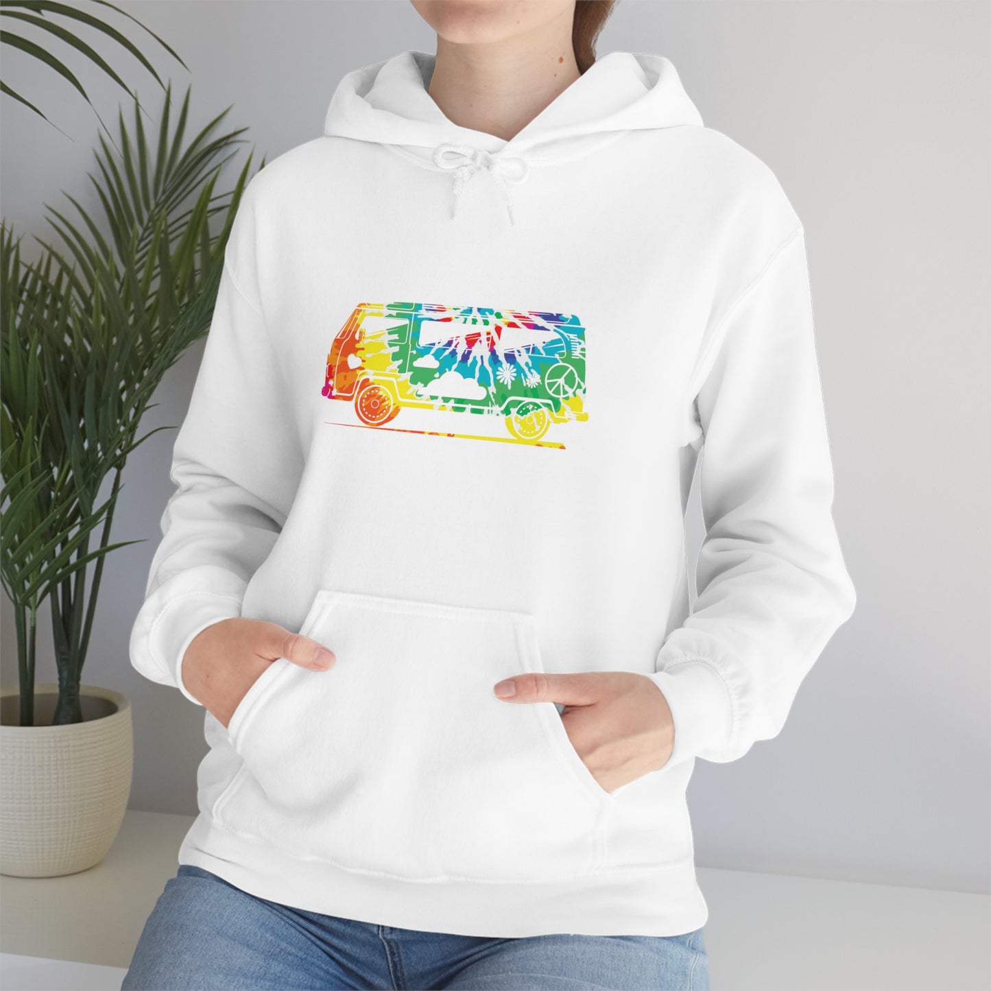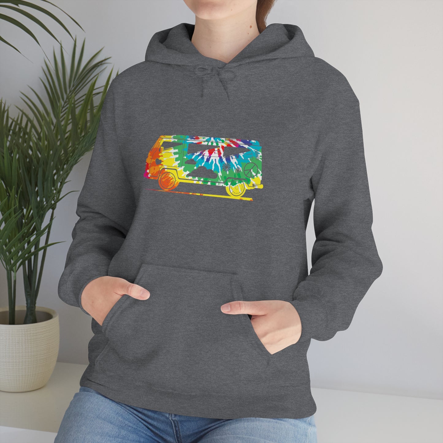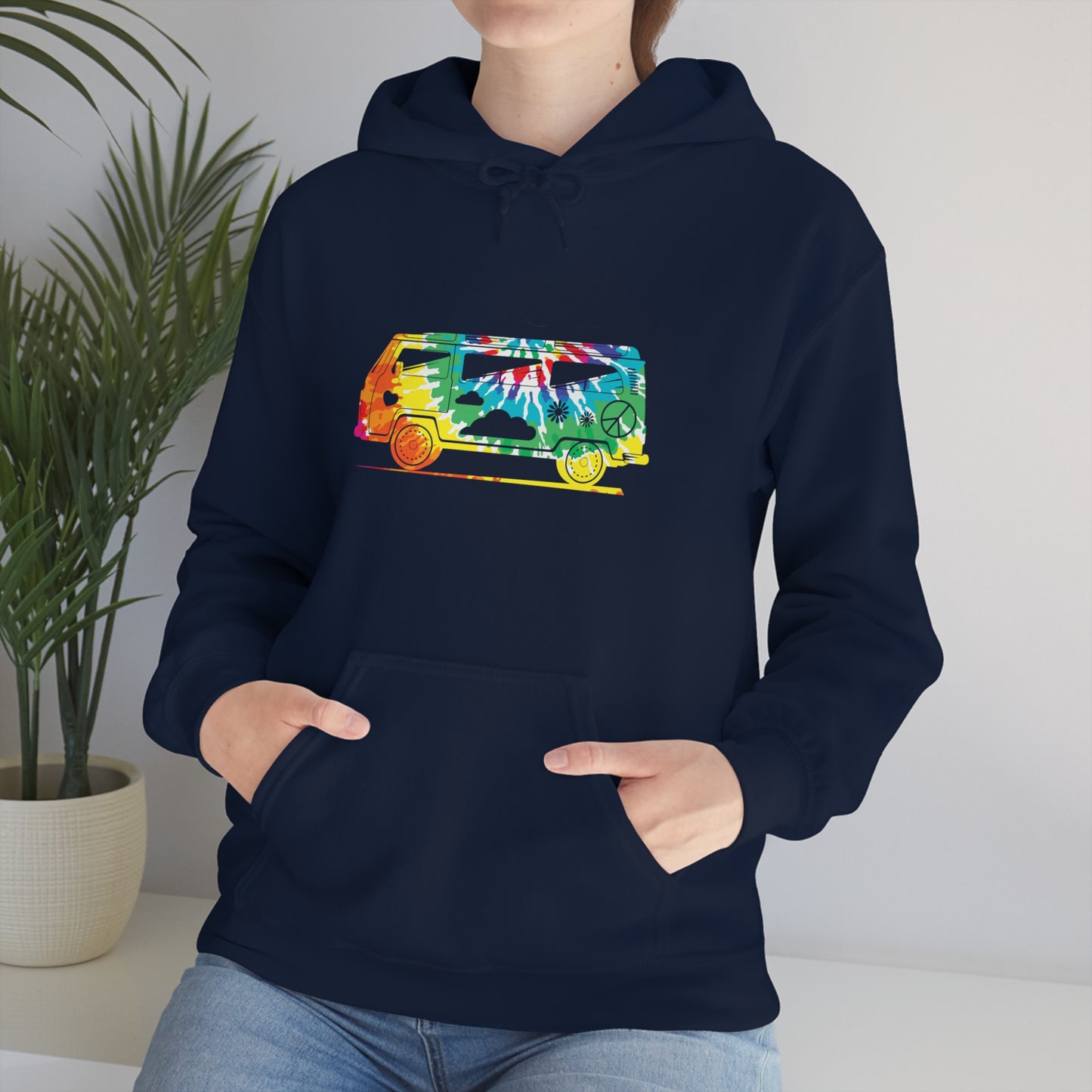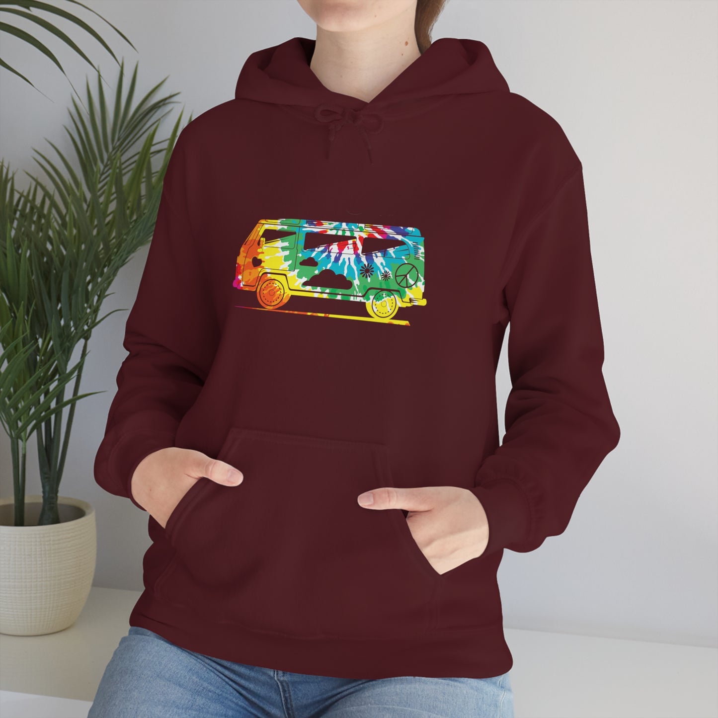 Chill Stitch – VW Tie-dye Van - Unisex Hooded Hoodie Sweatshirt – Embrace Your Vibe