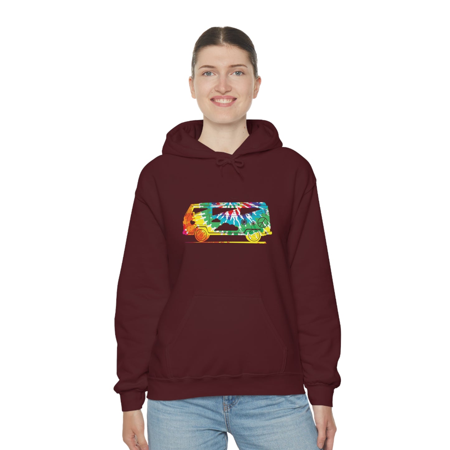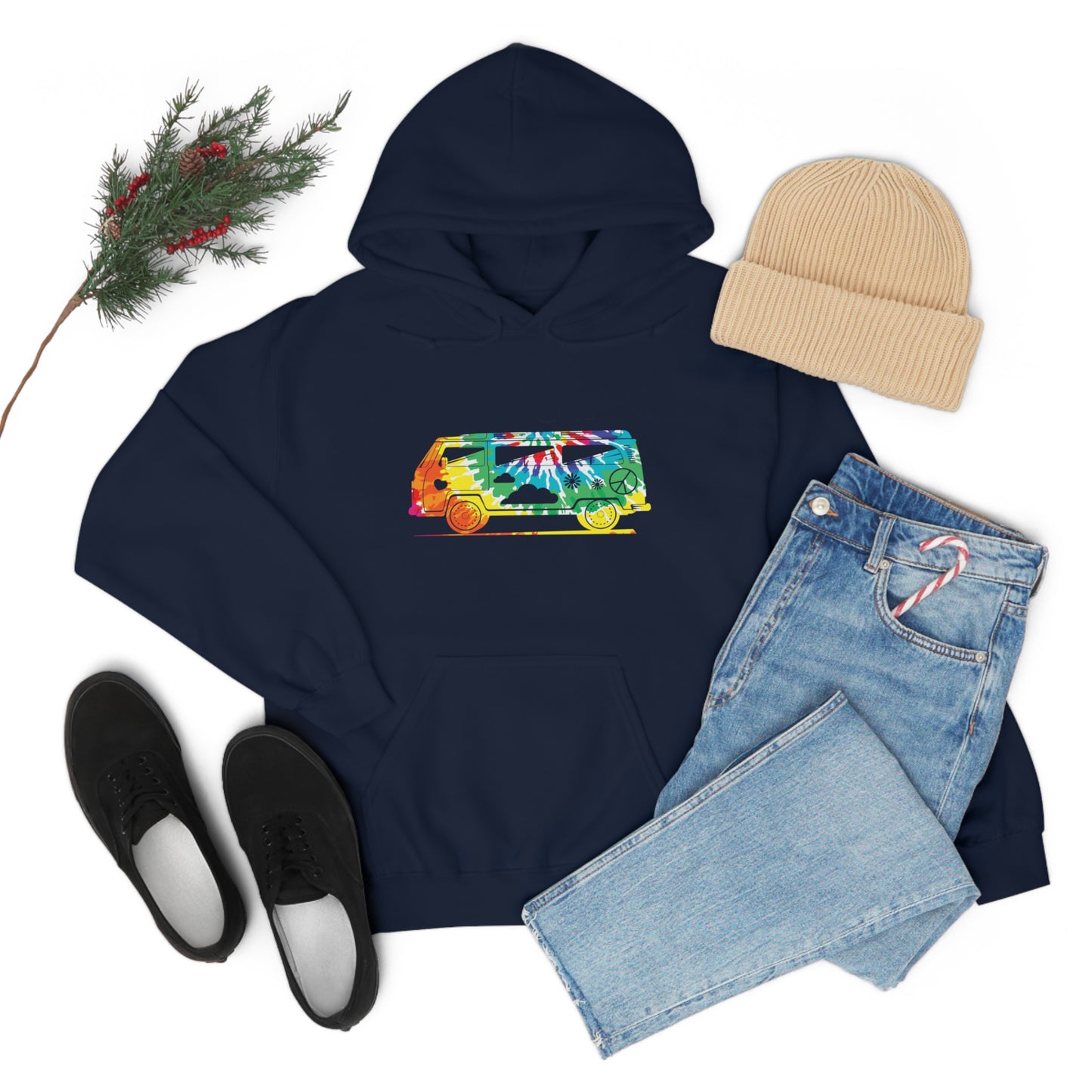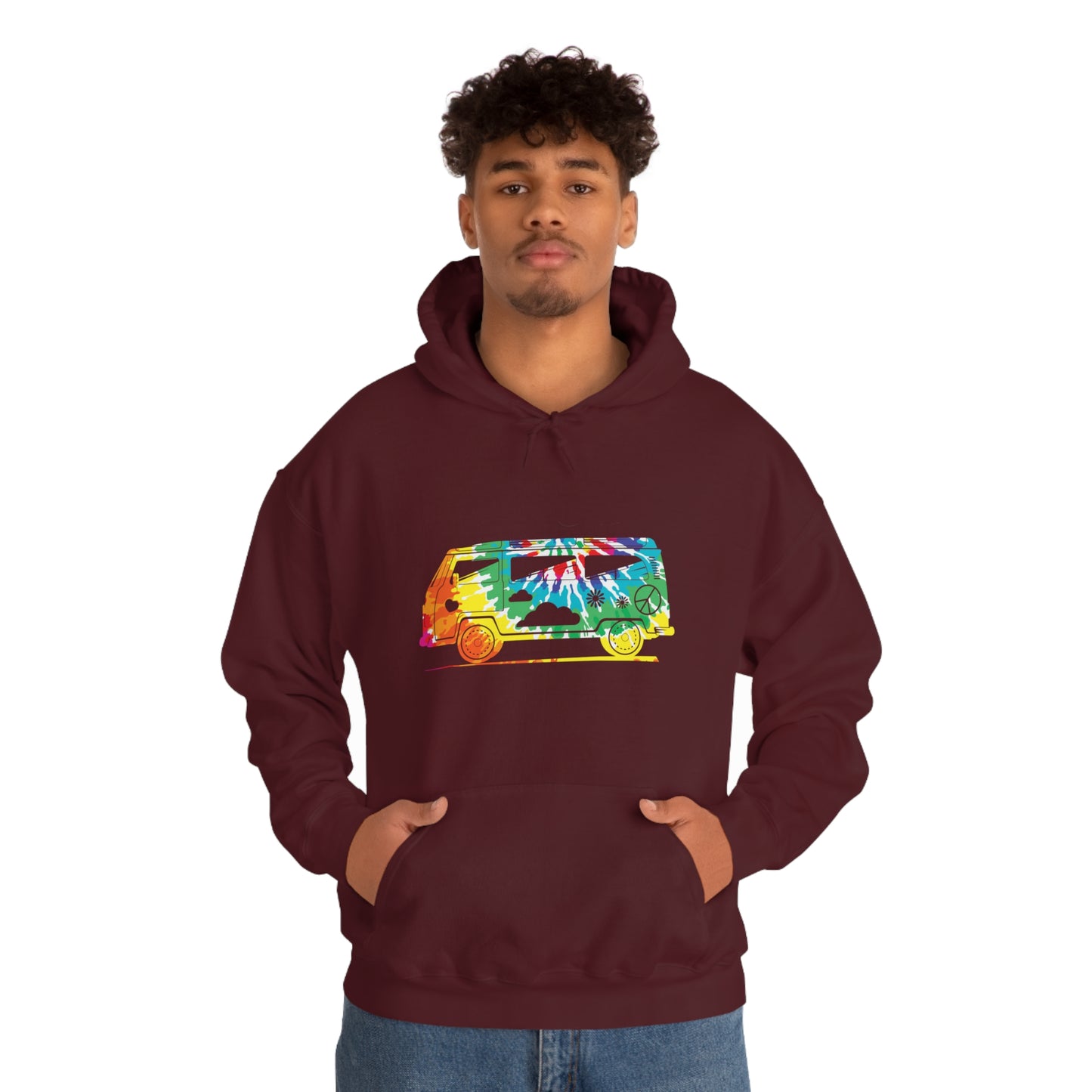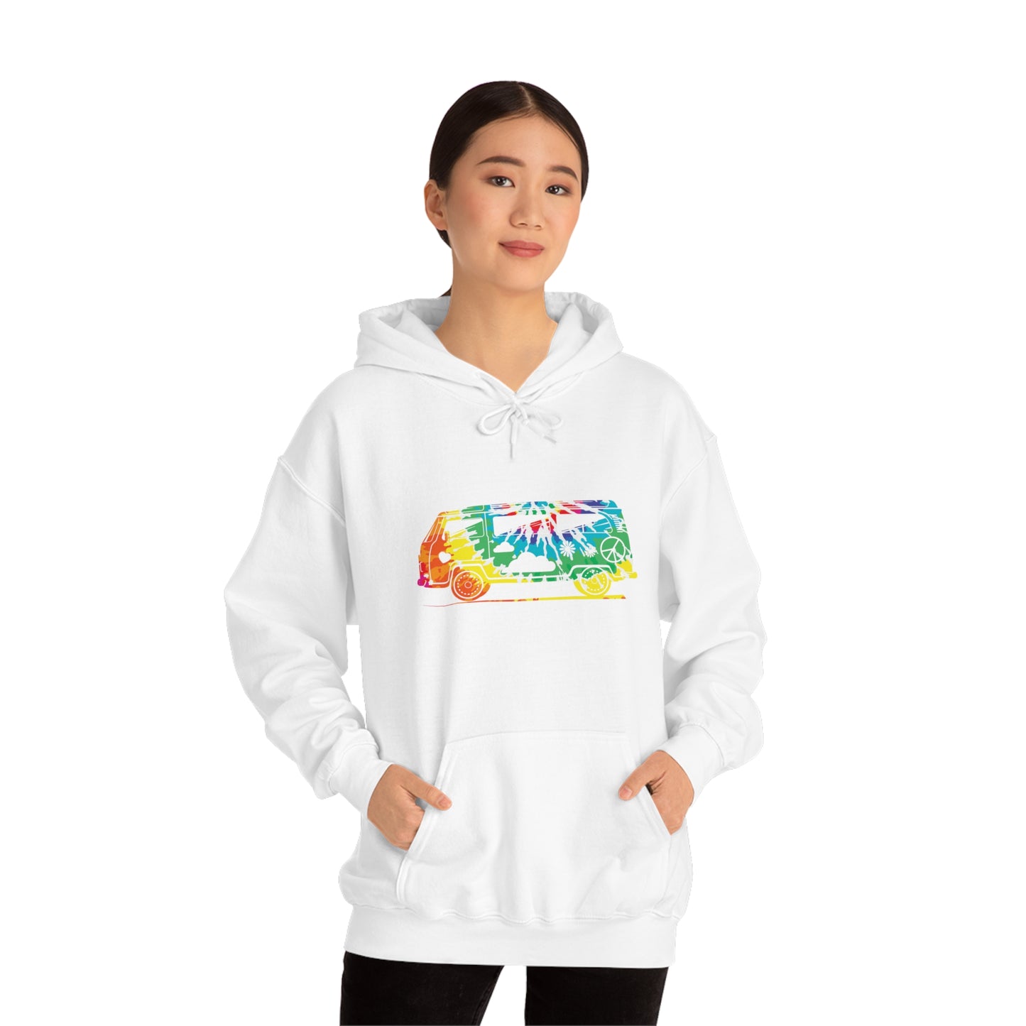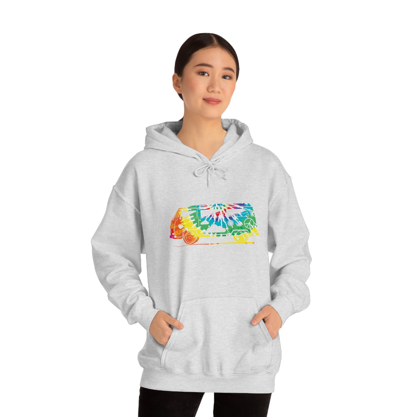 Chill Stitch – VW Tie-dye Van - Unisex Hooded Hoodie Sweatshirt – Embrace Your Vibe