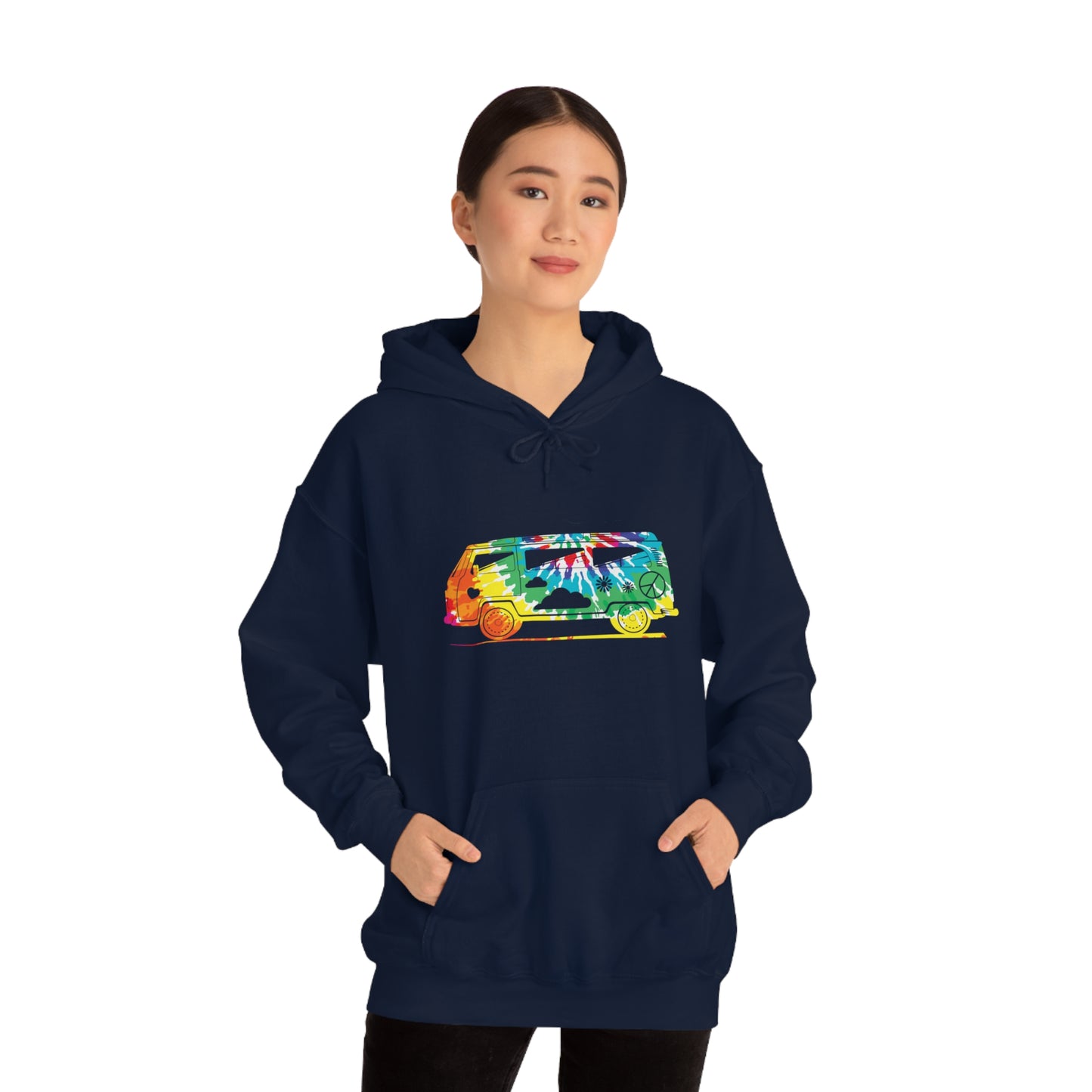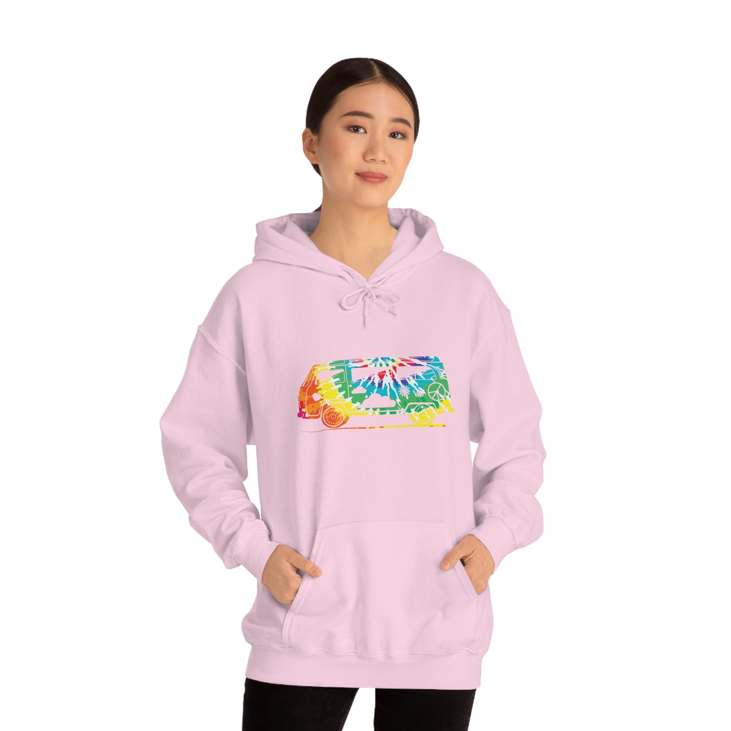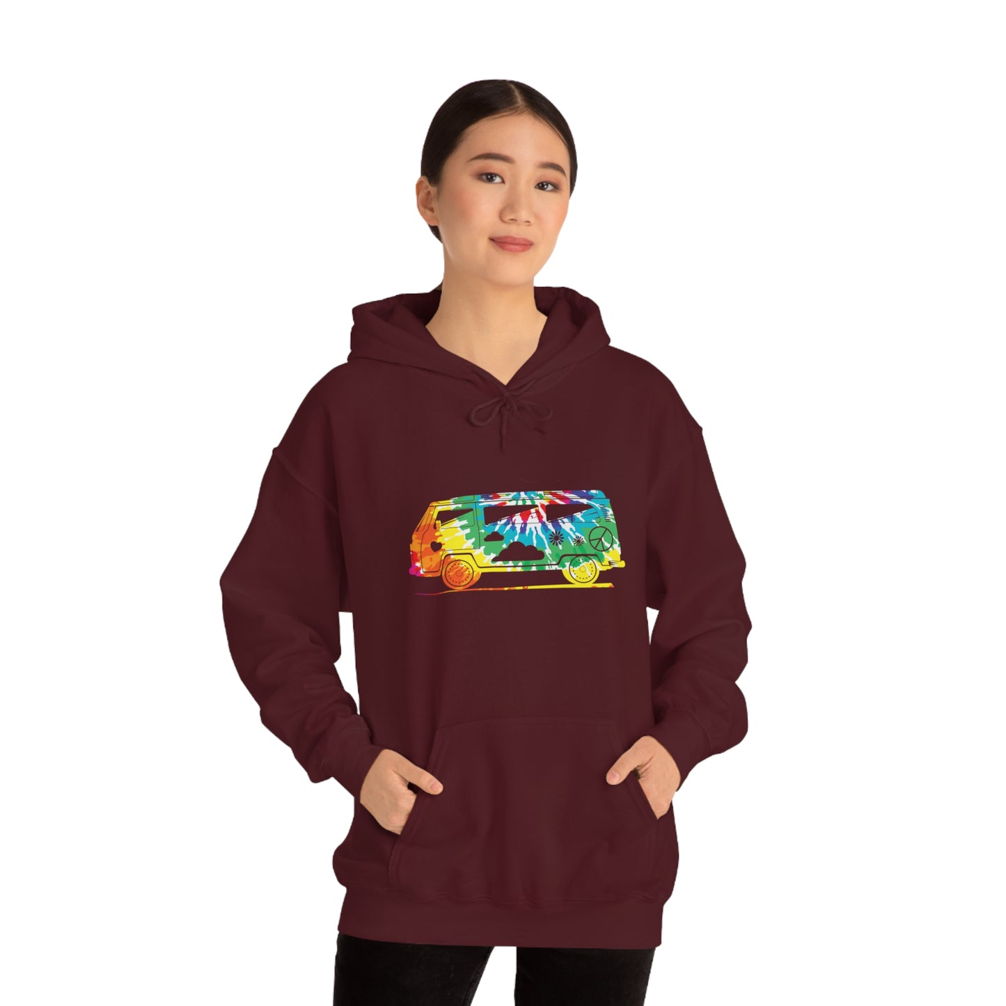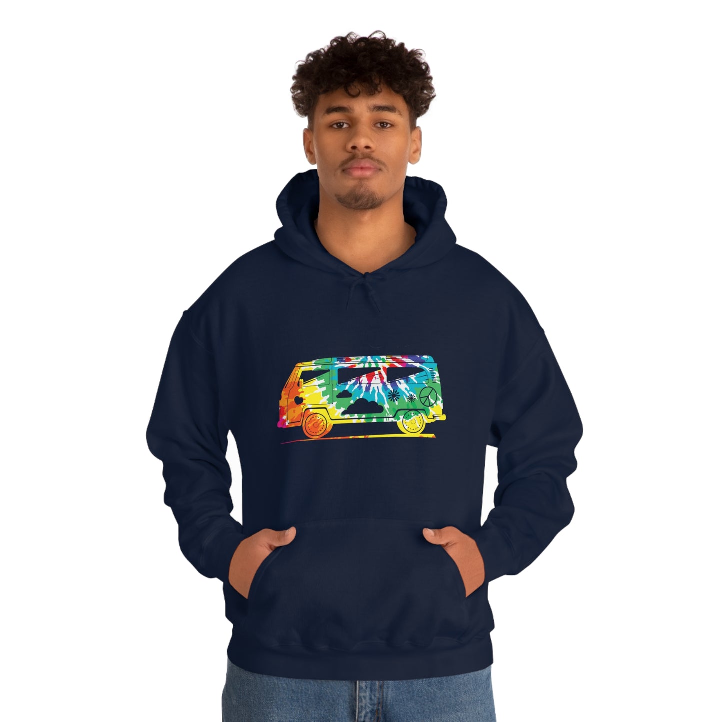 Chill Stitch – VW Tie-dye Van - Unisex Hooded Hoodie Sweatshirt – Embrace Your Vibe