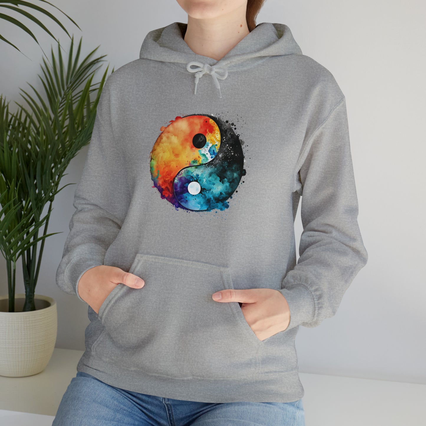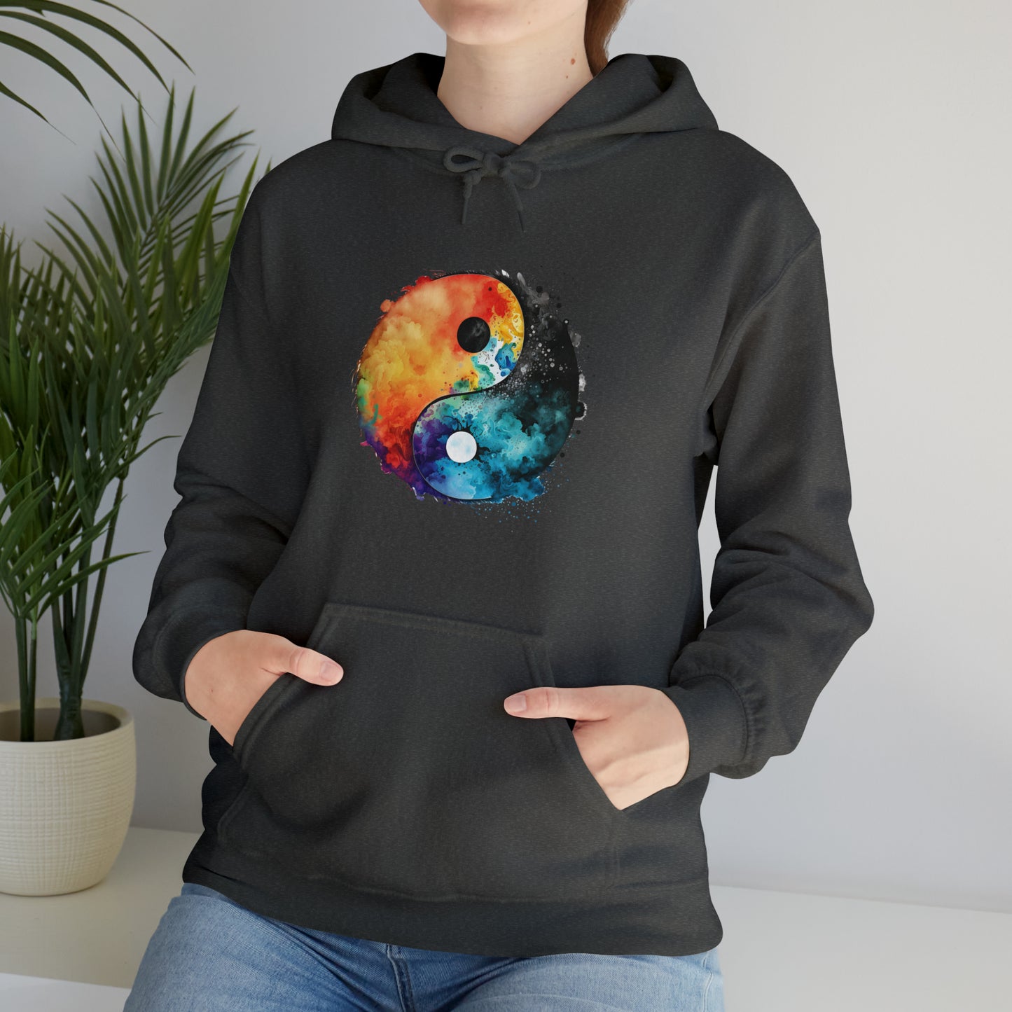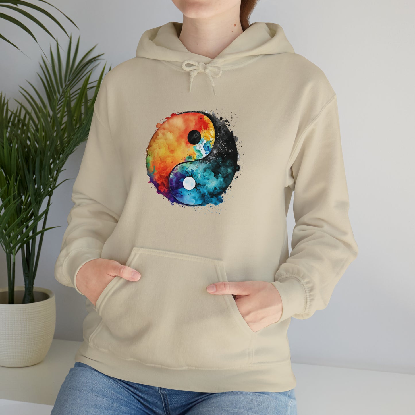 Yoga Sweatshirt | Yin Yang Sign V4 Watercolor | Unisex Hooded Hoodie Sweatshirt