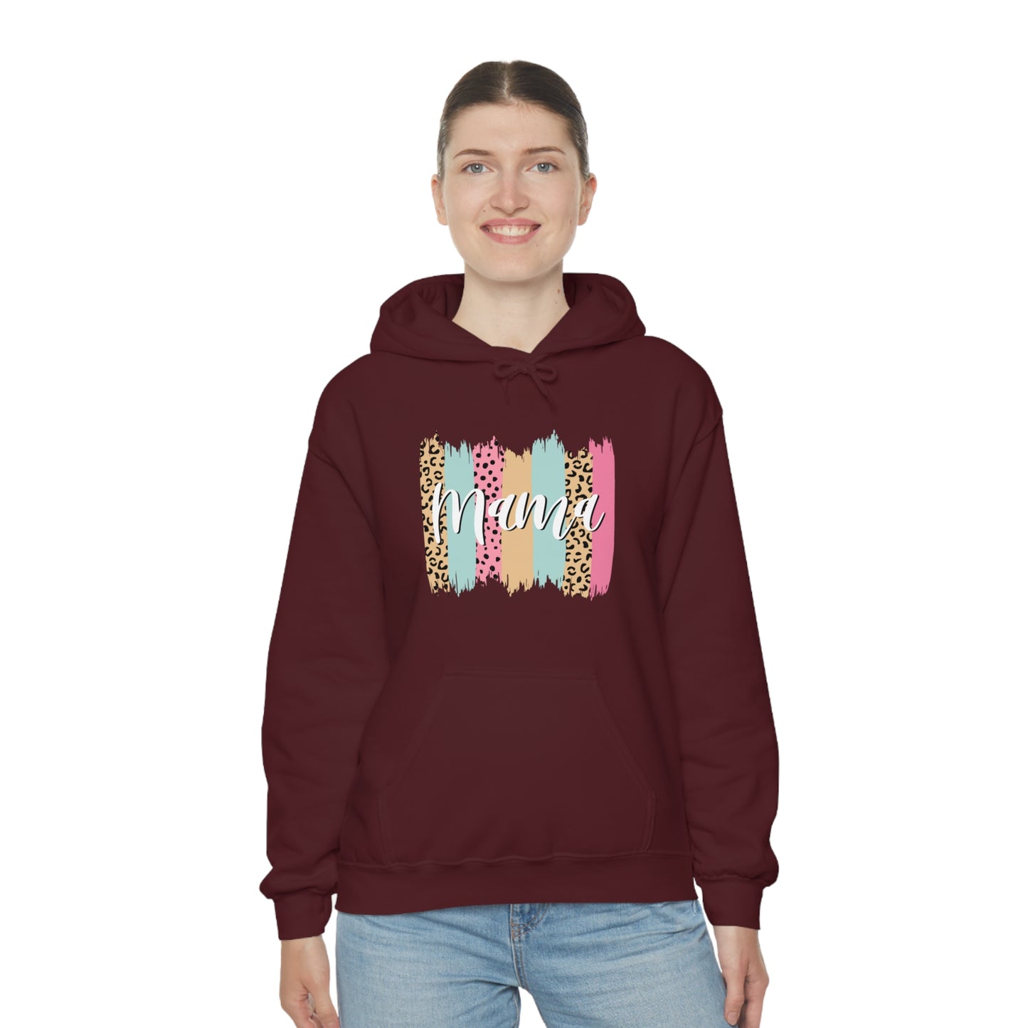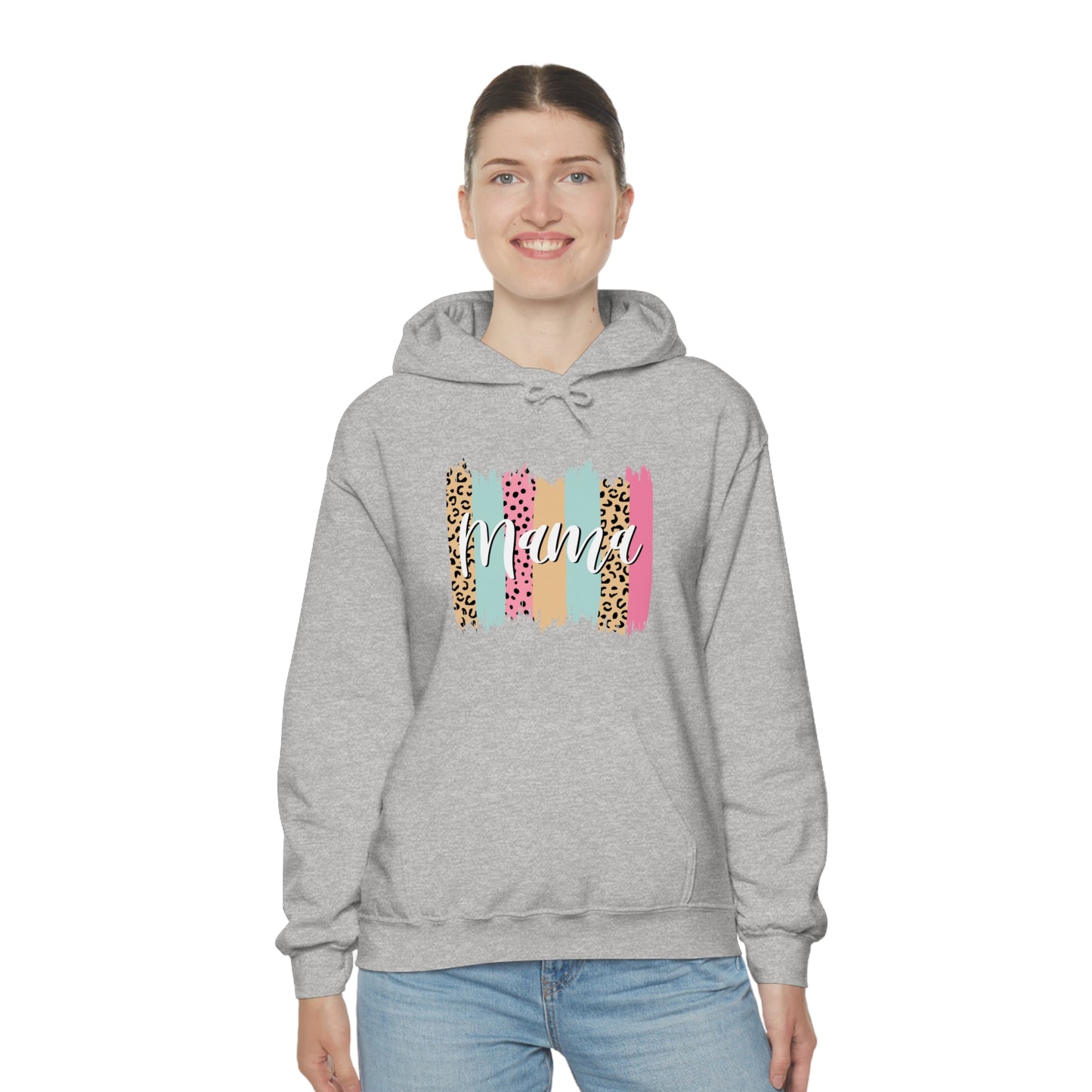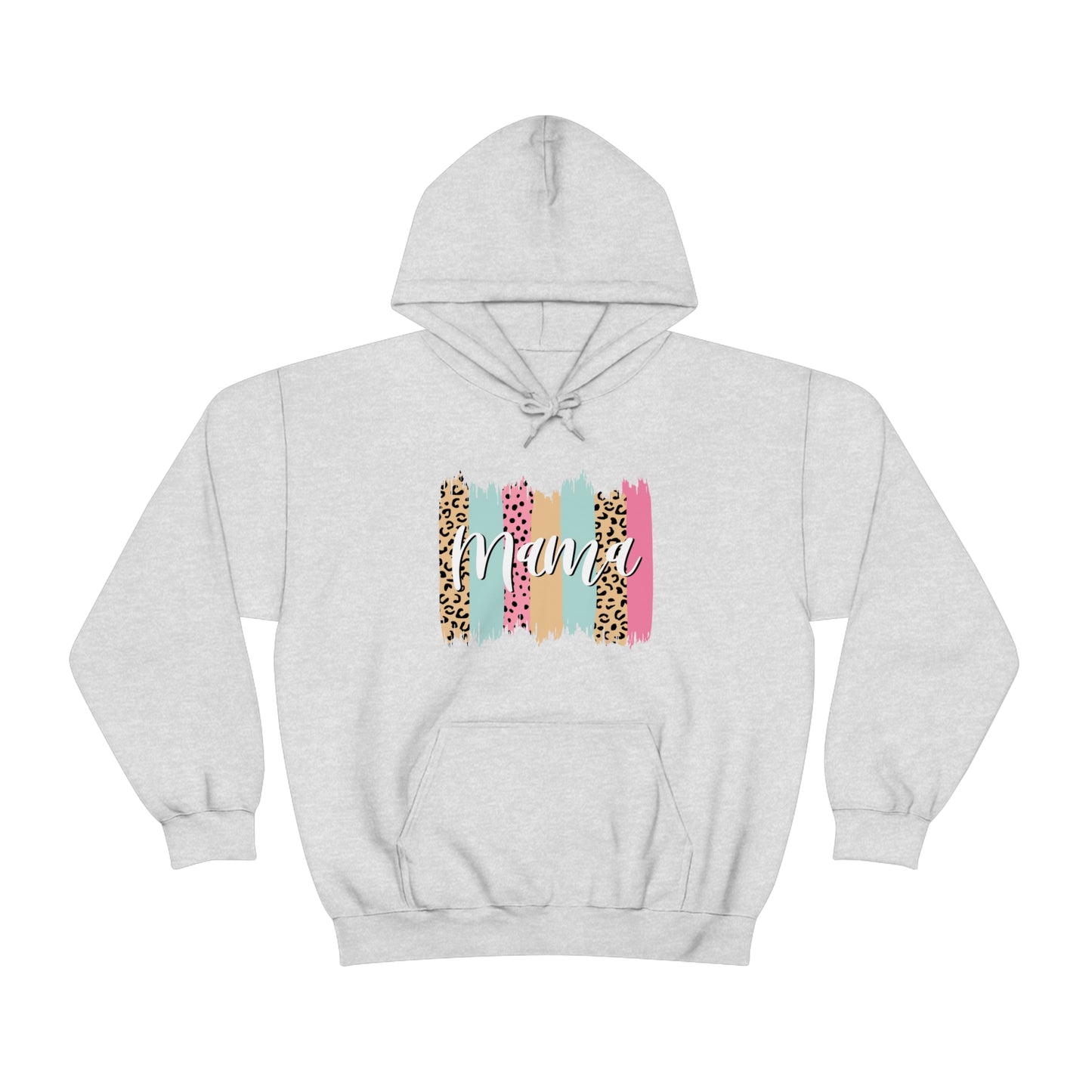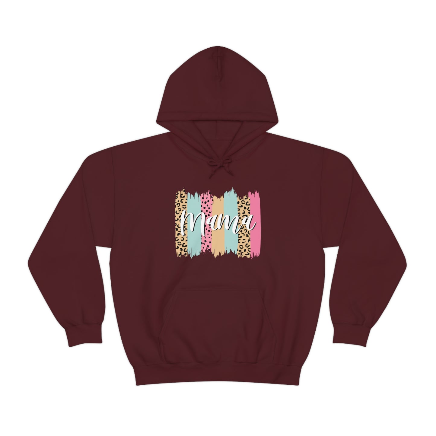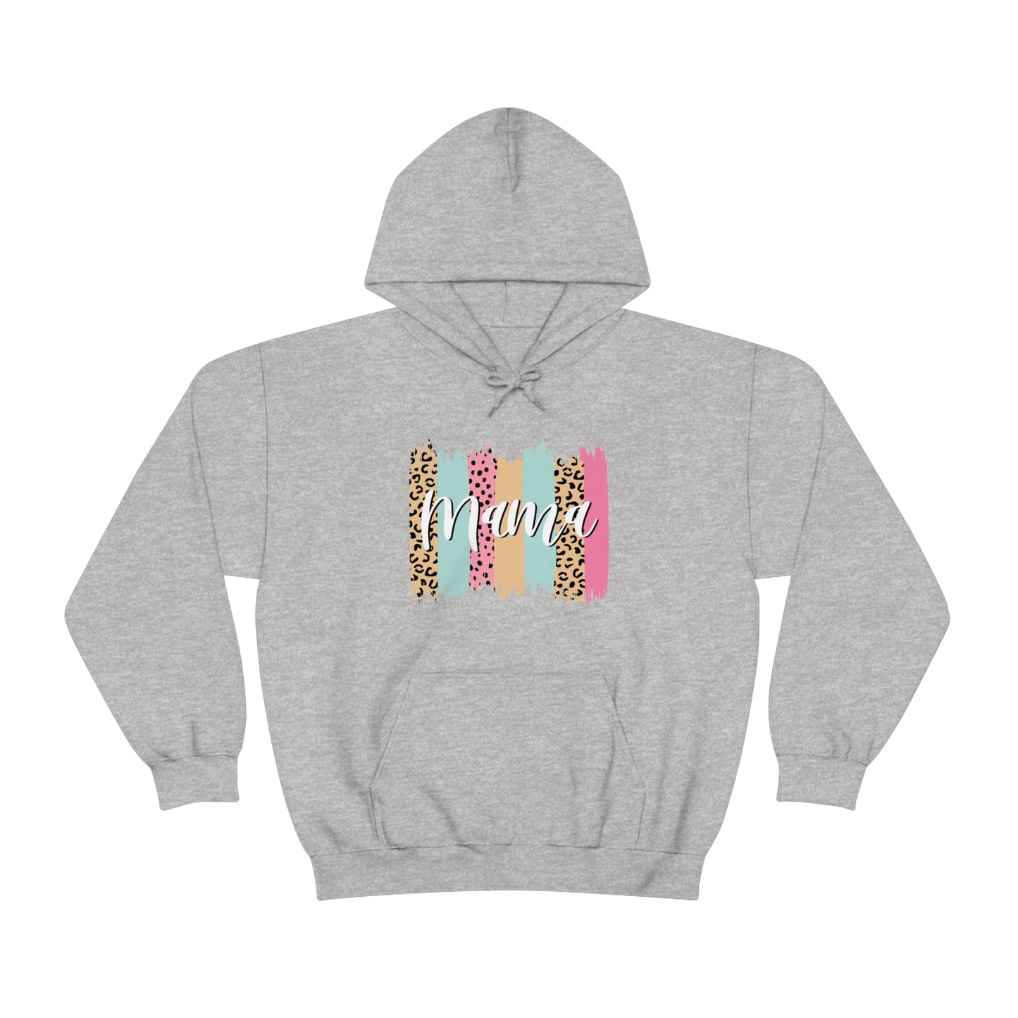 This unisex heavy blend hooded sweatshirt is relaxation itself. Made with a thick blend of cotton and polyester, it feels plush, soft and warm, a perfect choice for any cold day. In the front, the spacious kangaroo pocket adds daily practicality while the hood's drawstring is the same color as the base sweater for extra style points. Chill Stitch – Leopard Paint Strokes Mama - Unisex Hooded Hoodie Sweatshirt – Embrace Your Vibe