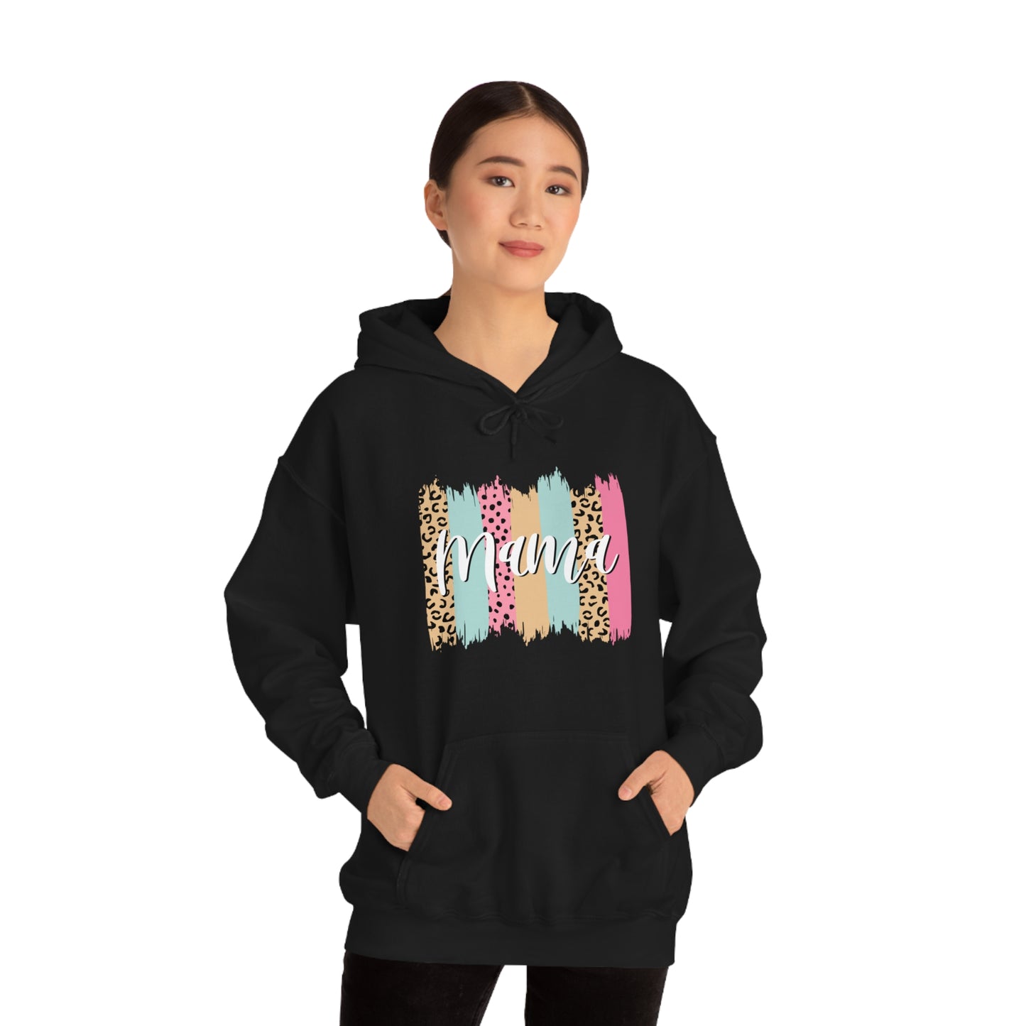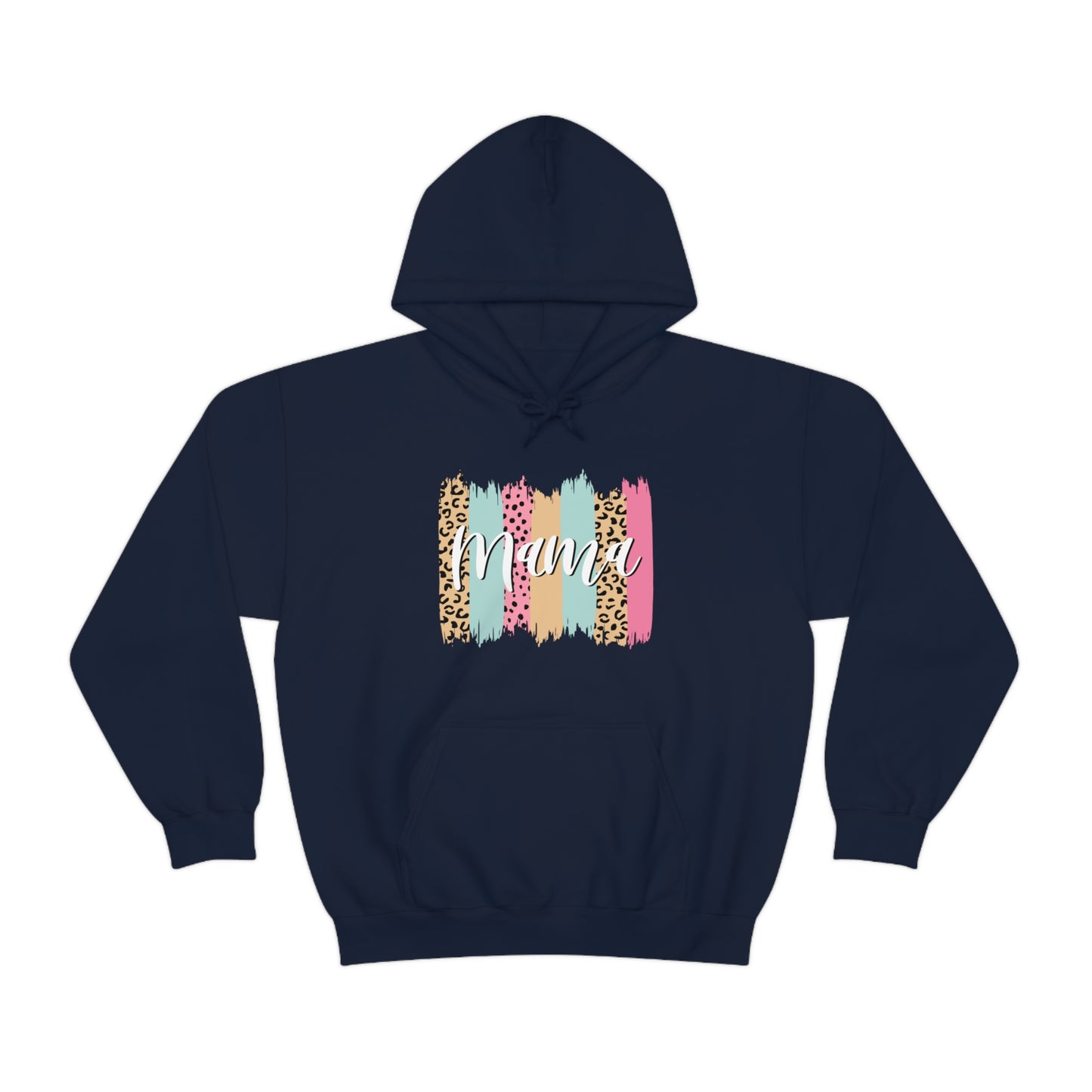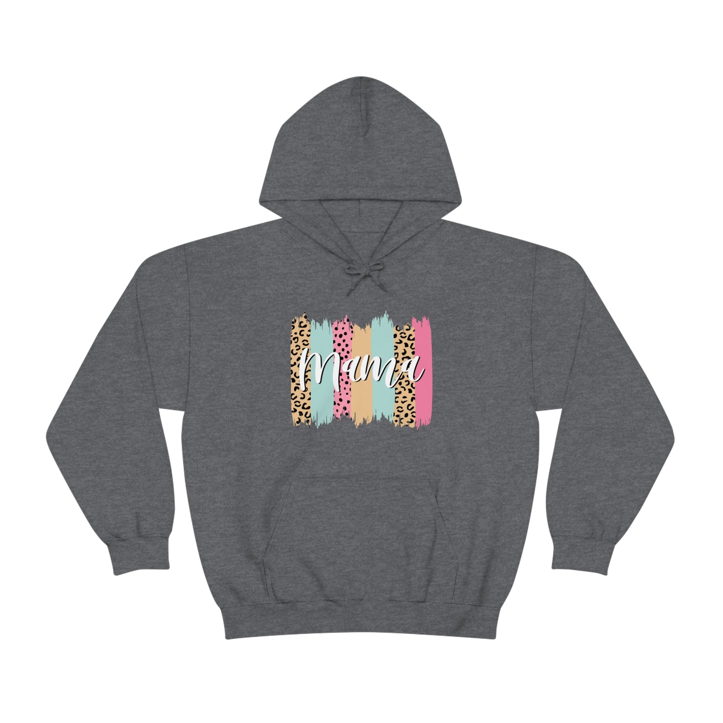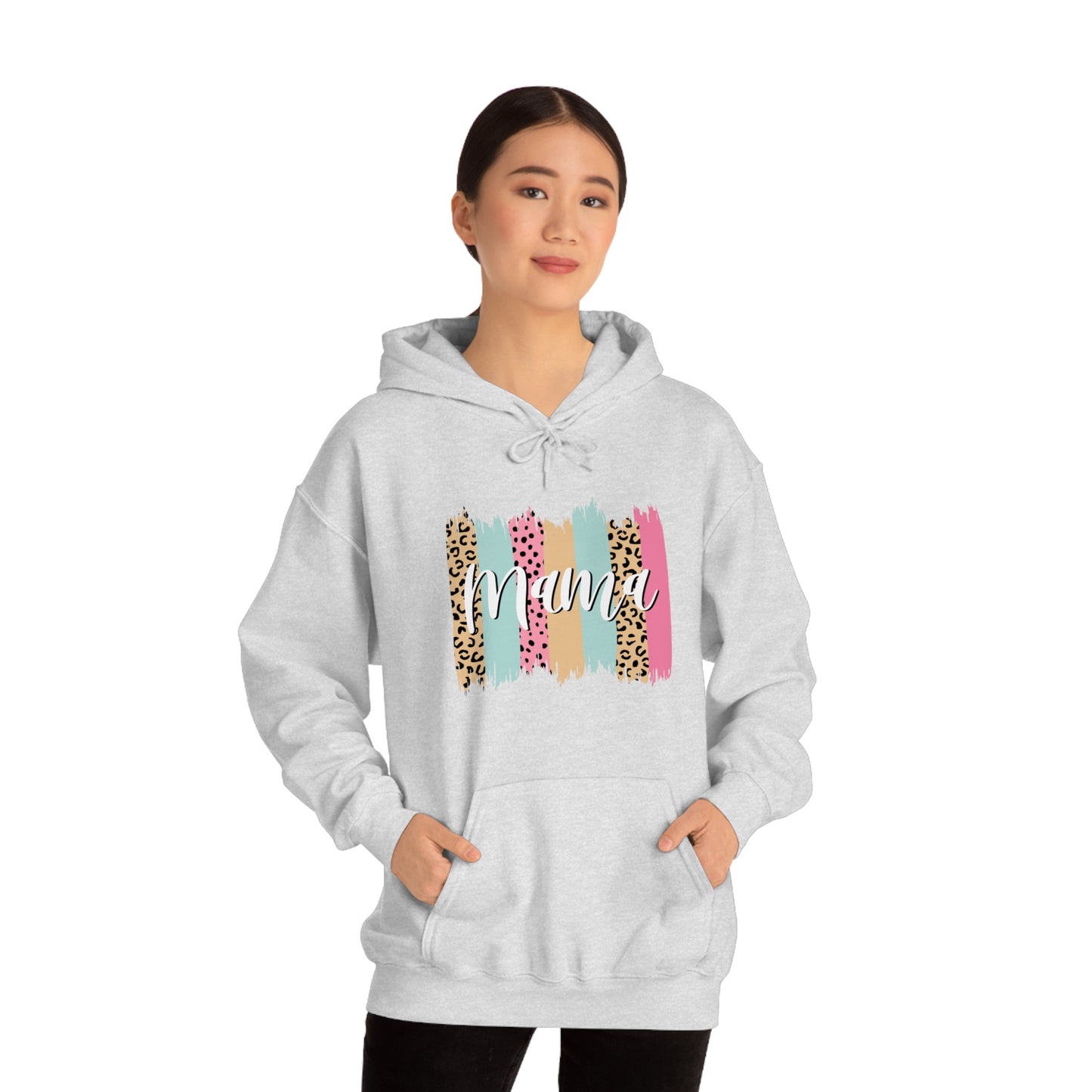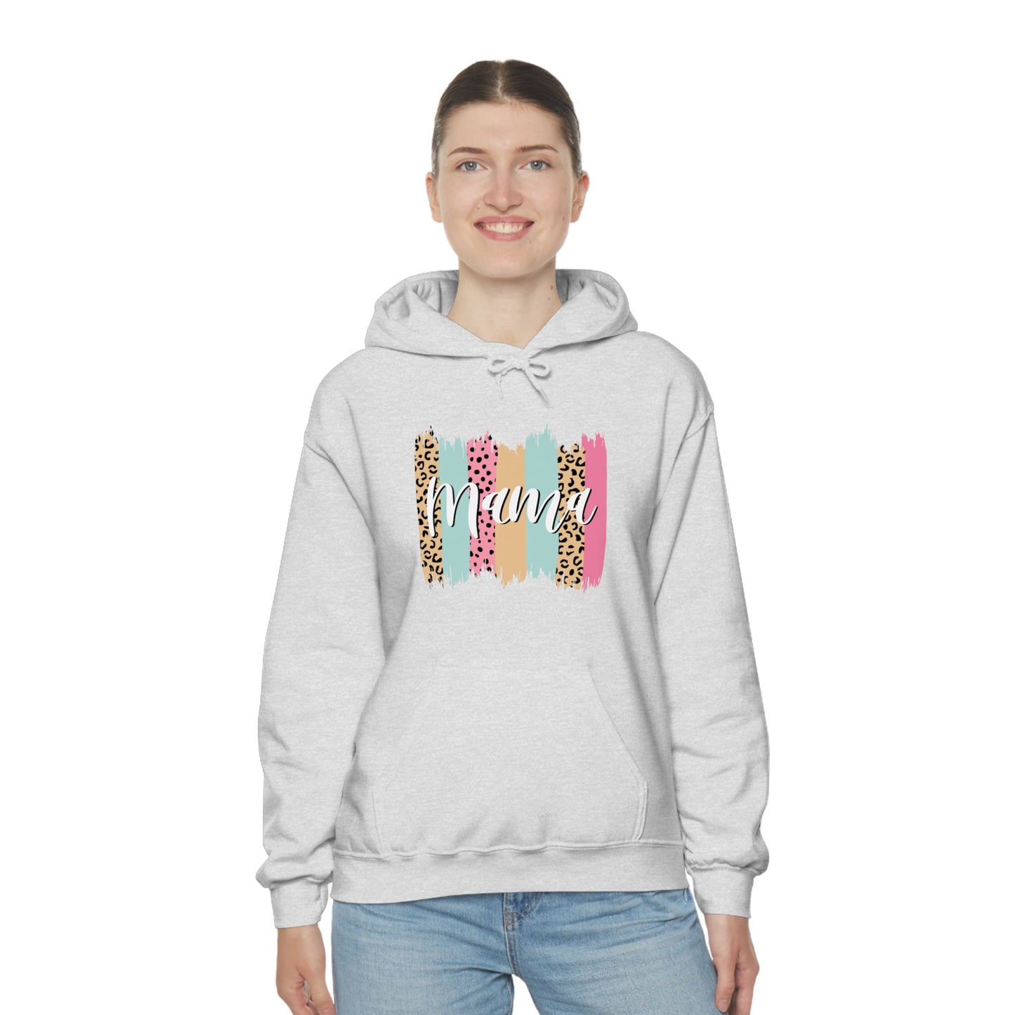 This unisex heavy blend hooded sweatshirt is relaxation itself. Made with a thick blend of cotton and polyester, it feels plush, soft and warm, a perfect choice for any cold day. In the front, the spacious kangaroo pocket adds daily practicality while the hood's drawstring is the same color as the base sweater for extra style points. Chill Stitch – Leopard Paint Strokes Mama - Unisex Hooded Hoodie Sweatshirt – Embrace Your Vibe