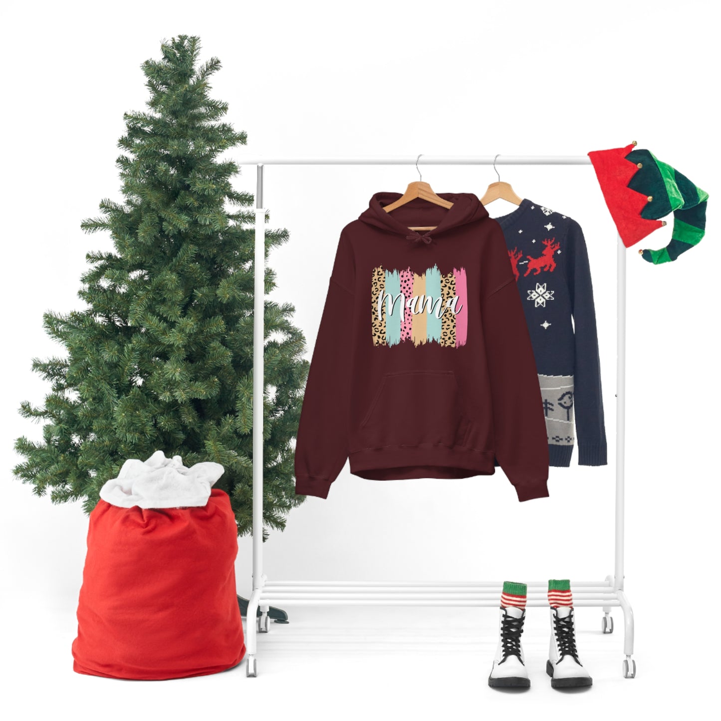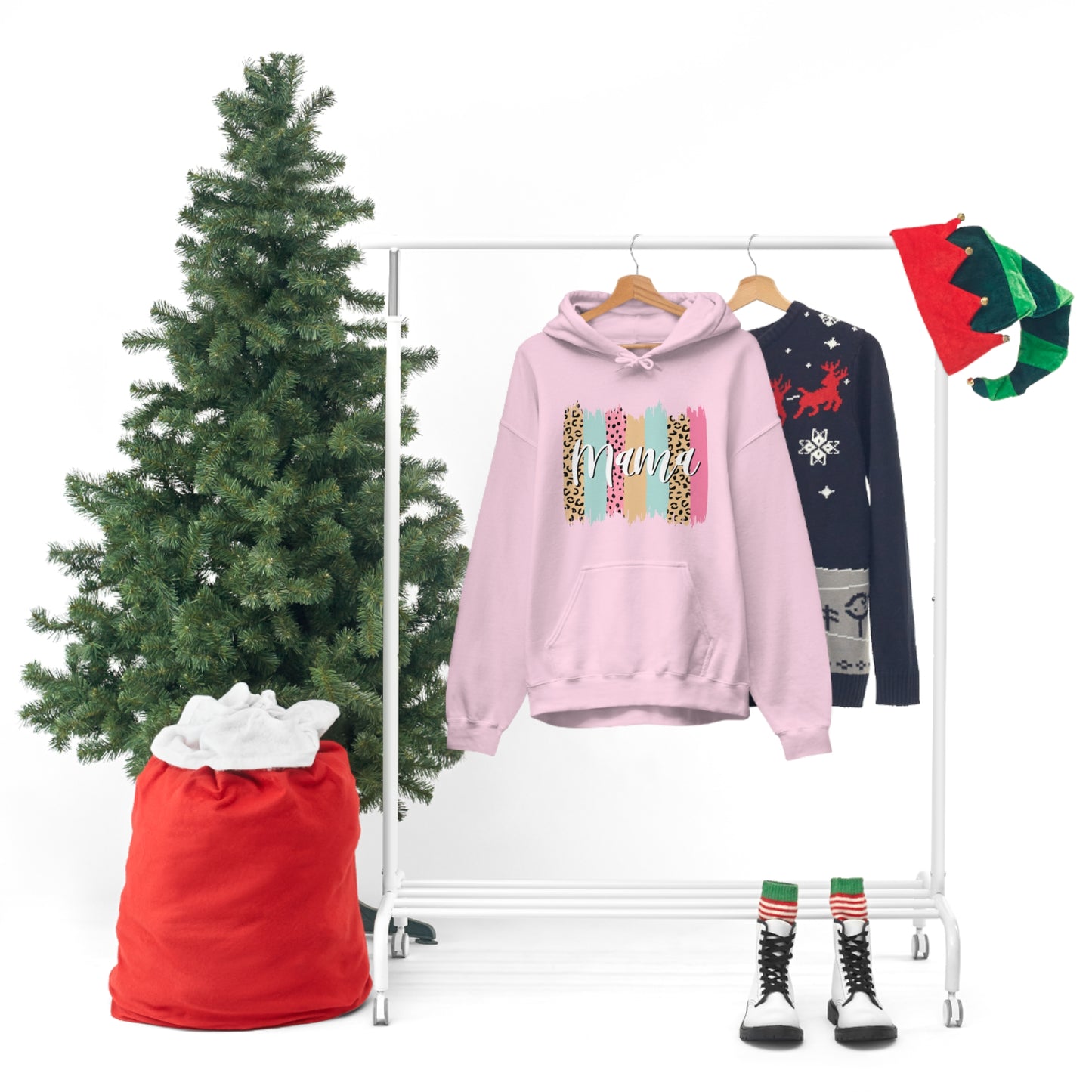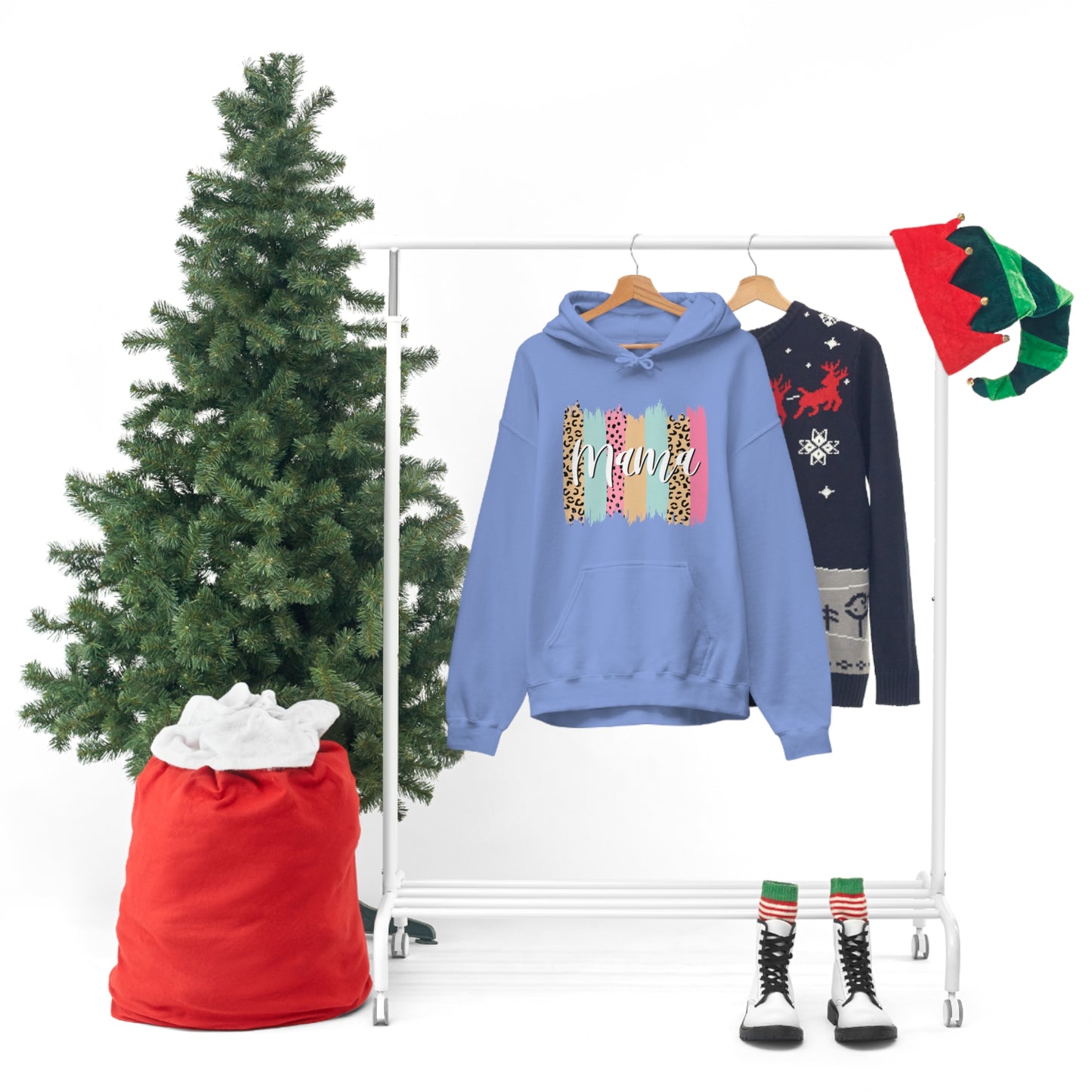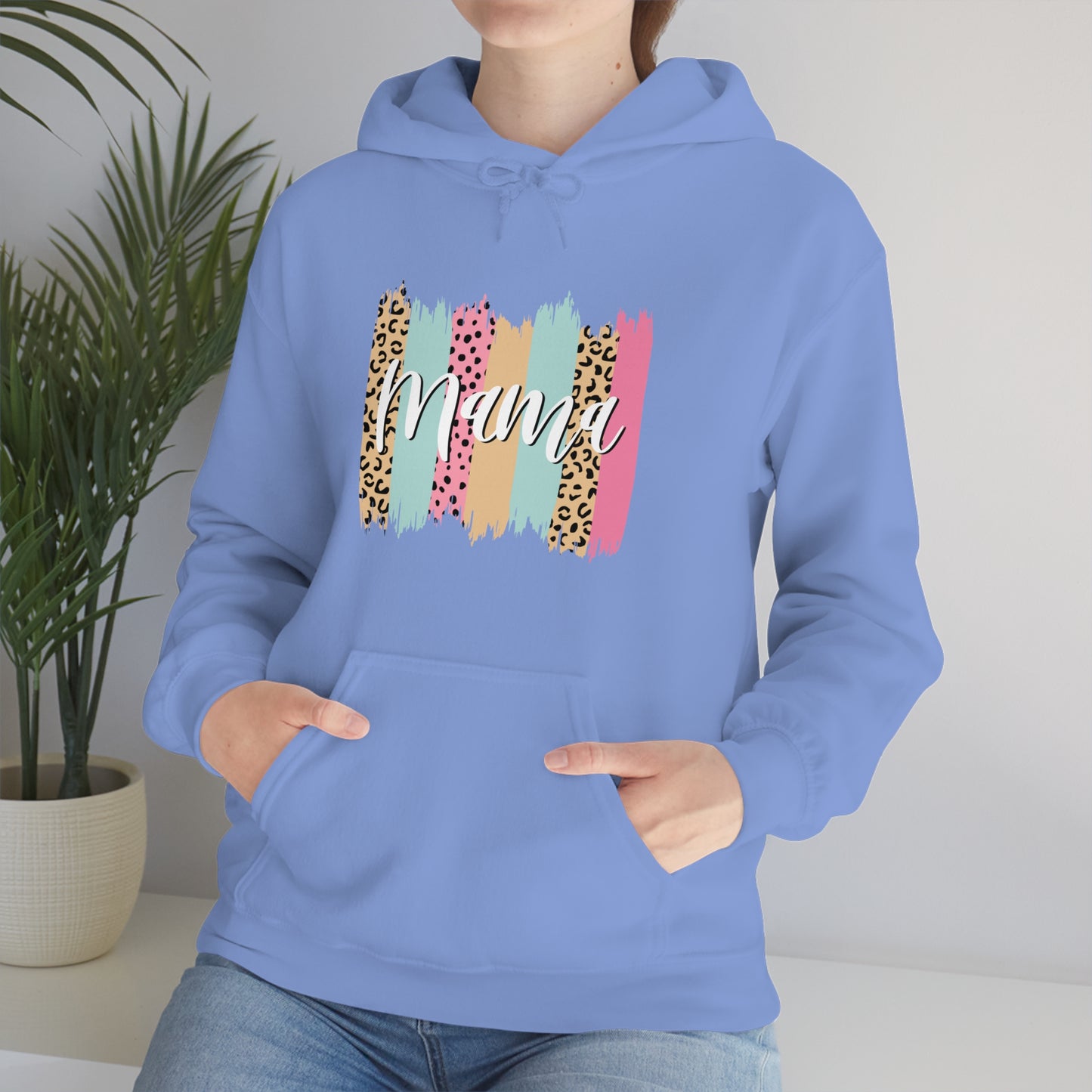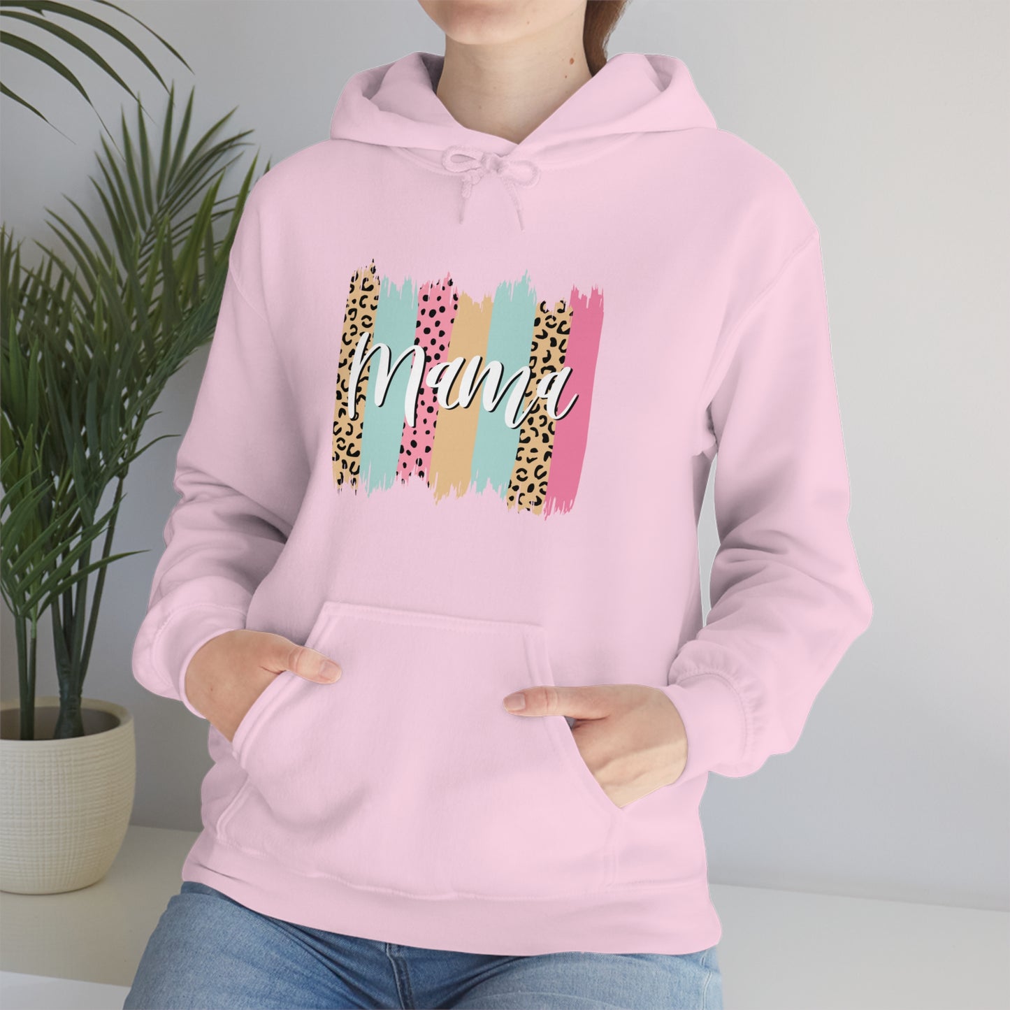 This unisex heavy blend hooded sweatshirt is relaxation itself. Made with a thick blend of cotton and polyester, it feels plush, soft and warm, a perfect choice for any cold day. In the front, the spacious kangaroo pocket adds daily practicality while the hood's drawstring is the same color as the base sweater for extra style points. Chill Stitch – Leopard Paint Strokes Mama - Unisex Hooded Hoodie Sweatshirt – Embrace Your Vibe