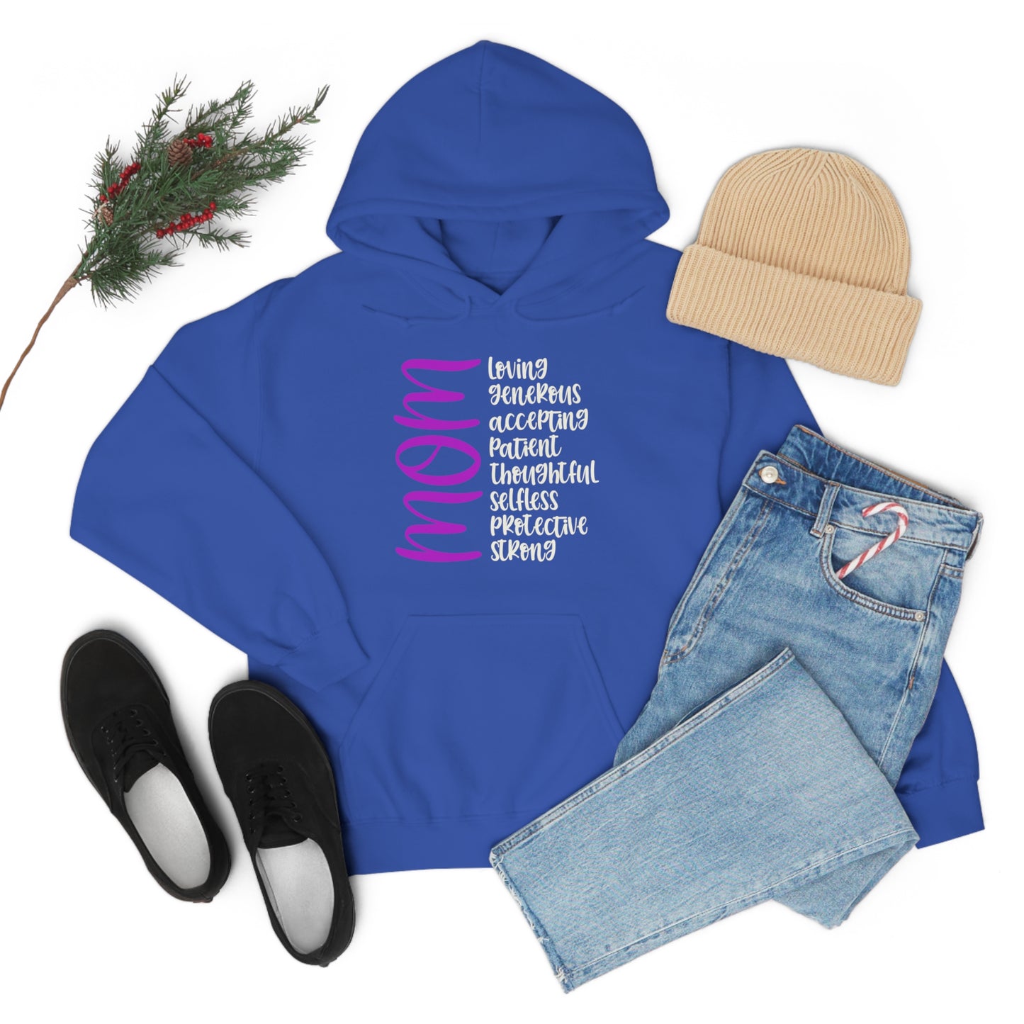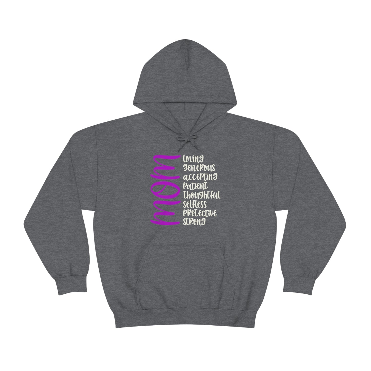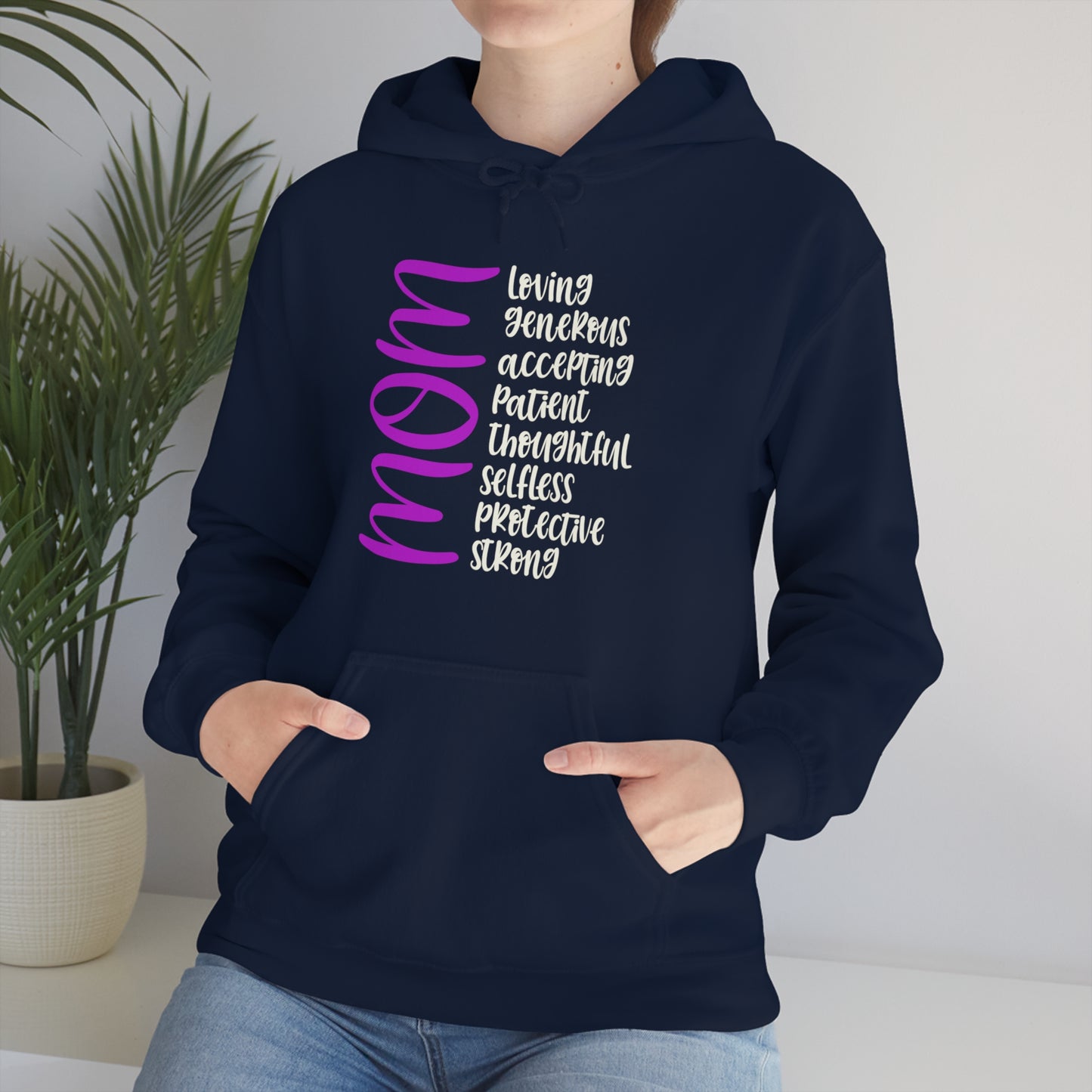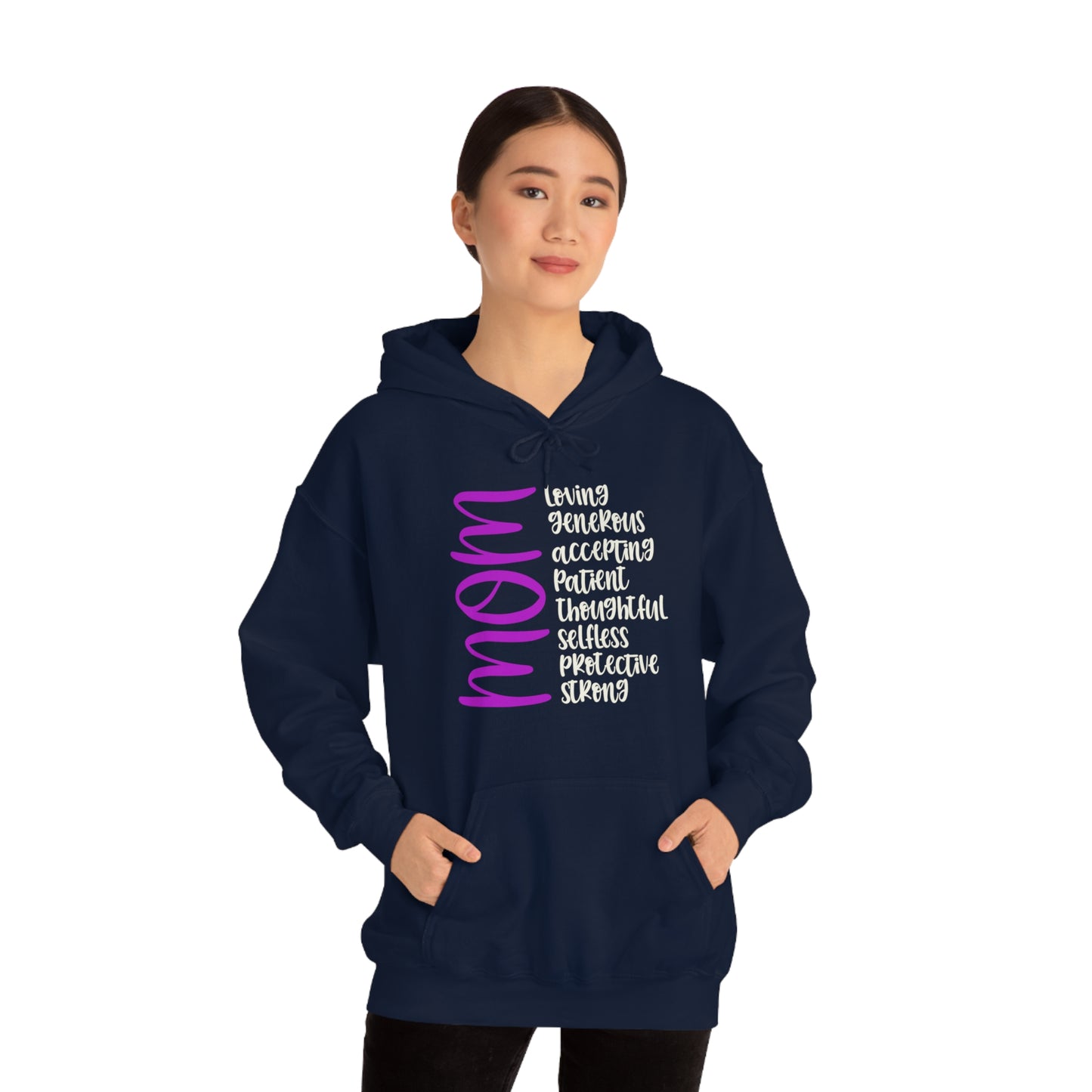 This unisex heavy blend hooded sweatshirt is relaxation itself. Made with a thick blend of cotton and polyester, it feels plush, soft and warm, a perfect choice for any cold day. In the front, the spacious kangaroo pocket adds daily practicality while the hood's drawstring is the same color as the base sweater for extra style points. Chill Stitch – Mom Descriptions Flow - Unisex Hooded Hoodie Sweatshirt – Embrace Your Vibe