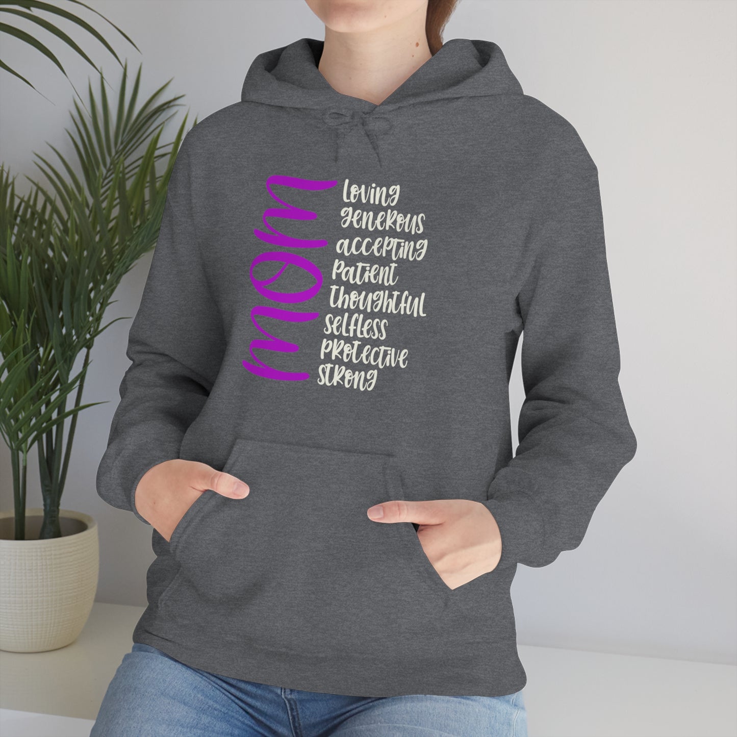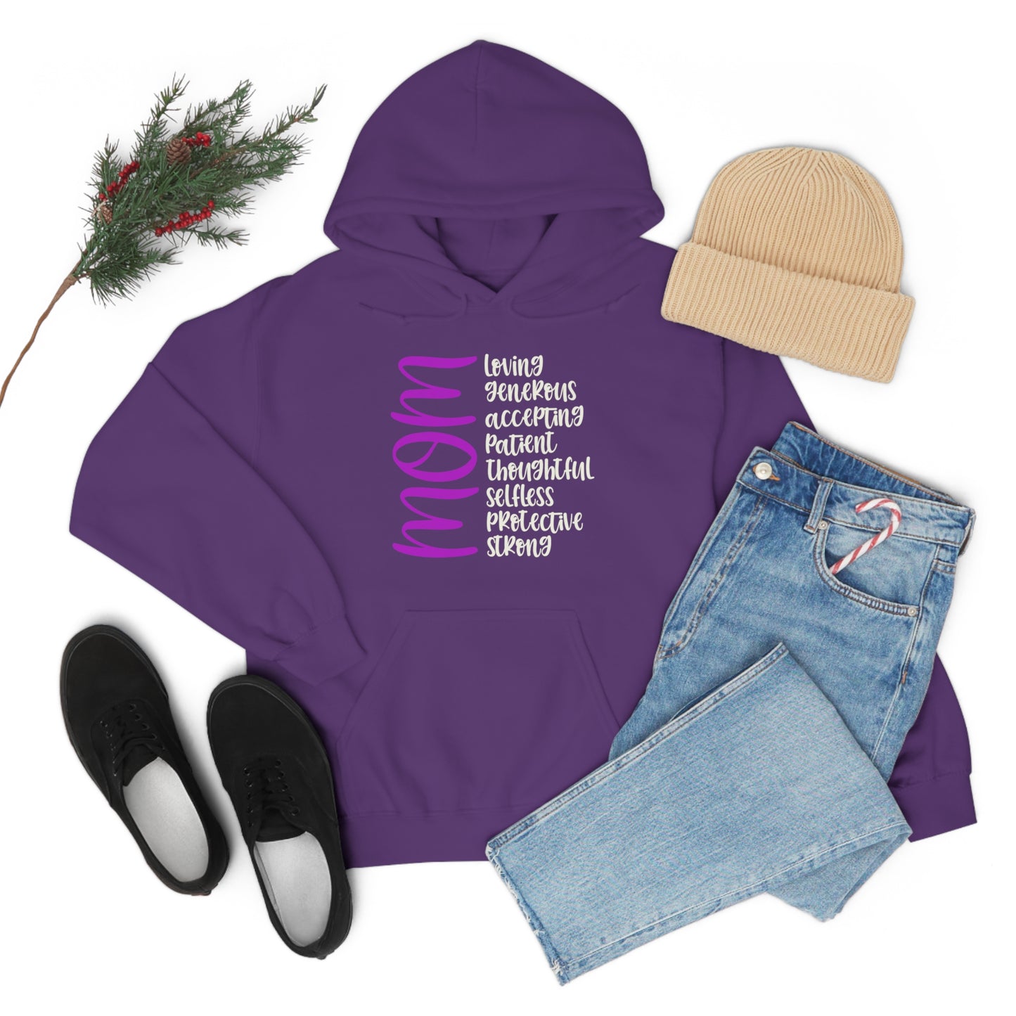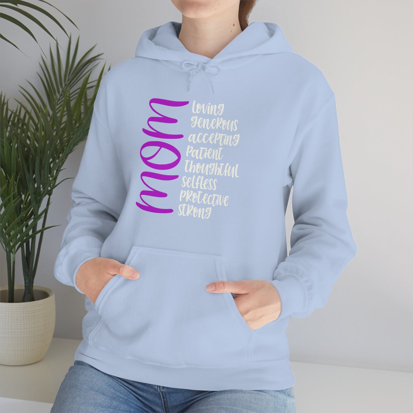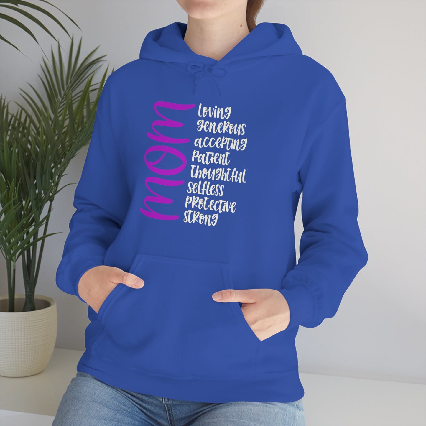 This unisex heavy blend hooded sweatshirt is relaxation itself. Made with a thick blend of cotton and polyester, it feels plush, soft and warm, a perfect choice for any cold day. In the front, the spacious kangaroo pocket adds daily practicality while the hood's drawstring is the same color as the base sweater for extra style points. Chill Stitch – Mom Descriptions Flow - Unisex Hooded Hoodie Sweatshirt – Embrace Your Vibe