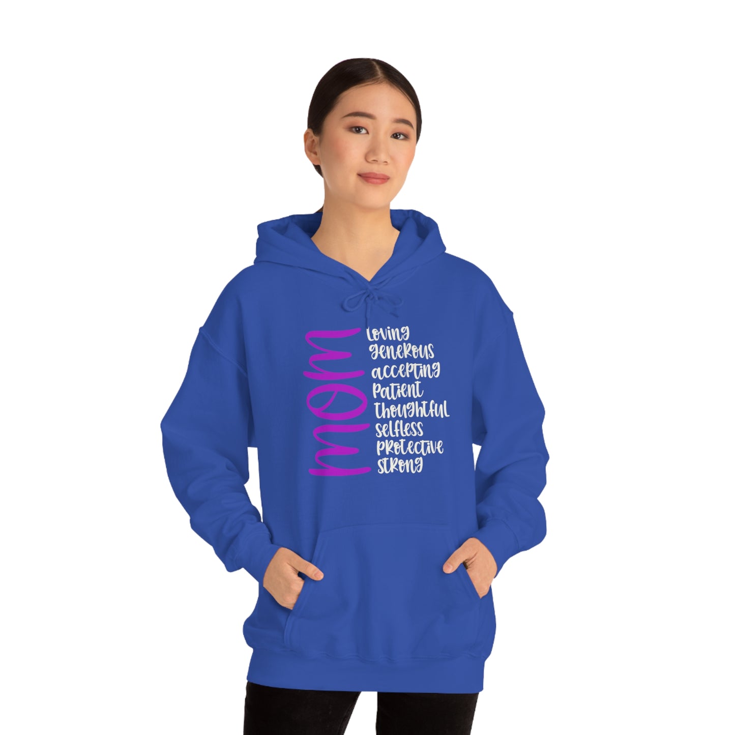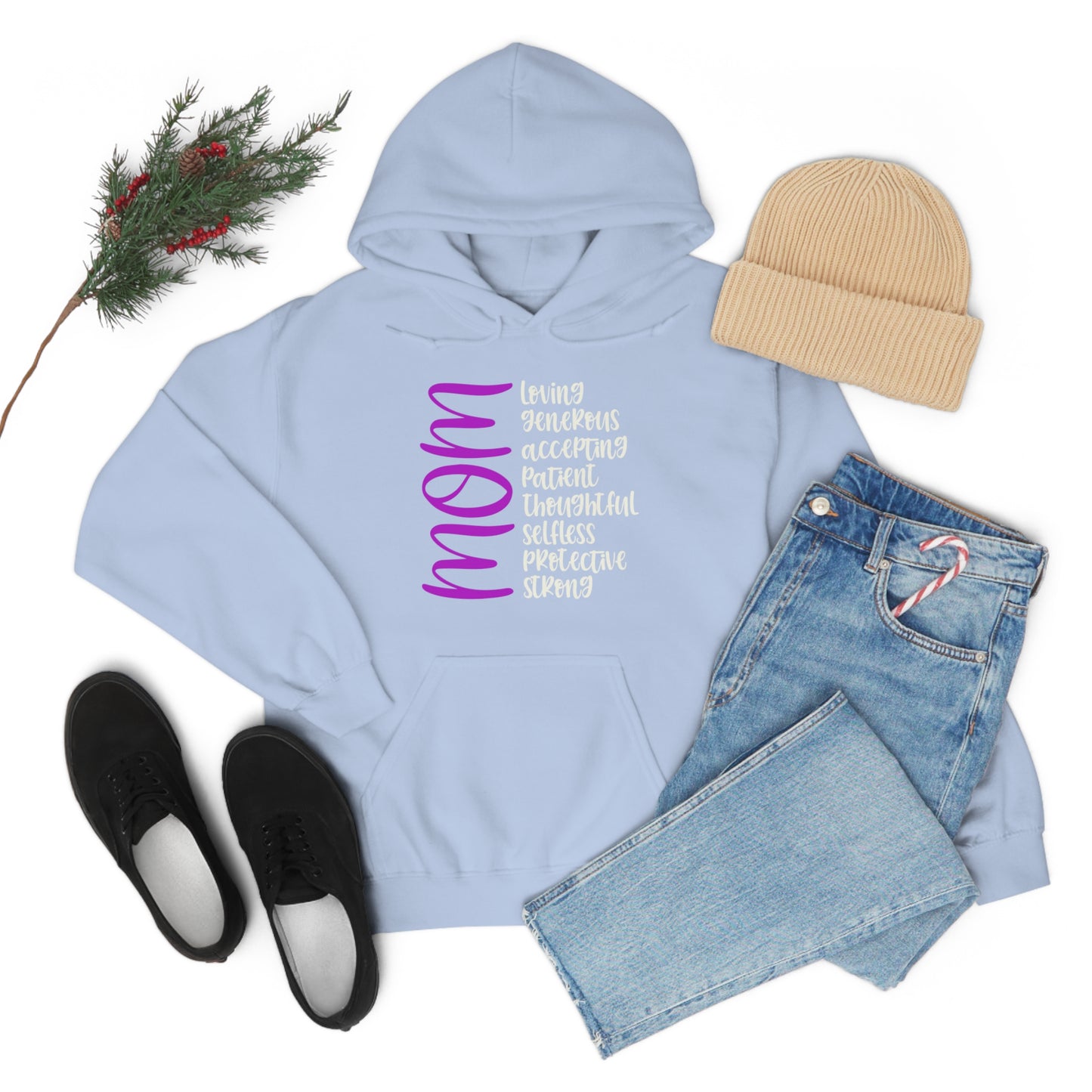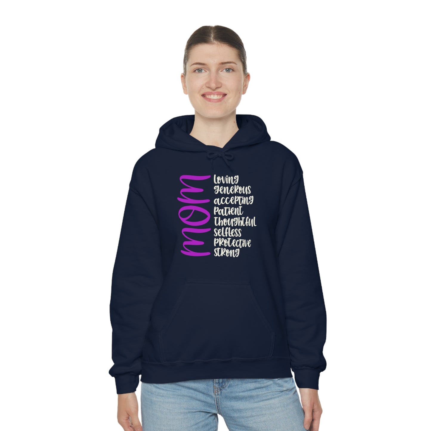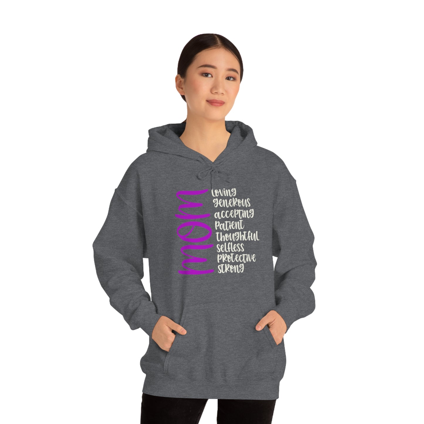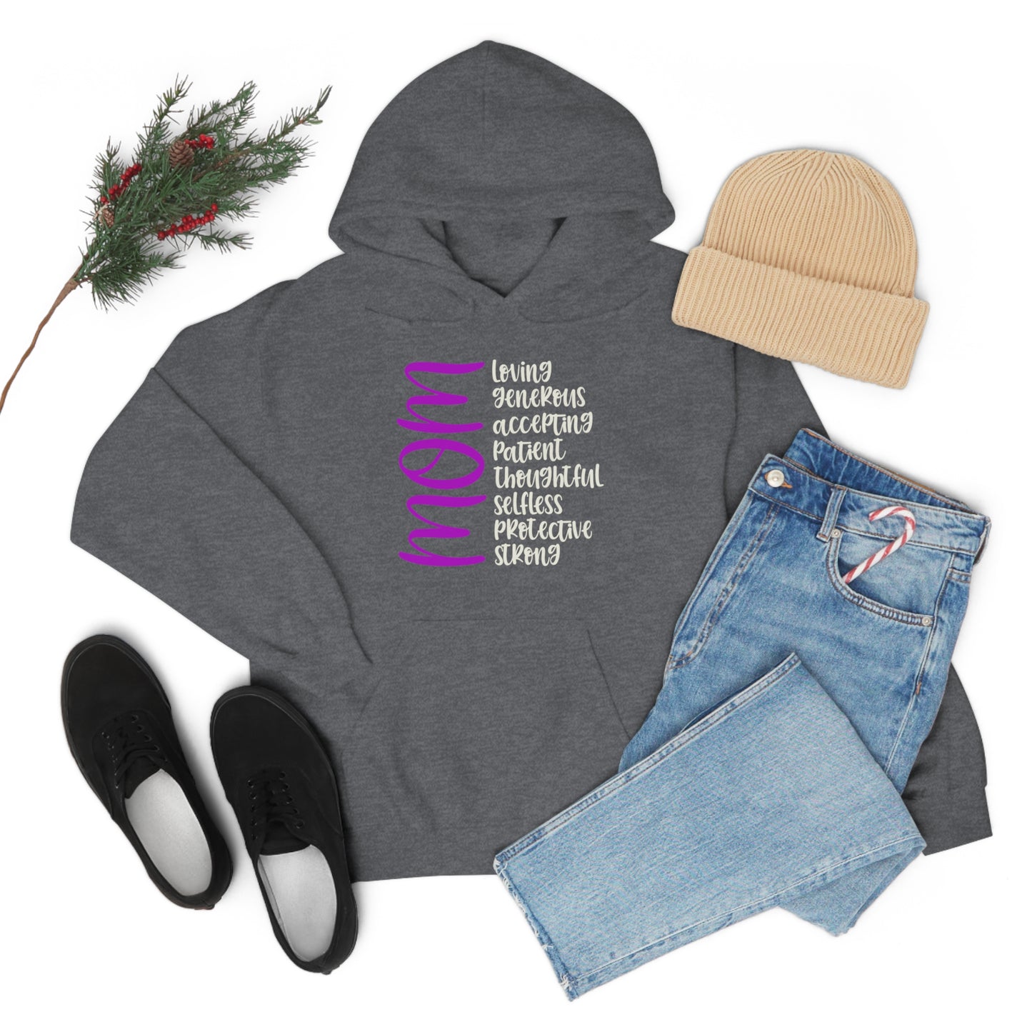 This unisex heavy blend hooded sweatshirt is relaxation itself. Made with a thick blend of cotton and polyester, it feels plush, soft and warm, a perfect choice for any cold day. In the front, the spacious kangaroo pocket adds daily practicality while the hood's drawstring is the same color as the base sweater for extra style points. Chill Stitch – Mom Descriptions Flow - Unisex Hooded Hoodie Sweatshirt – Embrace Your Vibe