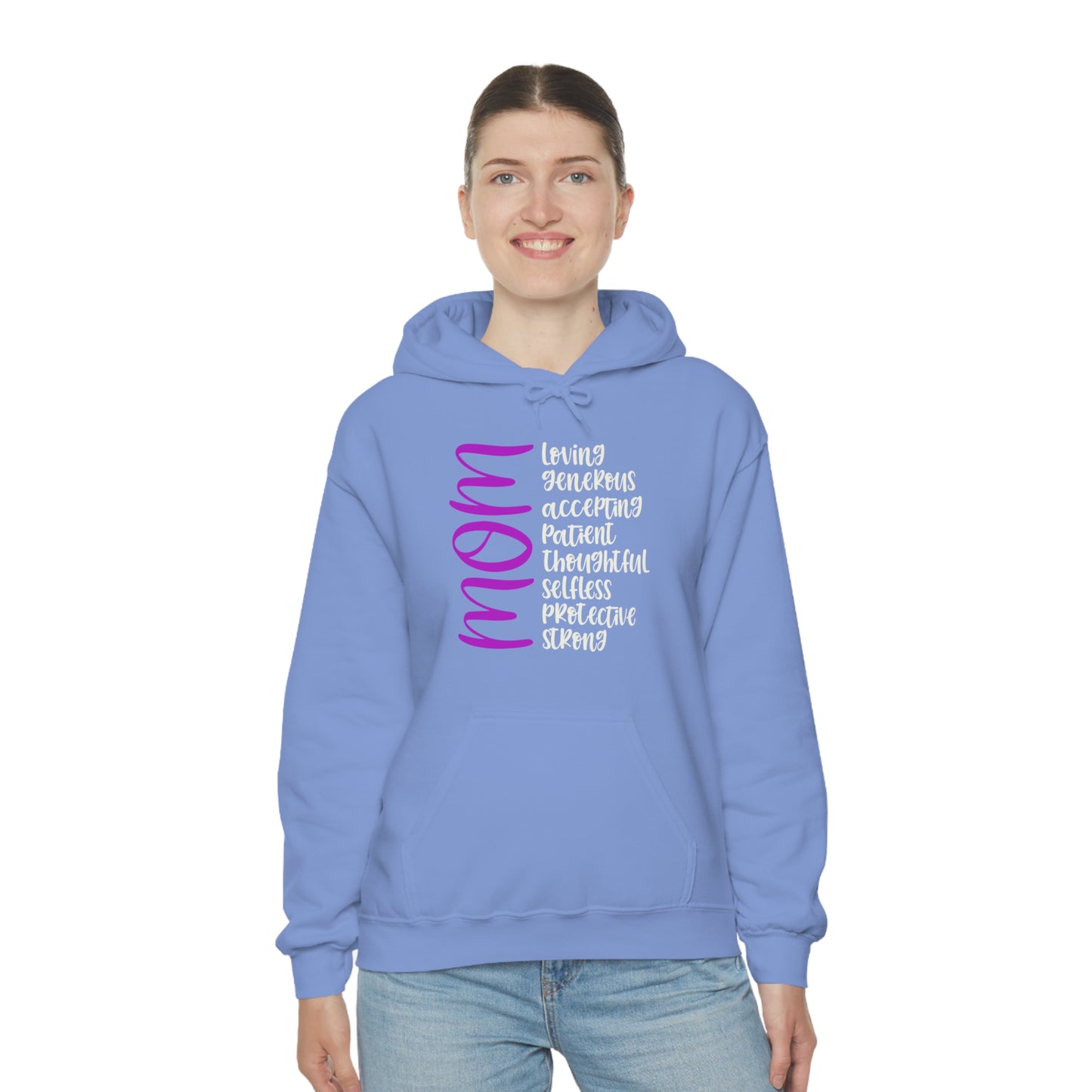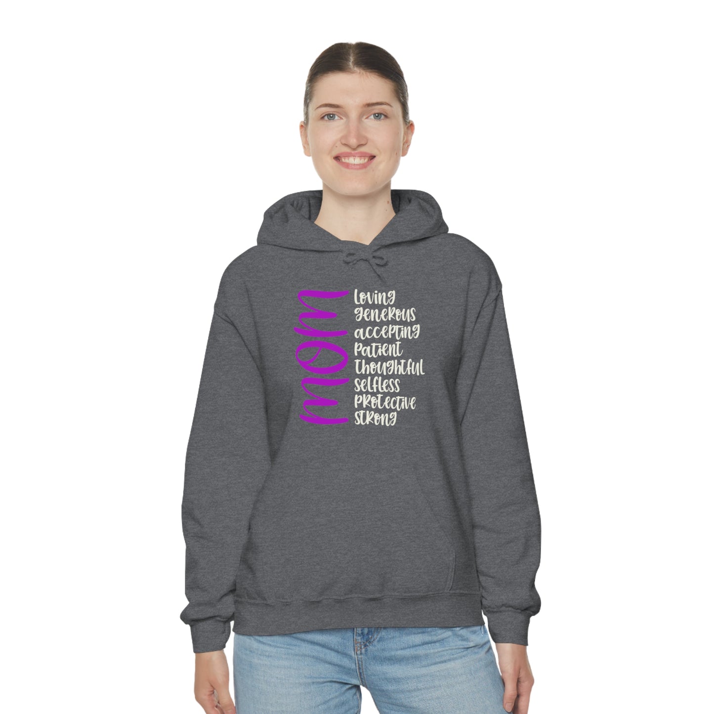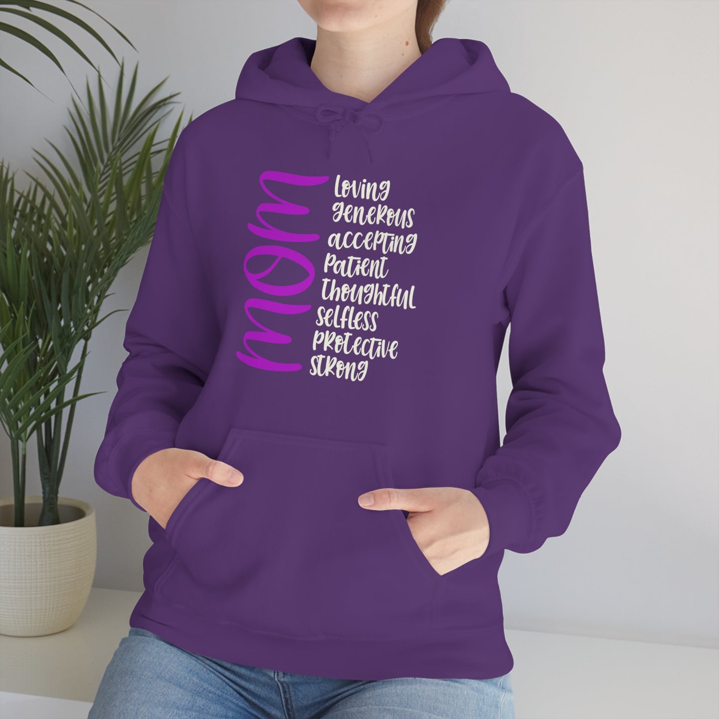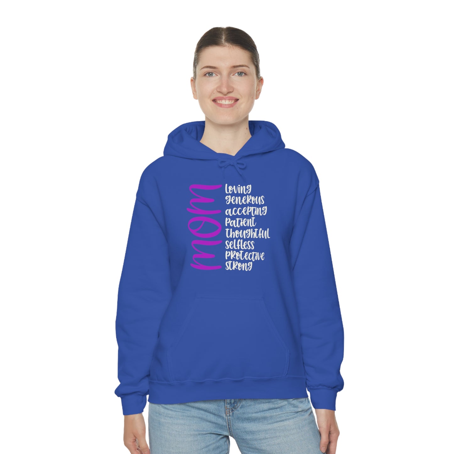 This unisex heavy blend hooded sweatshirt is relaxation itself. Made with a thick blend of cotton and polyester, it feels plush, soft and warm, a perfect choice for any cold day. In the front, the spacious kangaroo pocket adds daily practicality while the hood's drawstring is the same color as the base sweater for extra style points. Chill Stitch – Mom Descriptions Flow - Unisex Hooded Hoodie Sweatshirt – Embrace Your Vibe