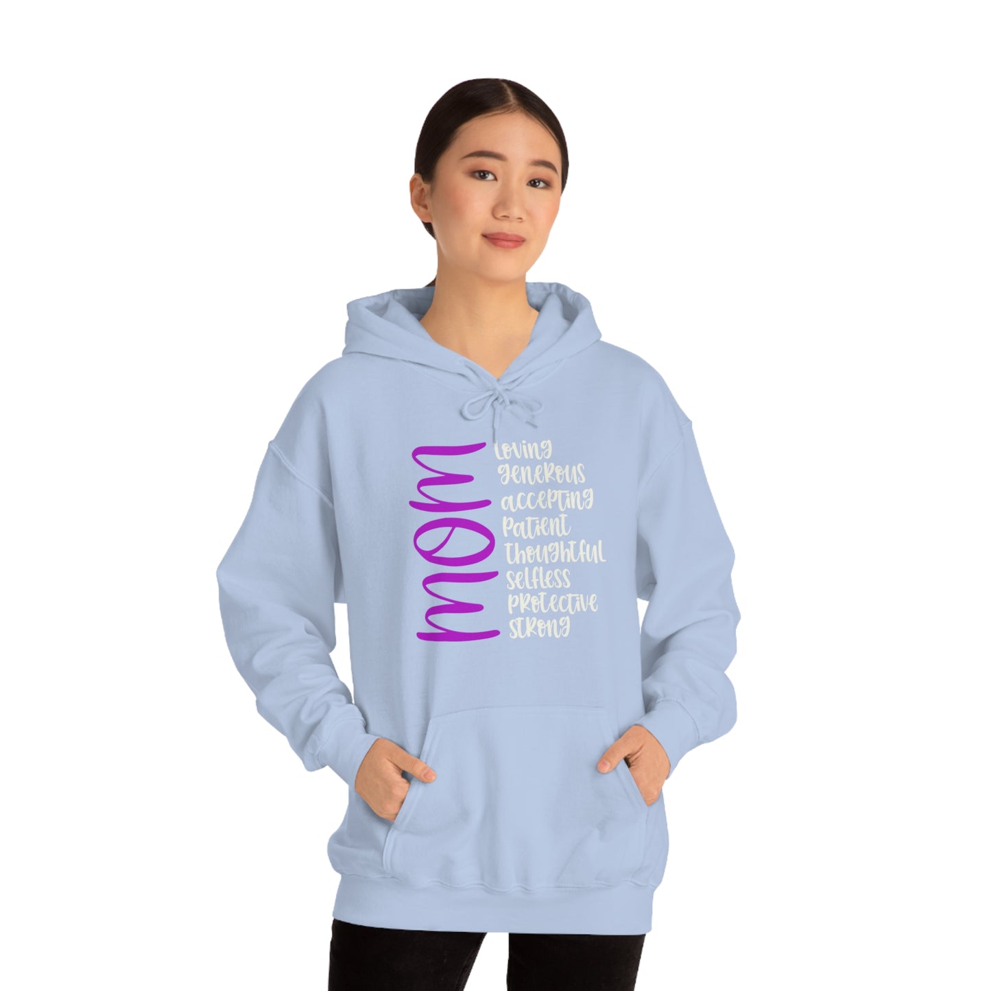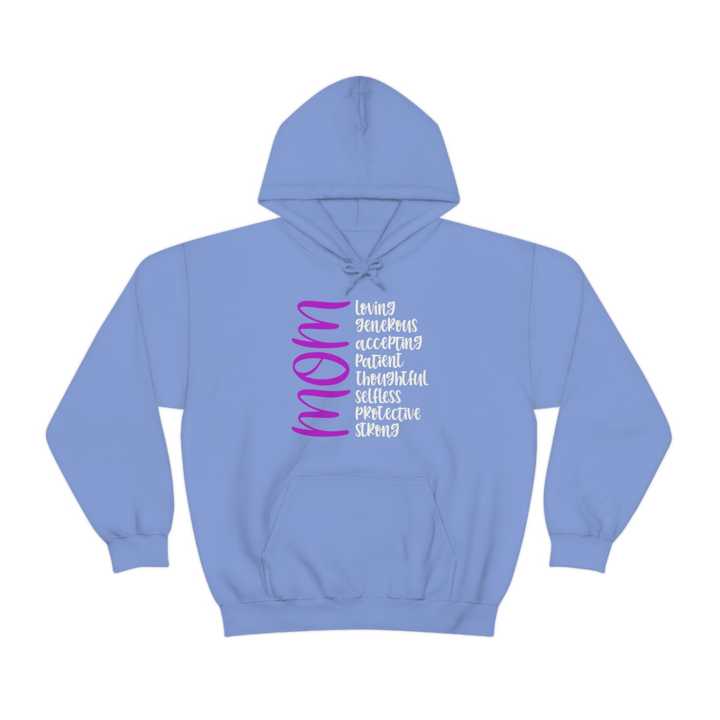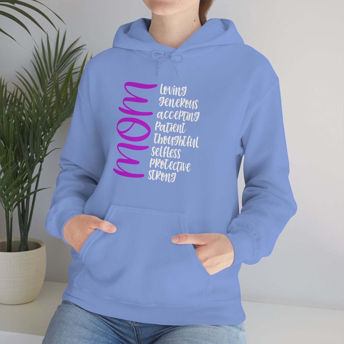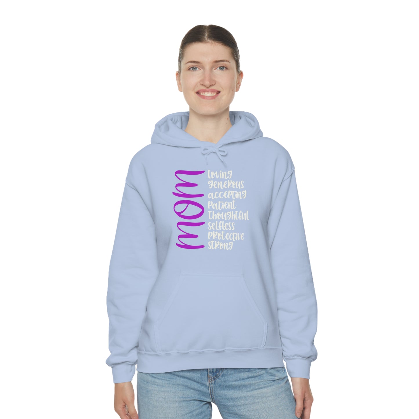 This unisex heavy blend hooded sweatshirt is relaxation itself. Made with a thick blend of cotton and polyester, it feels plush, soft and warm, a perfect choice for any cold day. In the front, the spacious kangaroo pocket adds daily practicality while the hood's drawstring is the same color as the base sweater for extra style points. Chill Stitch – Mom Descriptions Flow - Unisex Hooded Hoodie Sweatshirt – Embrace Your Vibe