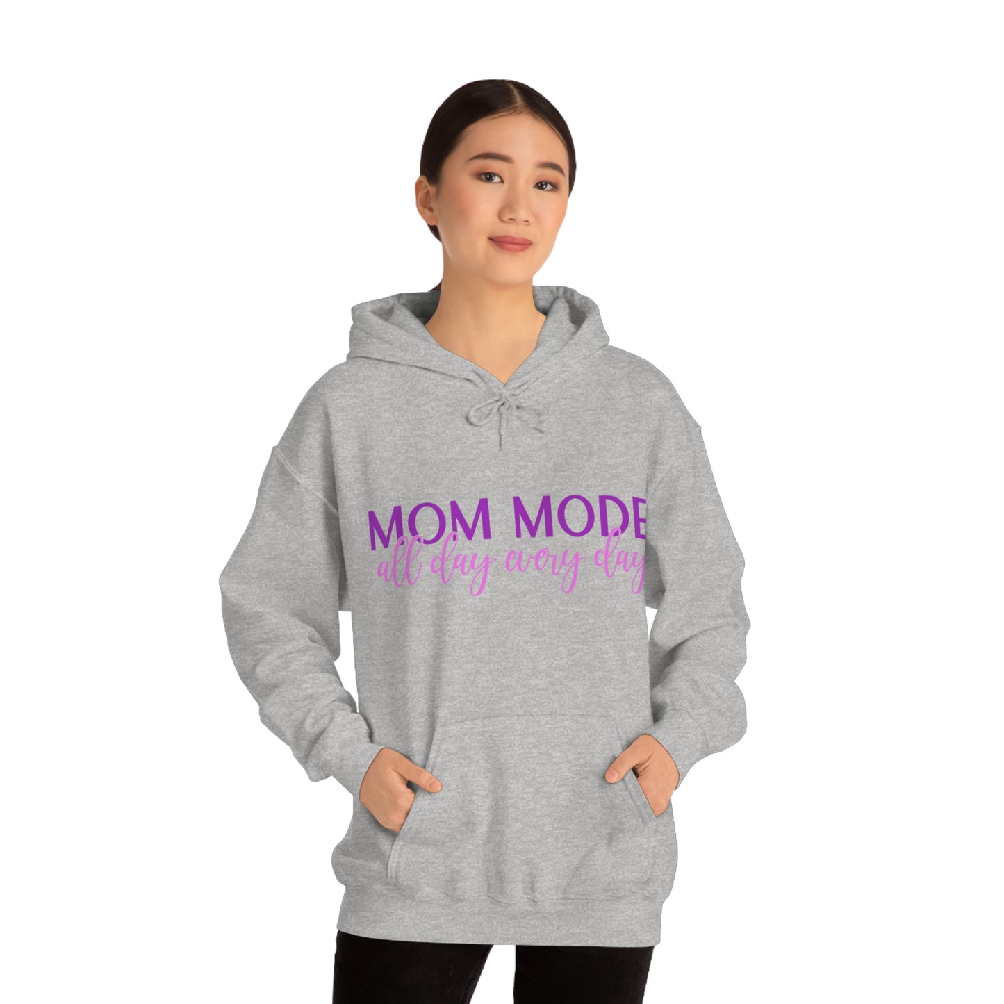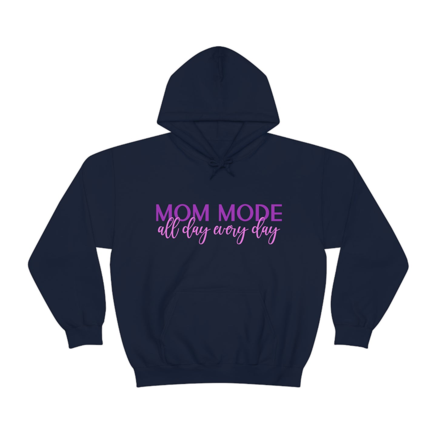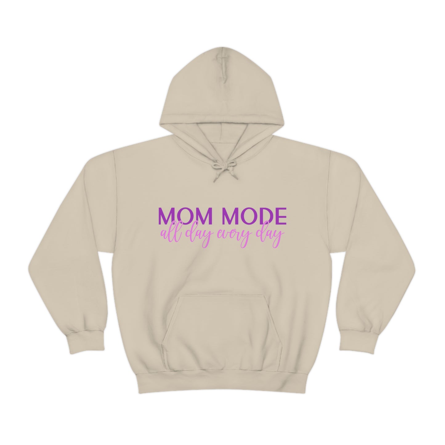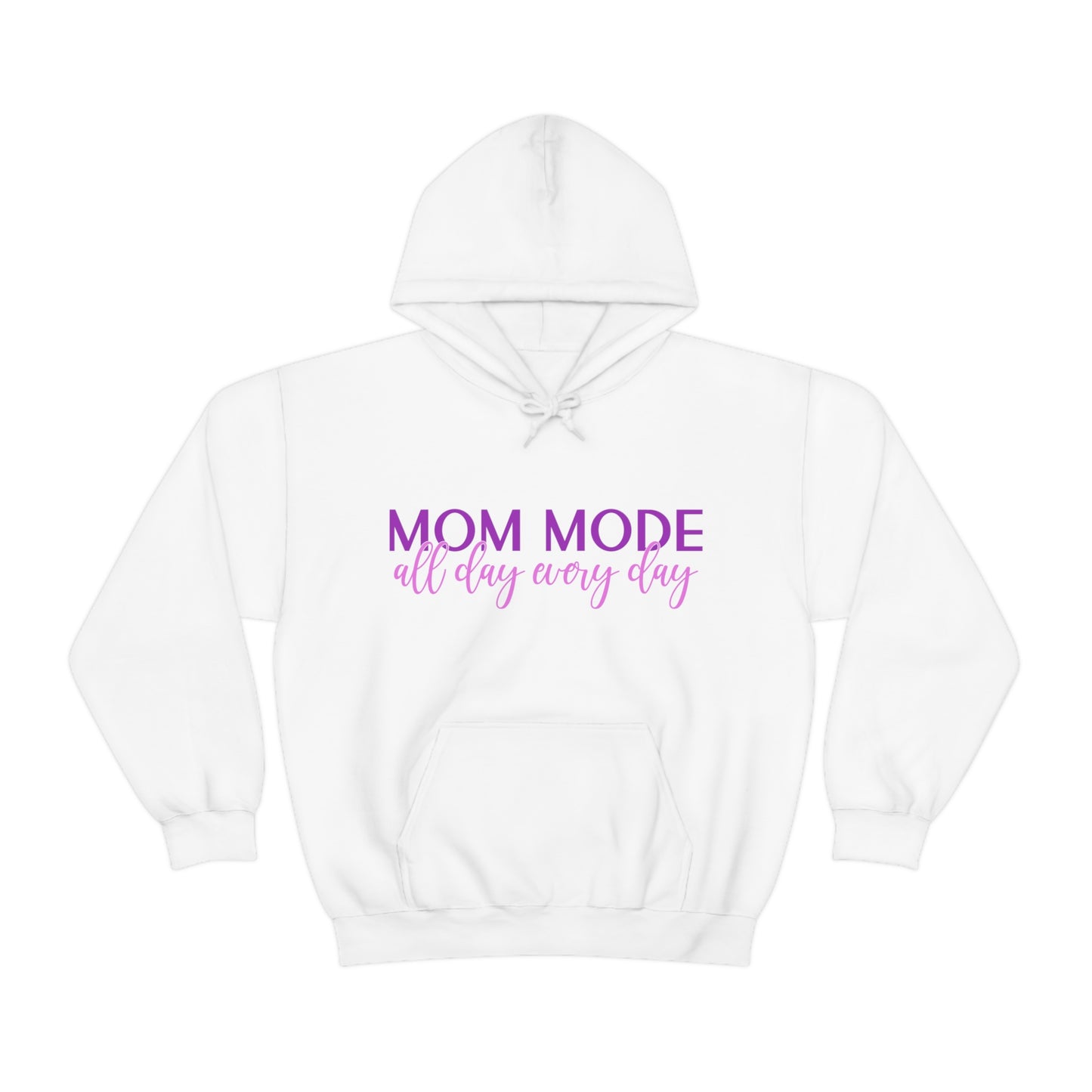 This unisex heavy blend hooded sweatshirt is relaxation itself. Made with a thick blend of cotton and polyester, it feels plush, soft and warm, a perfect choice for any cold day. In the front, the spacious kangaroo pocket adds daily practicality while the hood's drawstring is the same color as the base sweater for extra style points. Chill Stitch – Mom Mode All Day - Unisex Hooded Hoodie Sweatshirt – Embrace Your Vibe
