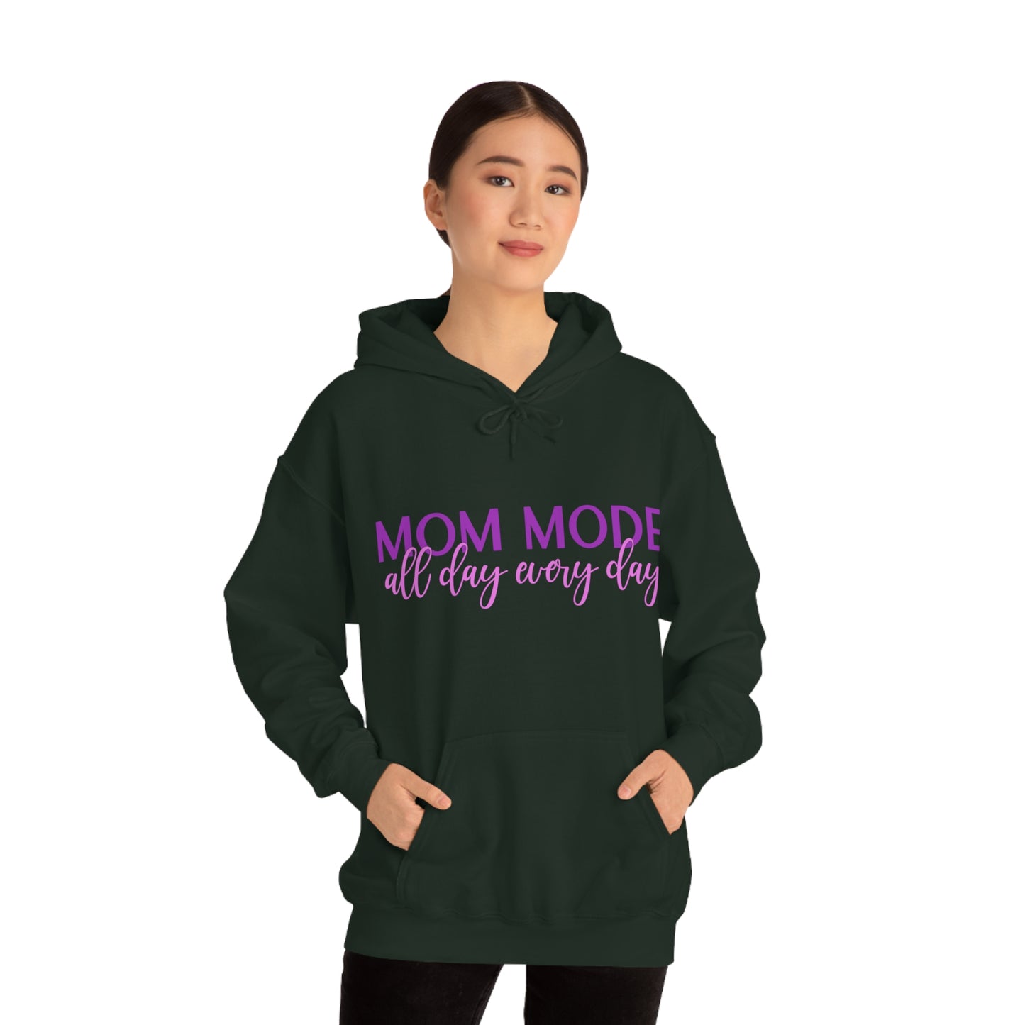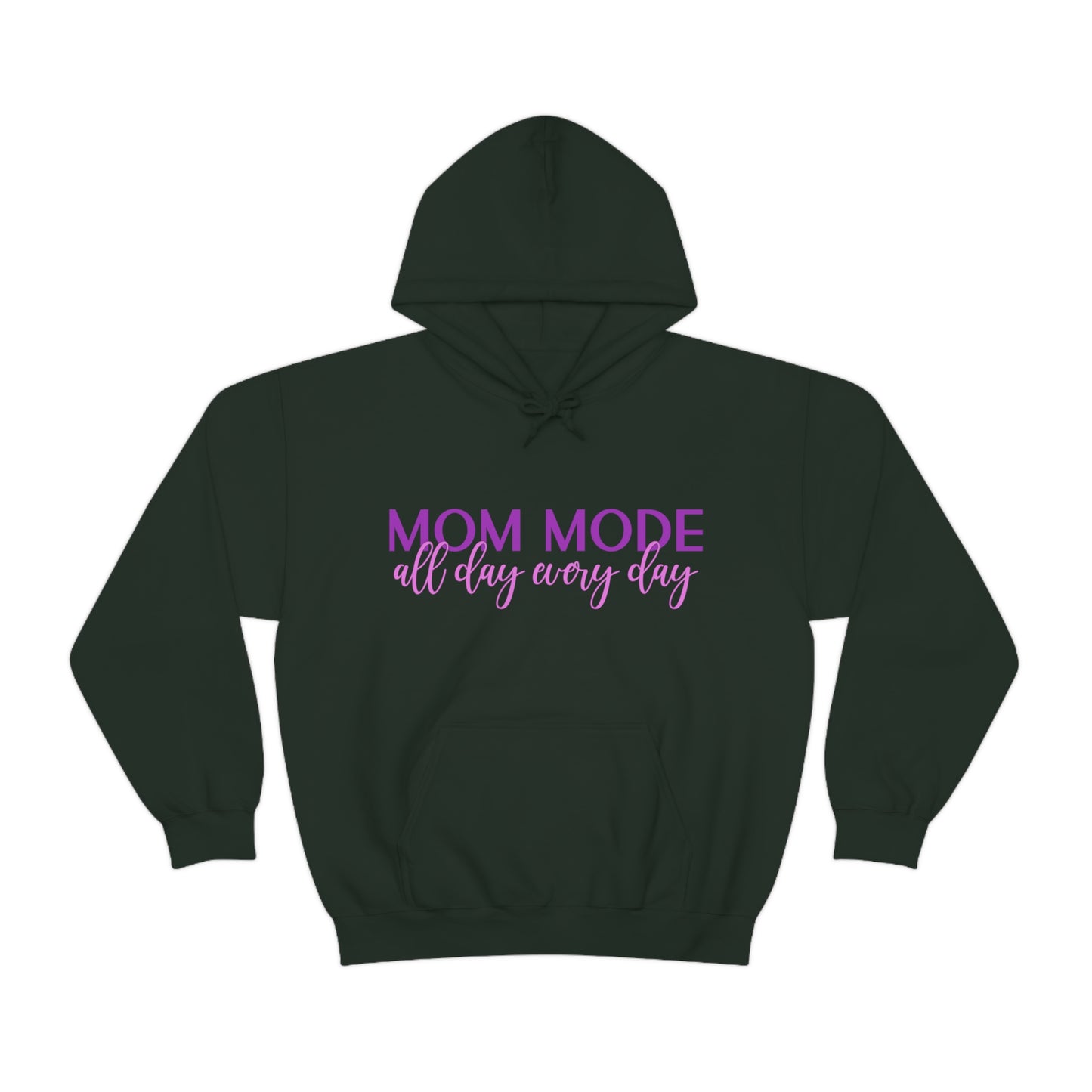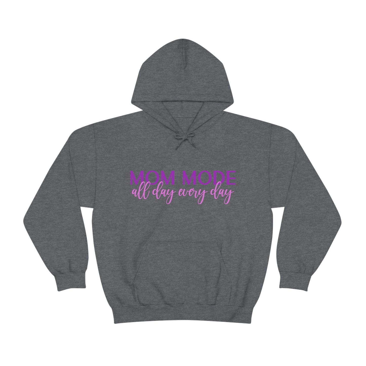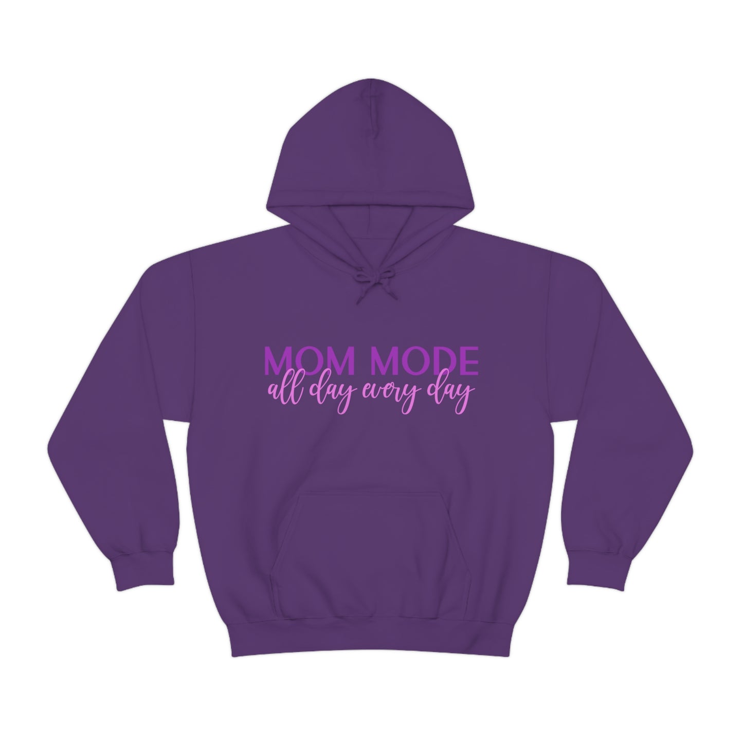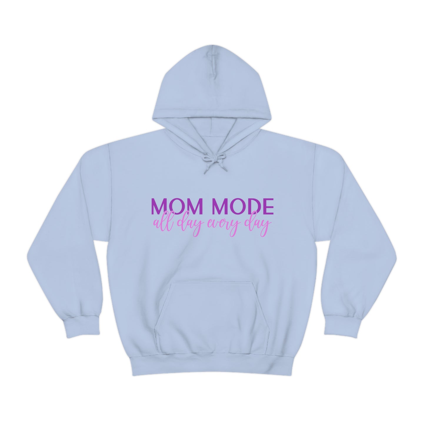 This unisex heavy blend hooded sweatshirt is relaxation itself. Made with a thick blend of cotton and polyester, it feels plush, soft and warm, a perfect choice for any cold day. In the front, the spacious kangaroo pocket adds daily practicality while the hood's drawstring is the same color as the base sweater for extra style points. Chill Stitch – Mom Mode All Day - Unisex Hooded Hoodie Sweatshirt – Embrace Your Vibe