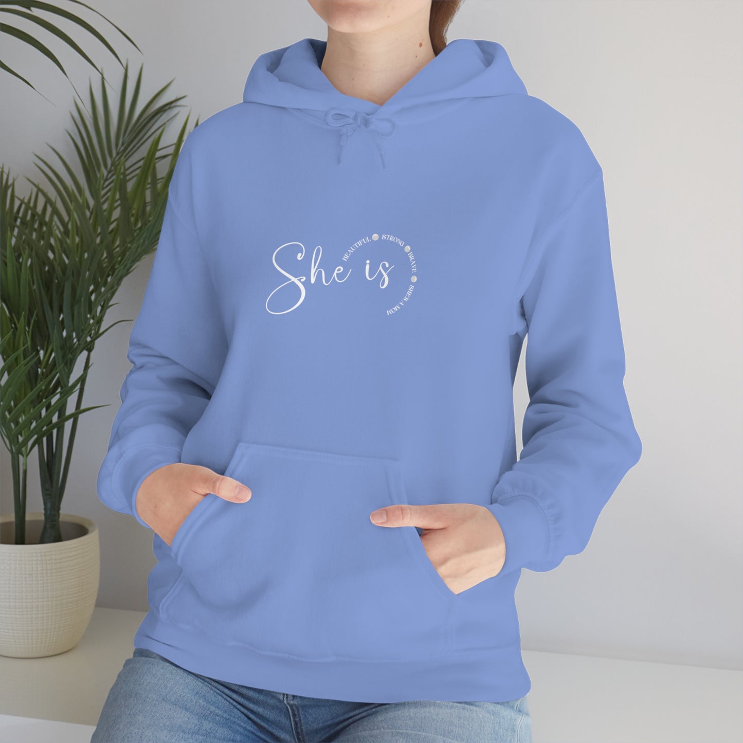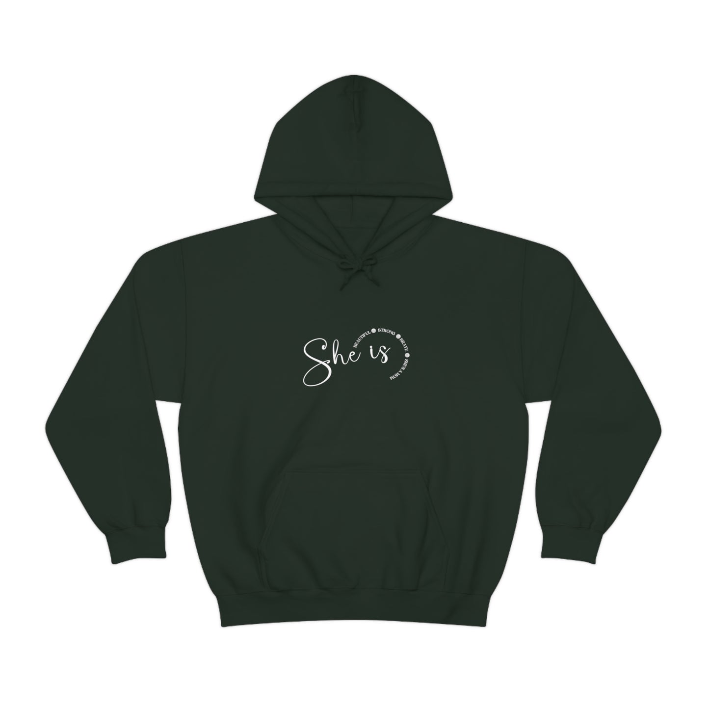 This unisex heavy blend hooded sweatshirt is relaxation itself. Made with a thick blend of cotton and polyester, it feels plush, soft and warm, a perfect choice for any cold day. In the front, the spacious kangaroo pocket adds daily practicality while the hood's drawstring is the same color as the base sweater for extra style points. Chill Stitch – She Is Mom - Unisex Hooded Hoodie Sweatshirt – Embrace Your Vibe