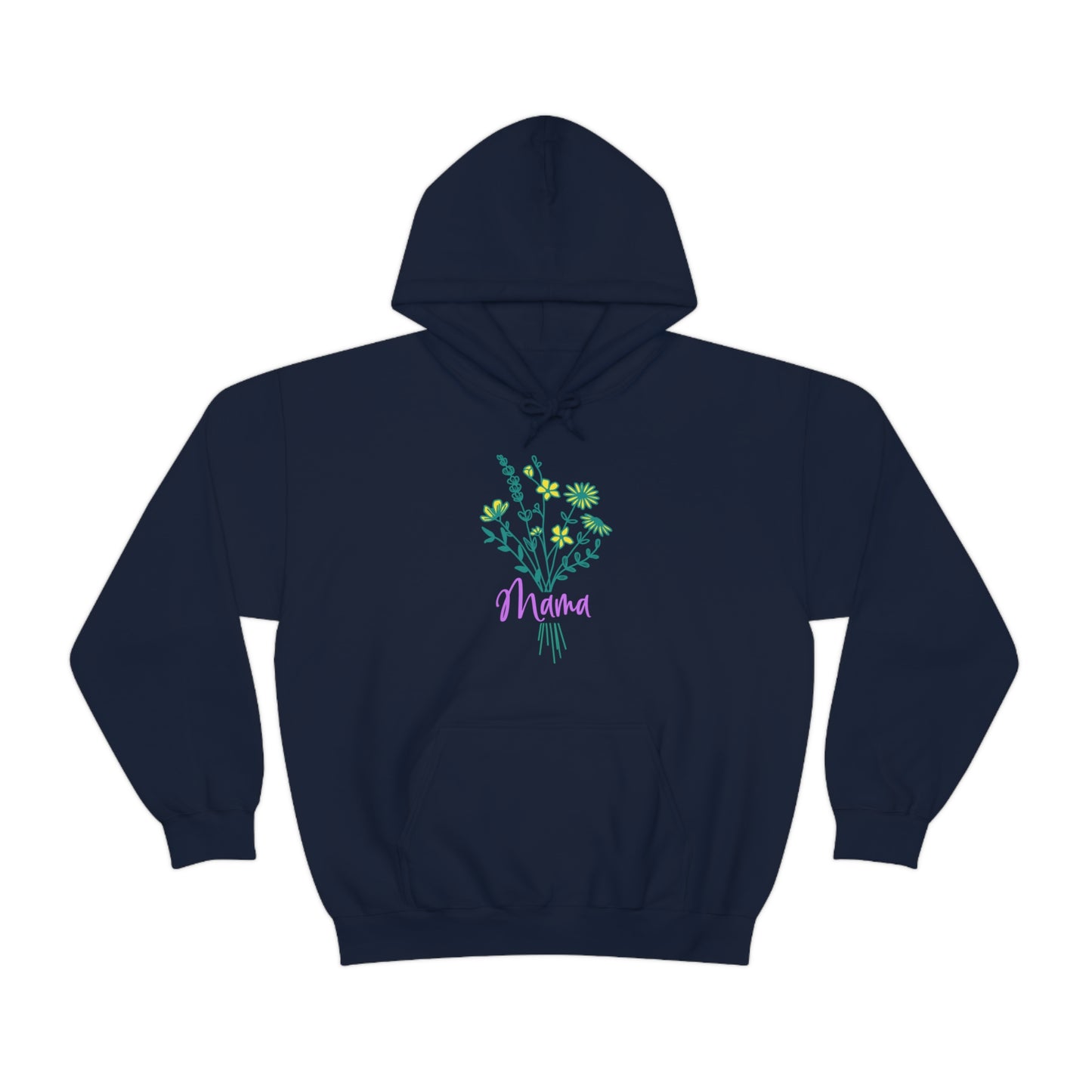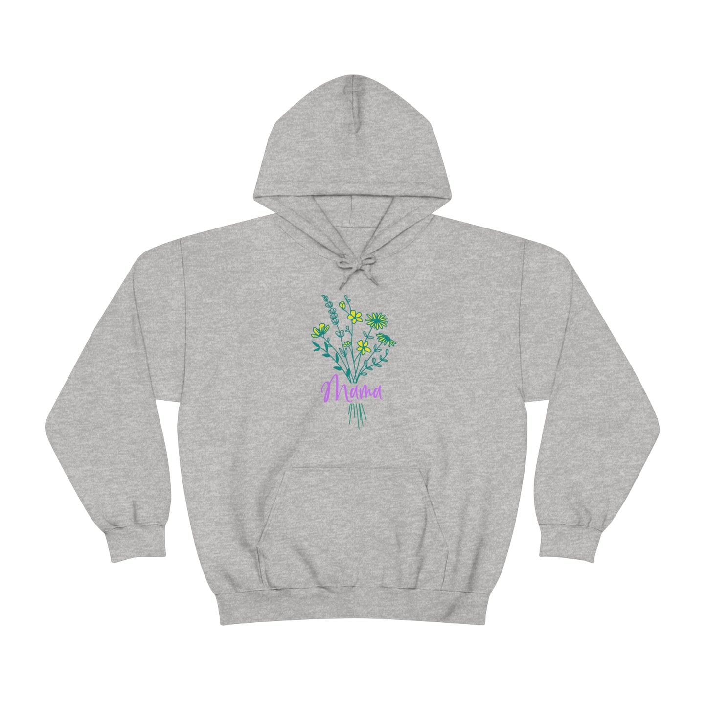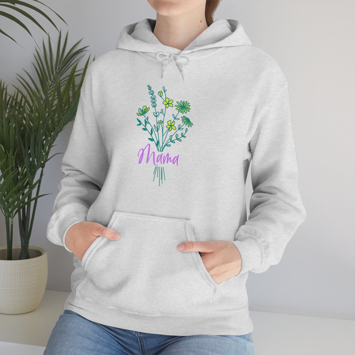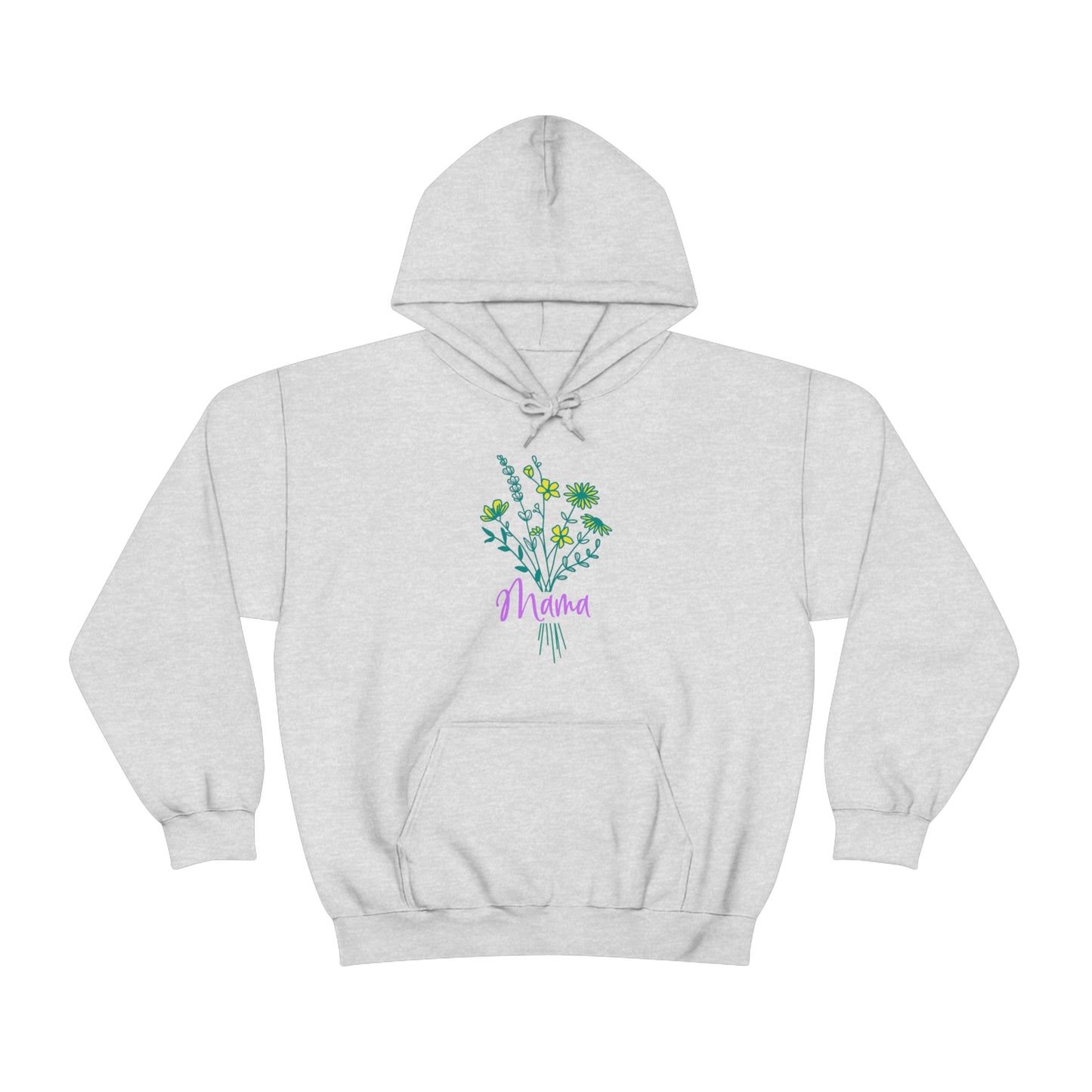 This unisex heavy blend hooded sweatshirt is relaxation itself. Made with a thick blend of cotton and polyester, it feels plush, soft and warm, a perfect choice for any cold day. In the front, the spacious kangaroo pocket adds daily practicality while the hood's drawstring is the same color as the base sweater for extra style points. Chill Stitch – Wildflower Bouquet Mama - Unisex Hooded Hoodie Sweatshirt – Embrace Your Vibe