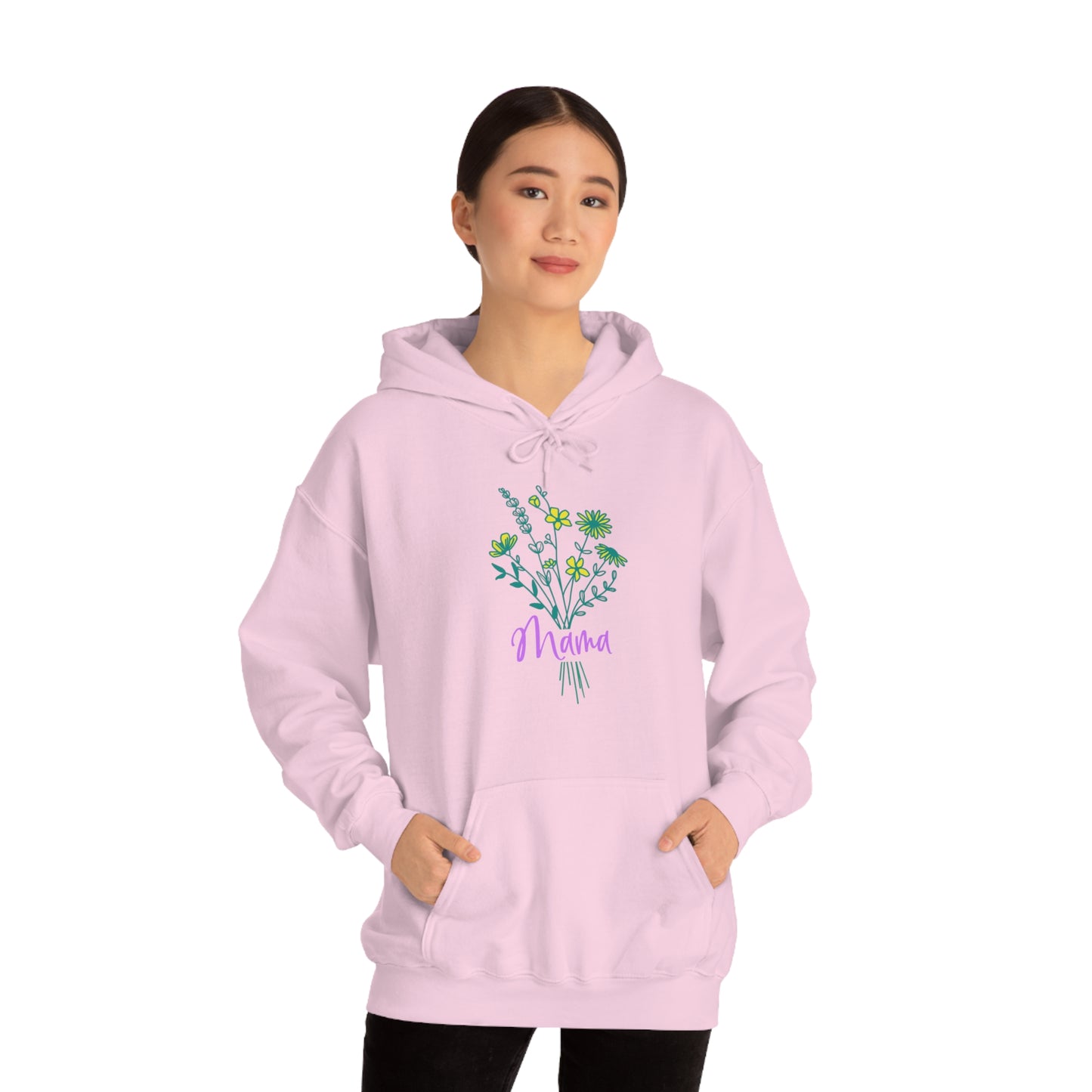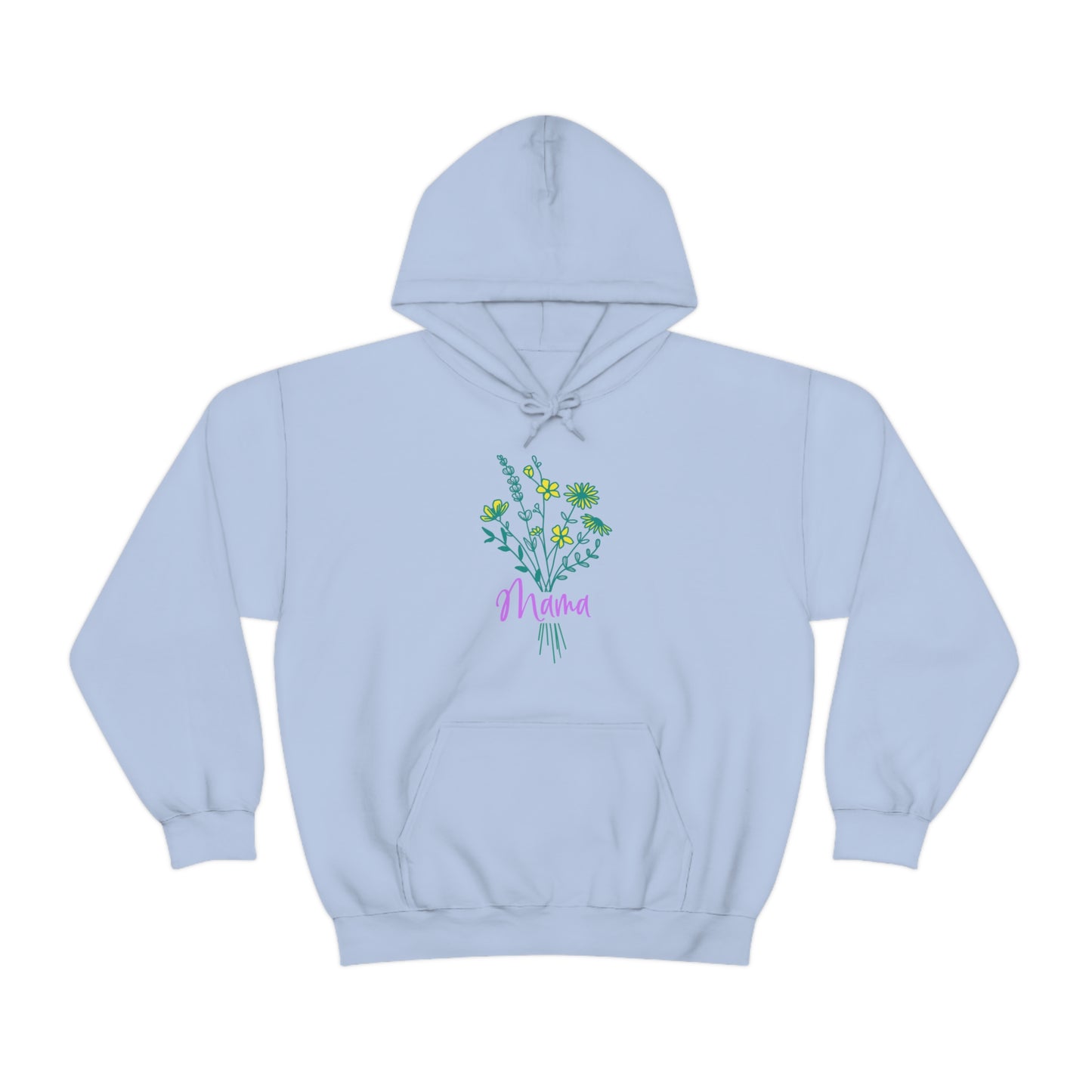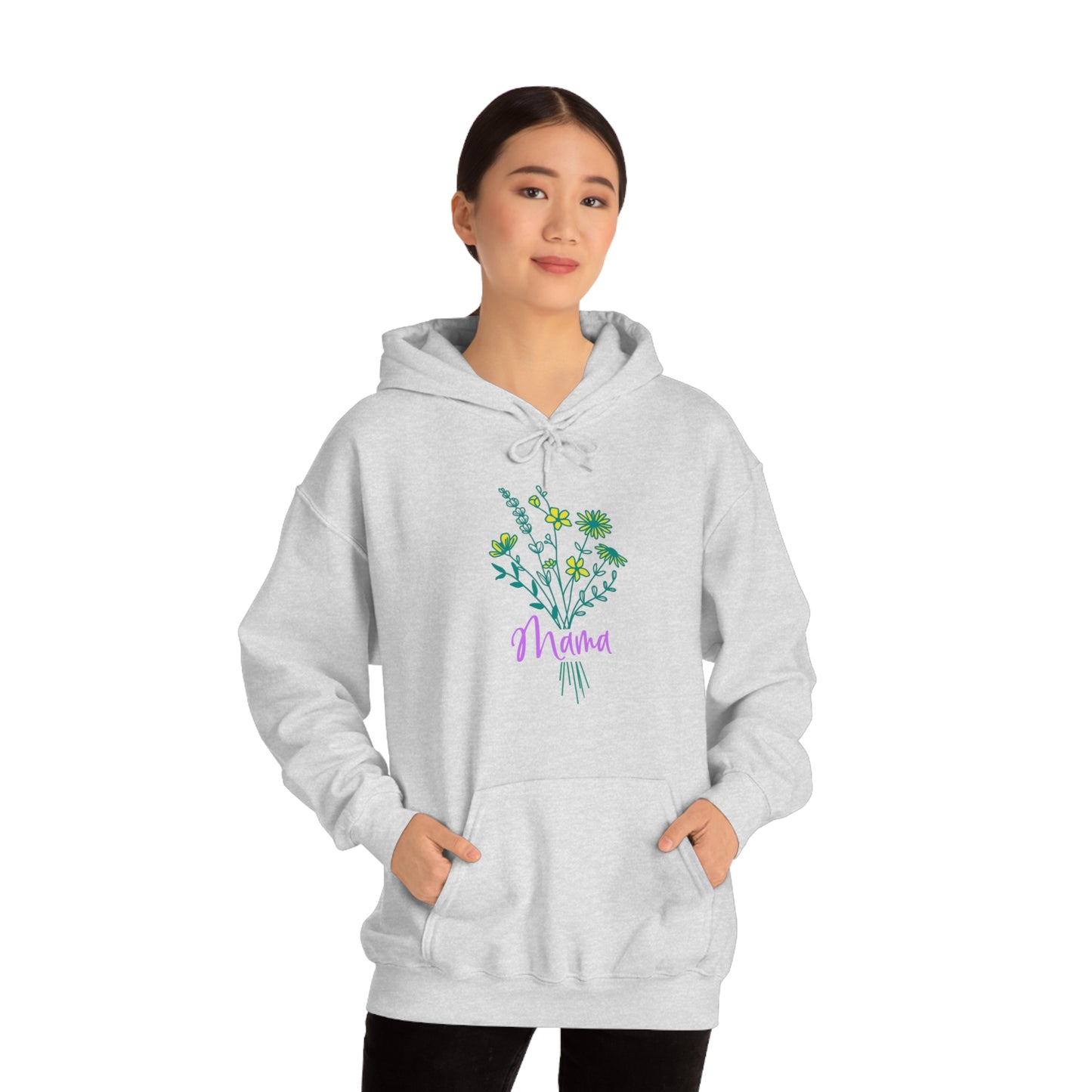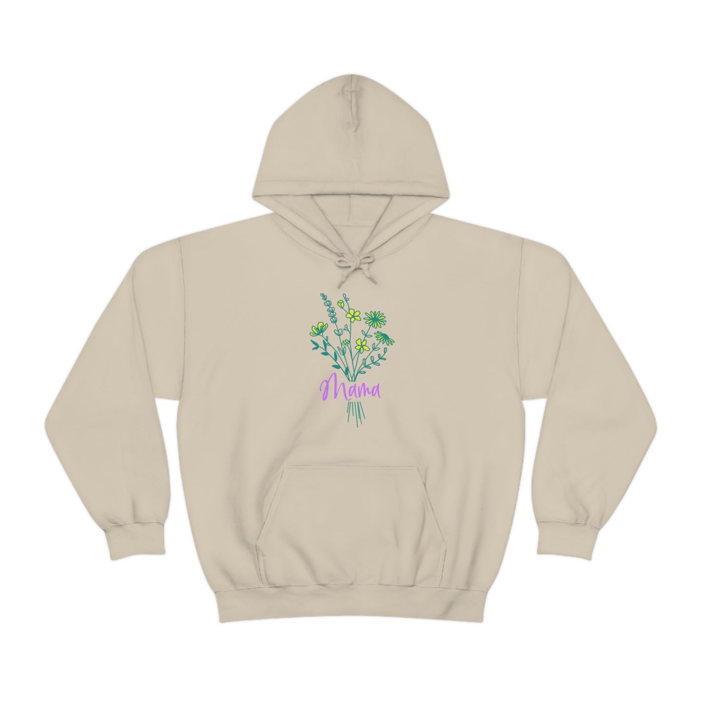 This unisex heavy blend hooded sweatshirt is relaxation itself. Made with a thick blend of cotton and polyester, it feels plush, soft and warm, a perfect choice for any cold day. In the front, the spacious kangaroo pocket adds daily practicality while the hood's drawstring is the same color as the base sweater for extra style points. Chill Stitch – Wildflower Bouquet Mama - Unisex Hooded Hoodie Sweatshirt – Embrace Your Vibe