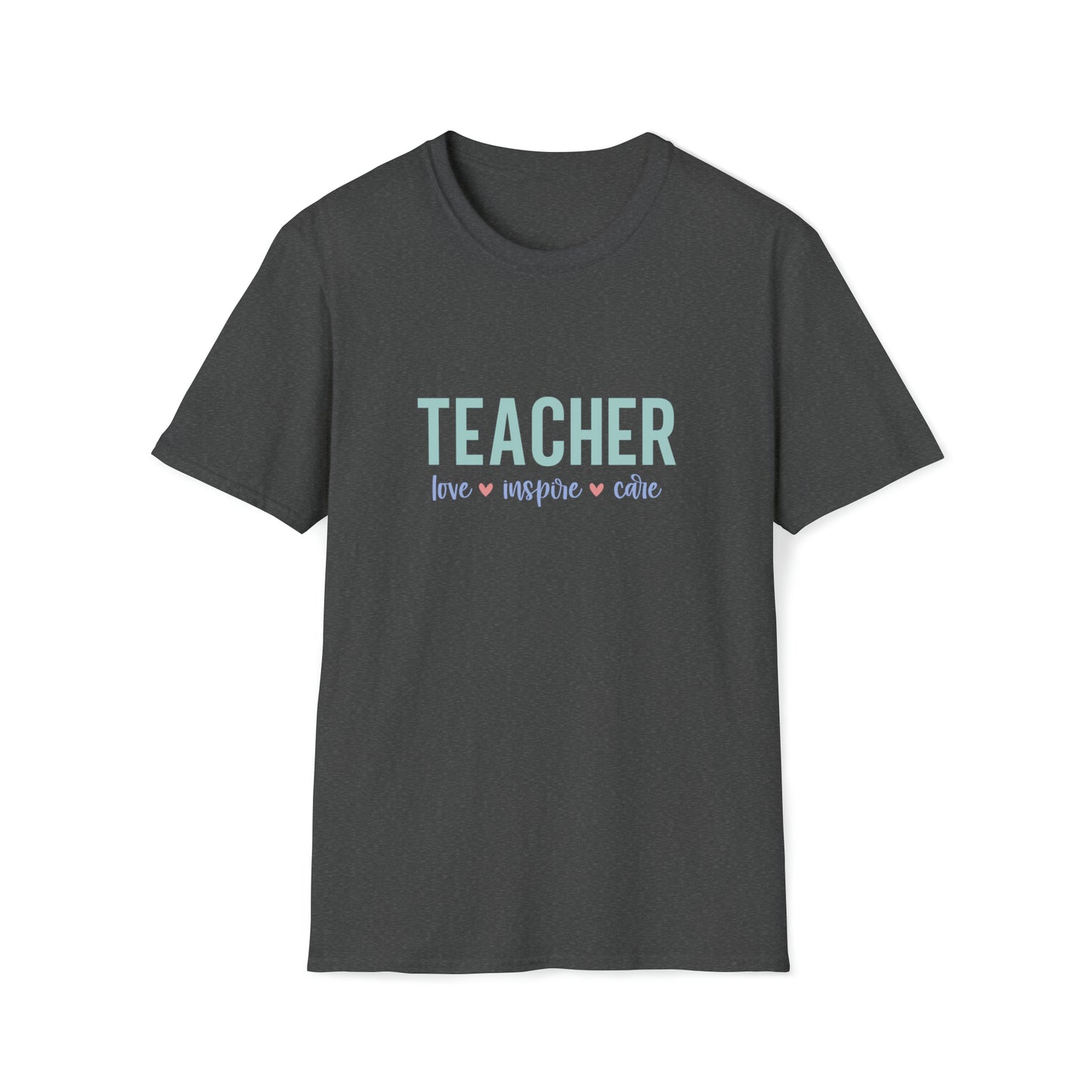 Teacher Life Shirt | Teaching Love Inspire Care | Unisex Soft Style Tee T-Shirt