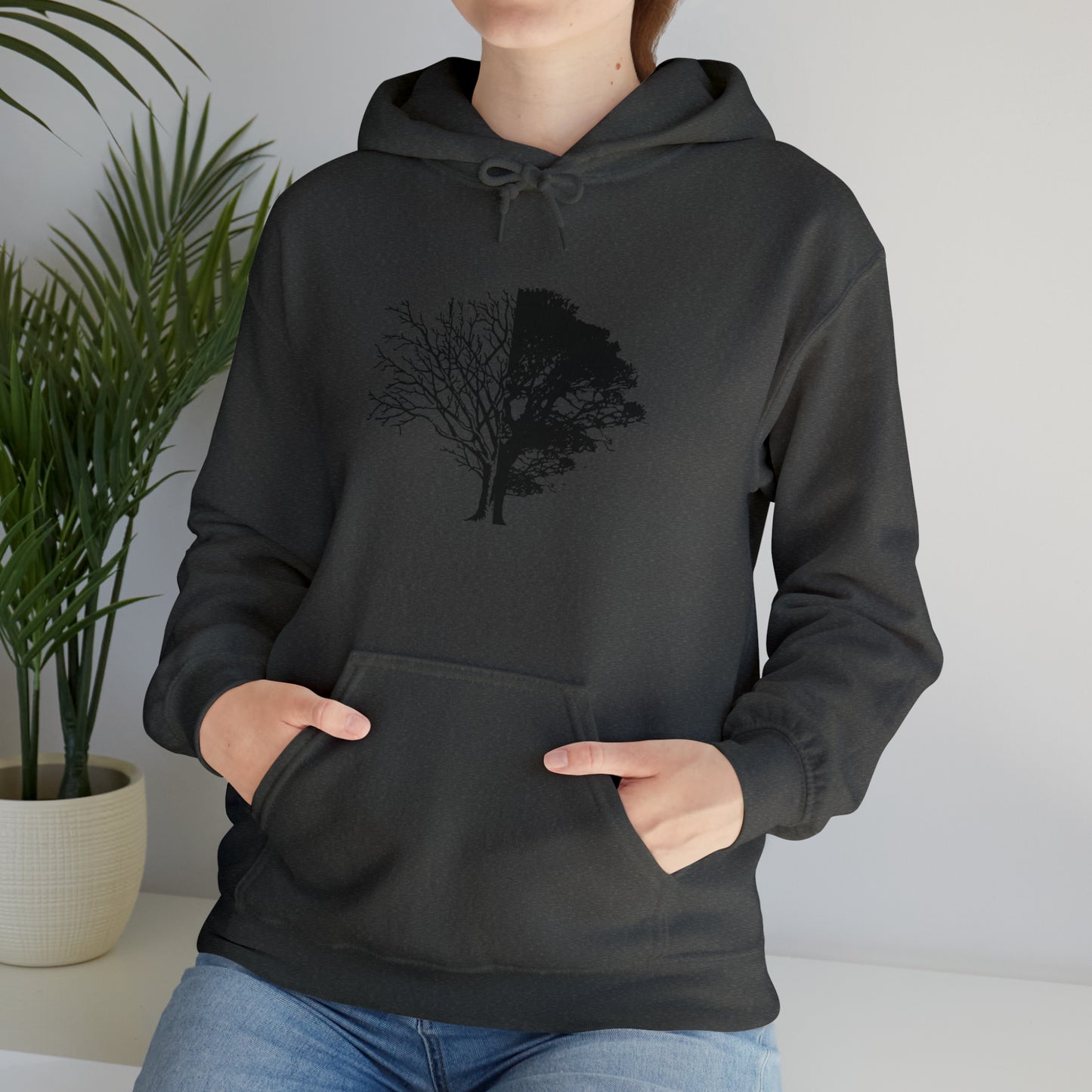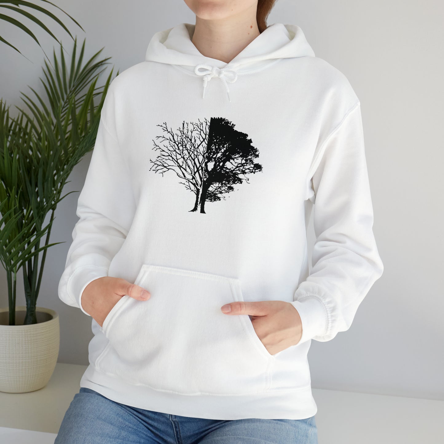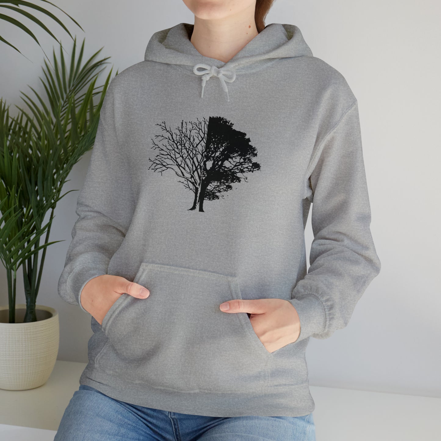 Regular price $54.95This unisex heavy blend hooded sweatshirt is relaxation itself. Made with a thick blend of cotton and polyester, it feels plush, soft and warm, a perfect choice for any cold day. In the front, the spacious kangaroo pocket adds daily practicality while the hood's drawstring is the same color as the base sweater for extra style points. Chill Stitch – Life And Death Tree | Abstract | Minimalist | Modern - Unisex Hooded Hoodie Sweatshirt – Embrace Your Vibe