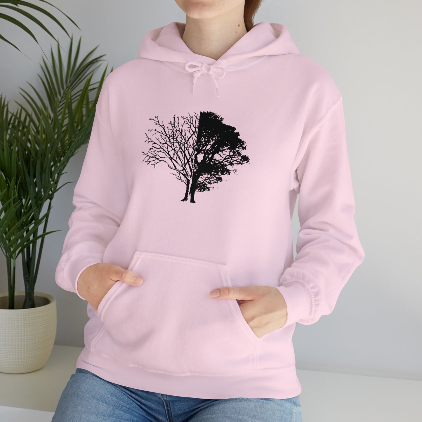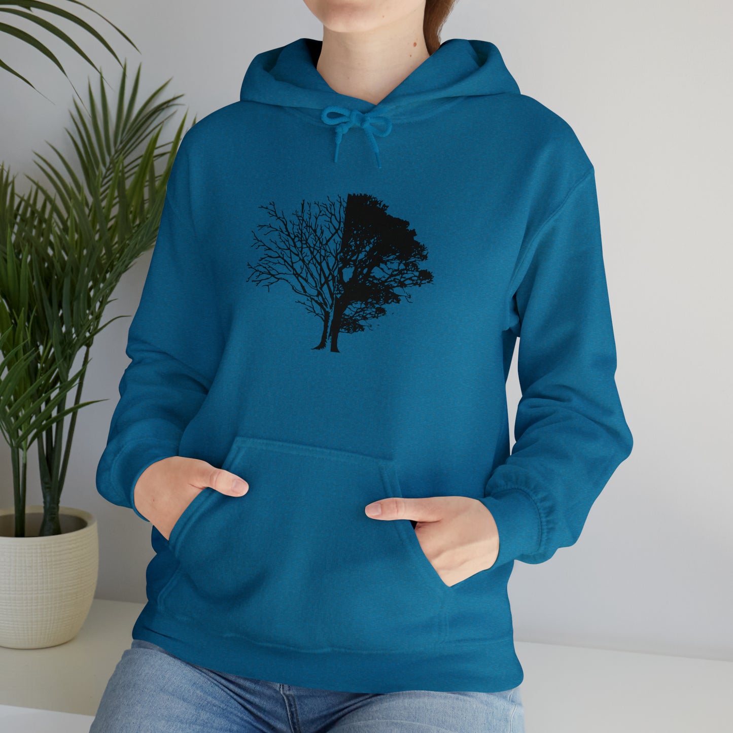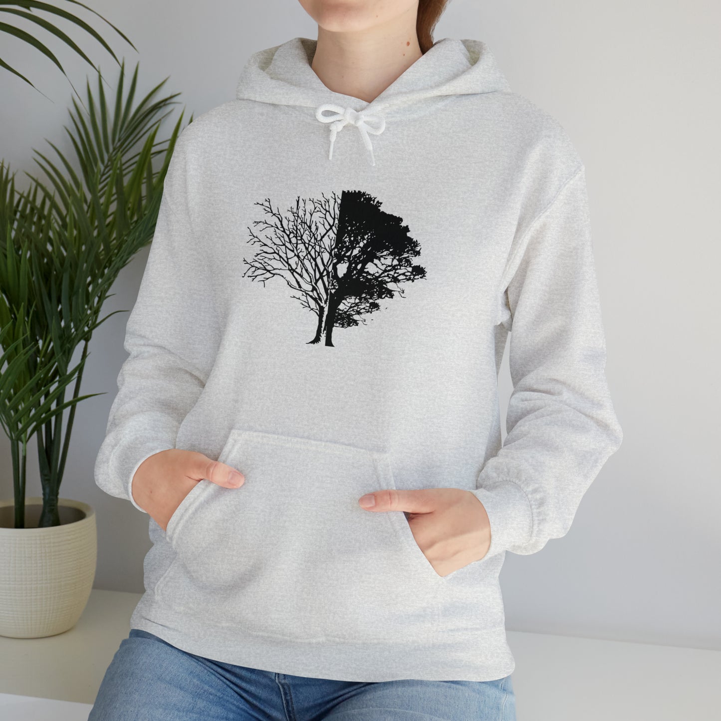 Regular price $54.95This unisex heavy blend hooded sweatshirt is relaxation itself. Made with a thick blend of cotton and polyester, it feels plush, soft and warm, a perfect choice for any cold day. In the front, the spacious kangaroo pocket adds daily practicality while the hood's drawstring is the same color as the base sweater for extra style points. Chill Stitch – Life And Death Tree | Abstract | Minimalist | Modern - Unisex Hooded Hoodie Sweatshirt – Embrace Your Vibe