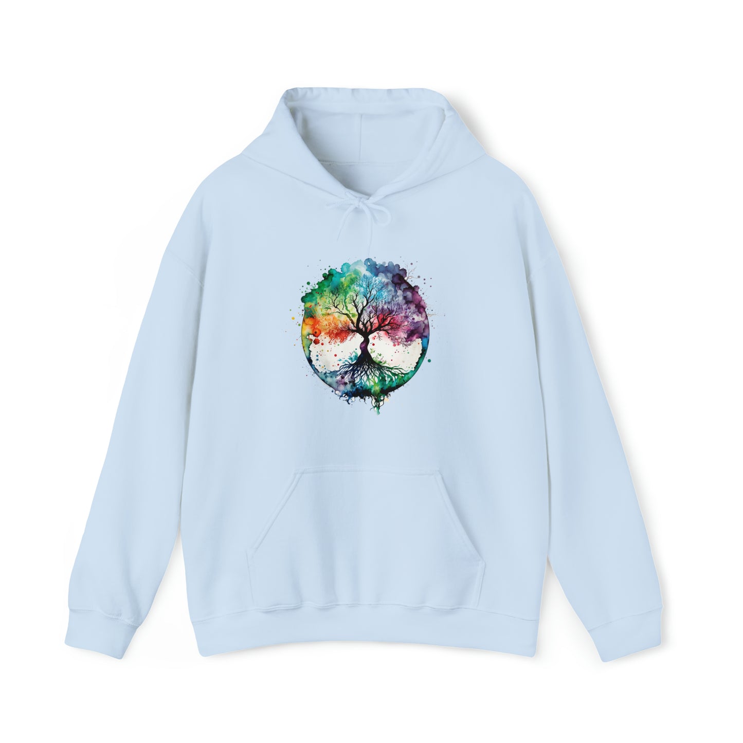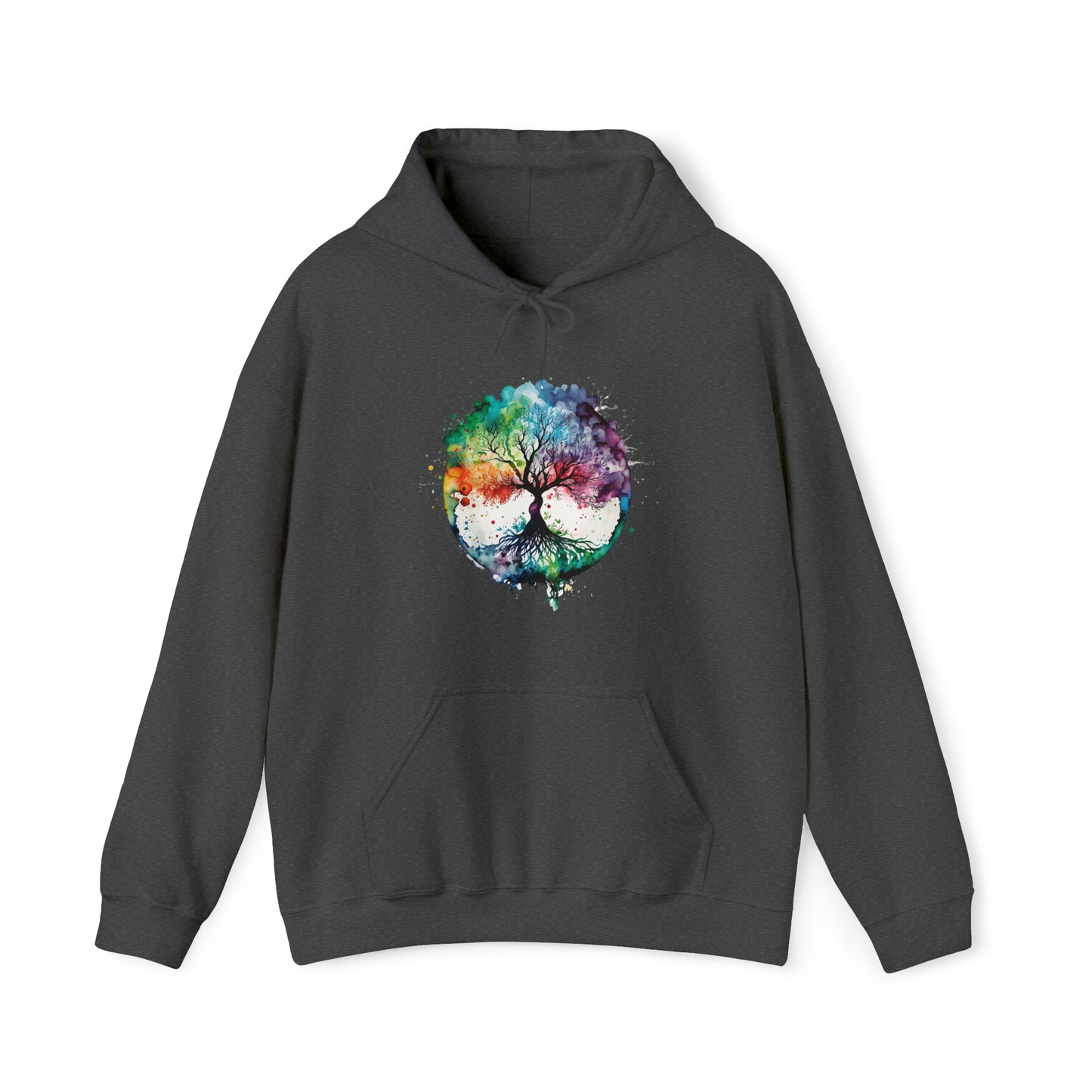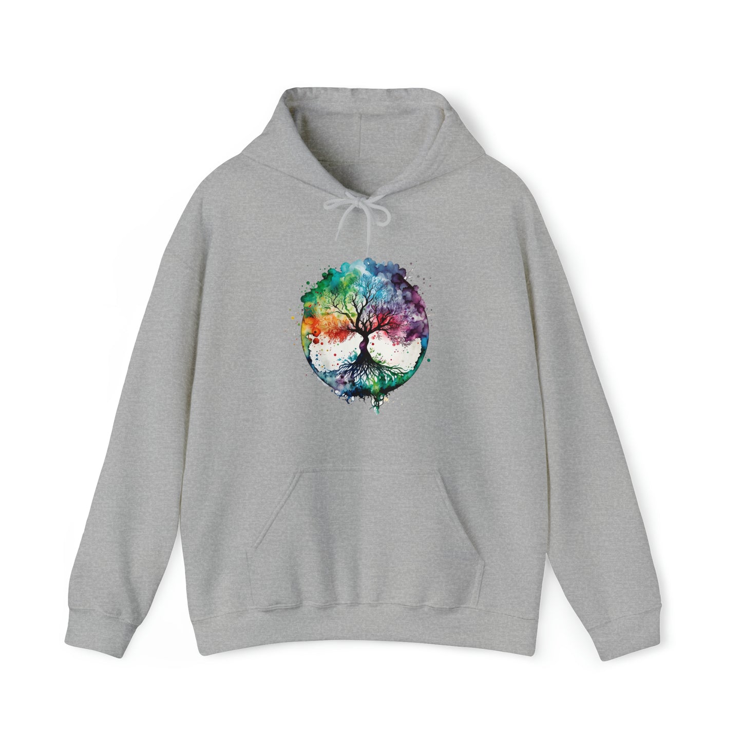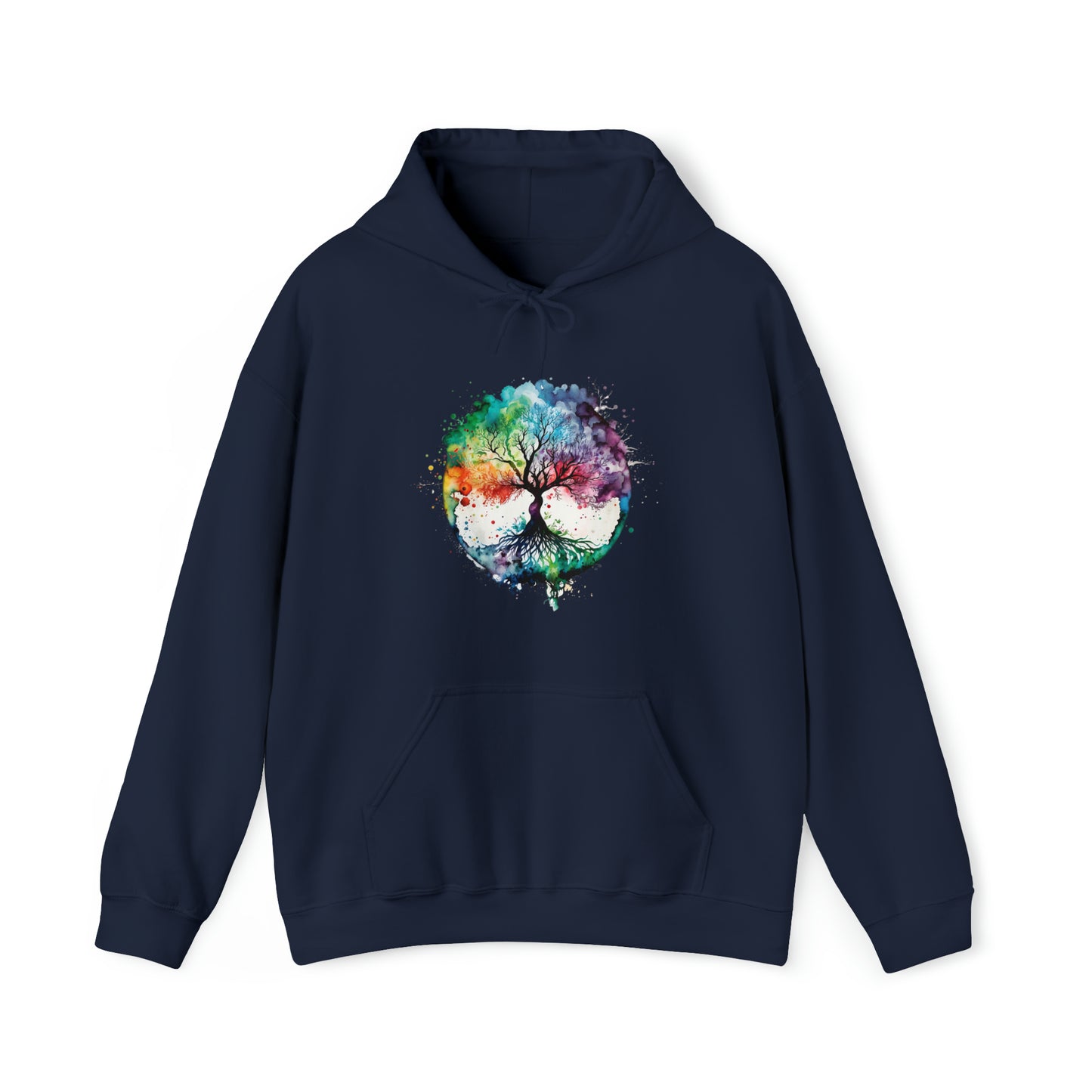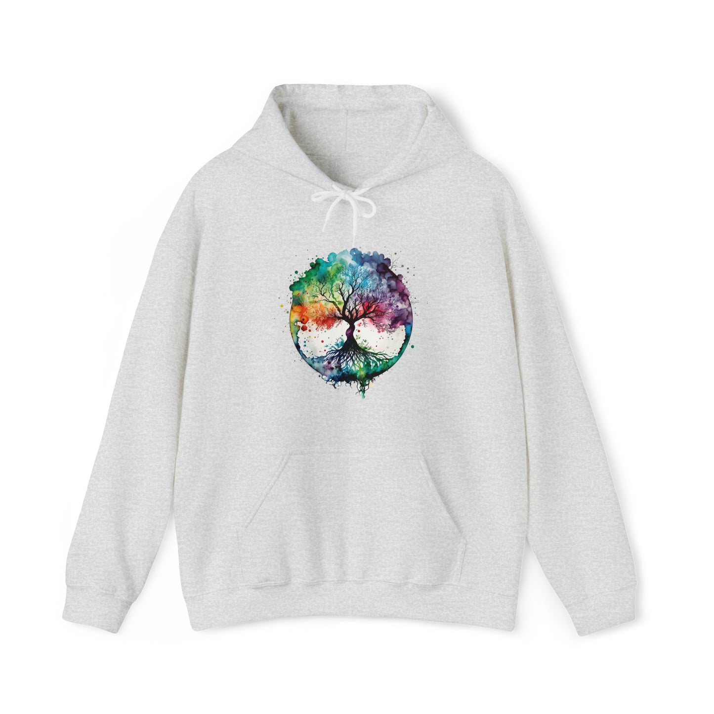 This unisex heavy blend hooded sweatshirt is relaxation itself. Made with a thick blend of cotton and polyester, it feels plush, soft and warm, a perfect choice for any cold day. In the front, the spacious kangaroo pocket adds daily practicality while the hood's drawstring is the same color as the base sweater for extra style points. Chill Stitch – Tree of Life Watercolor V1 Color Flow - Unisex Hooded Hoodie Sweatshirt – Embrace Your Vibe