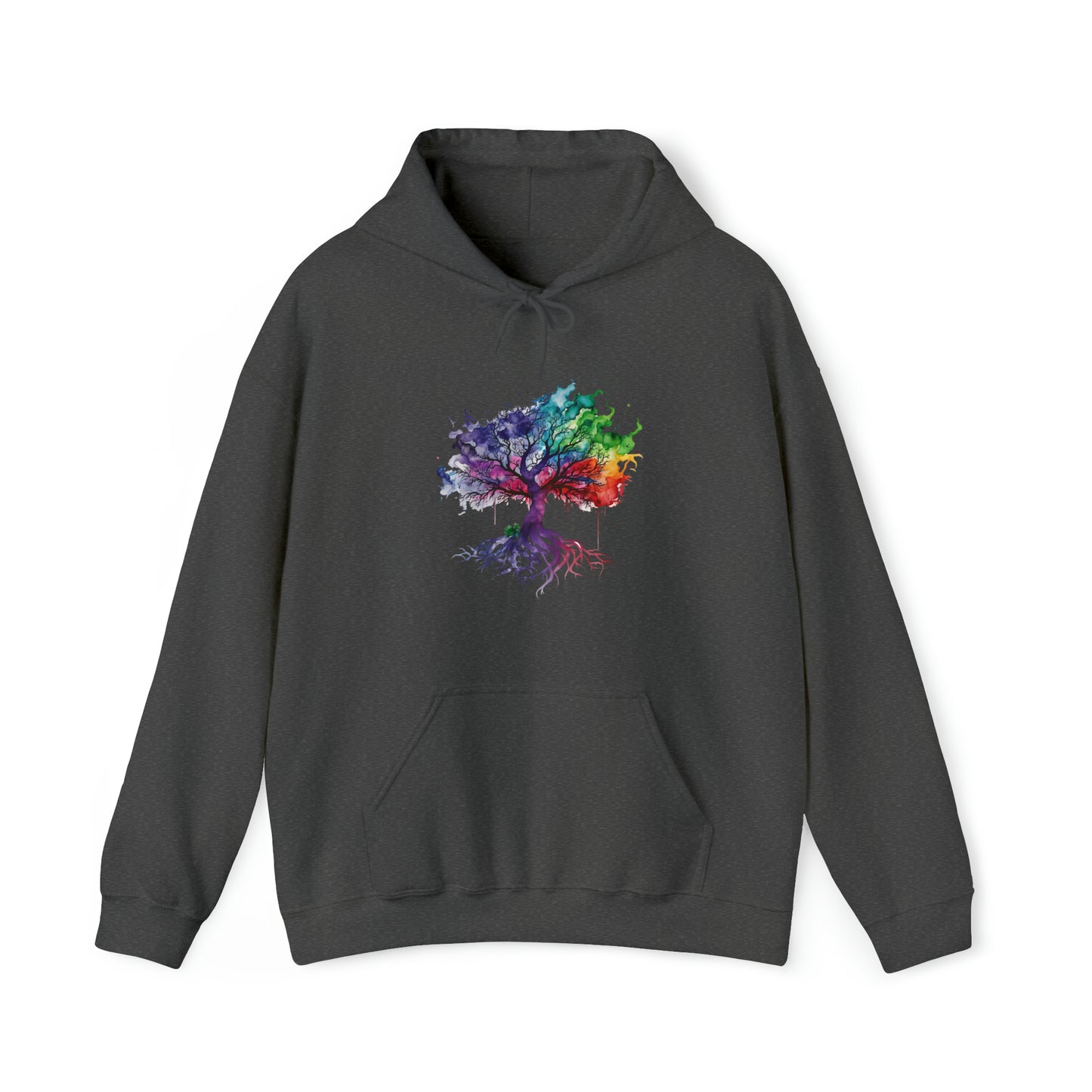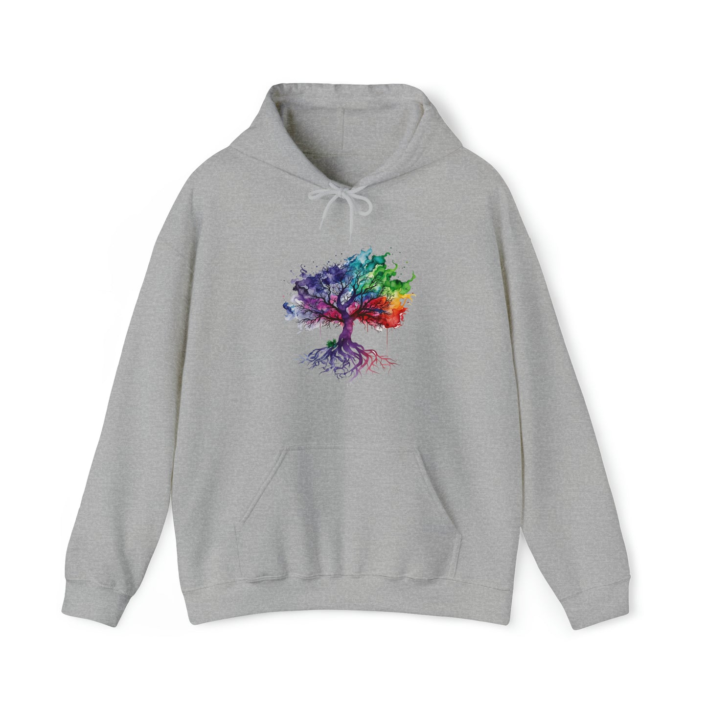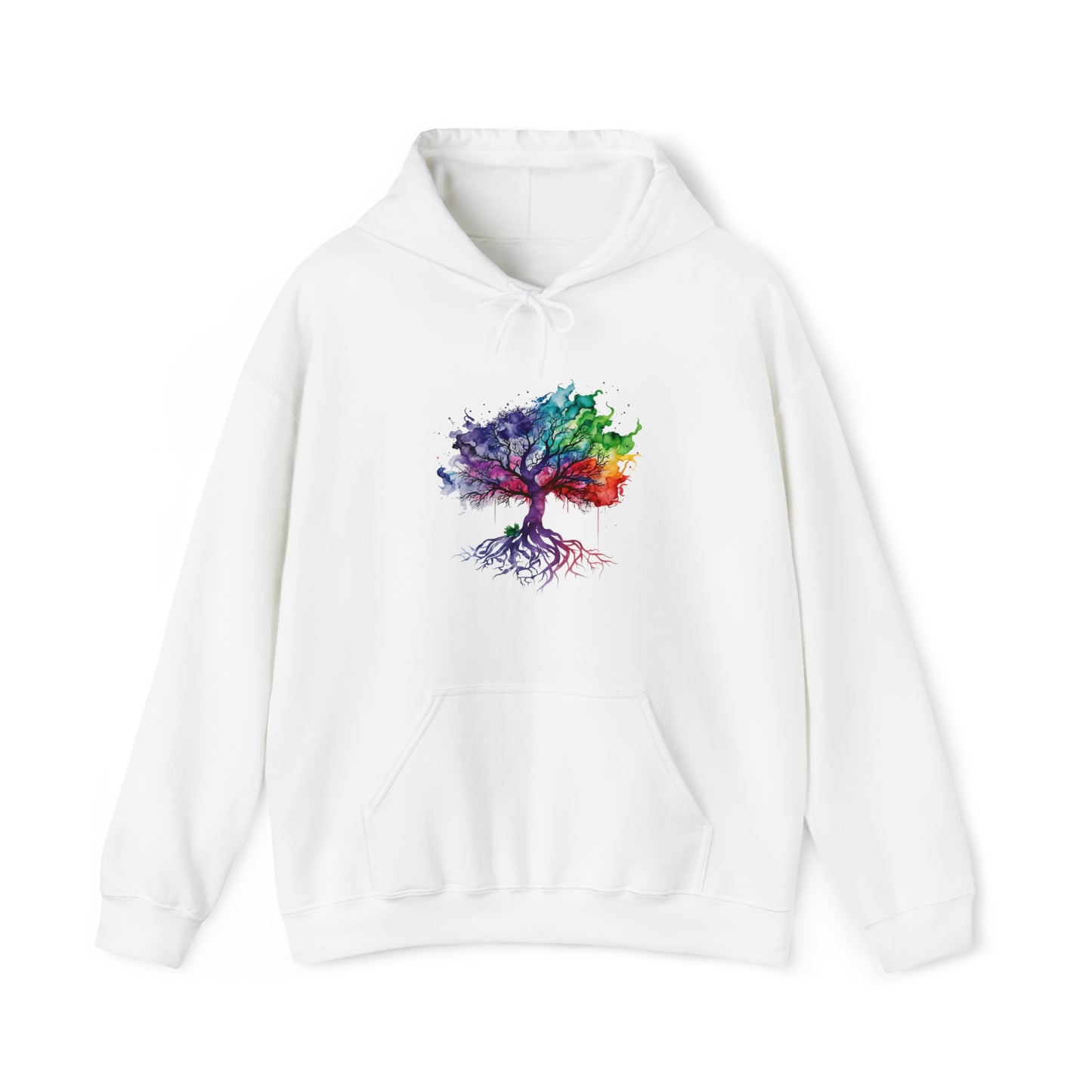 This unisex heavy blend hooded sweatshirt is relaxation itself. Made with a thick blend of cotton and polyester, it feels plush, soft and warm, a perfect choice for any cold day. In the front, the spacious kangaroo pocket adds daily practicality while the hood's drawstring is the same color as the base sweater for extra style points. Chill Stitch – Tree of Life Watercolor Flowing Color V2 - Unisex Hooded Hoodie Sweatshirt – Embrace Your Vibe