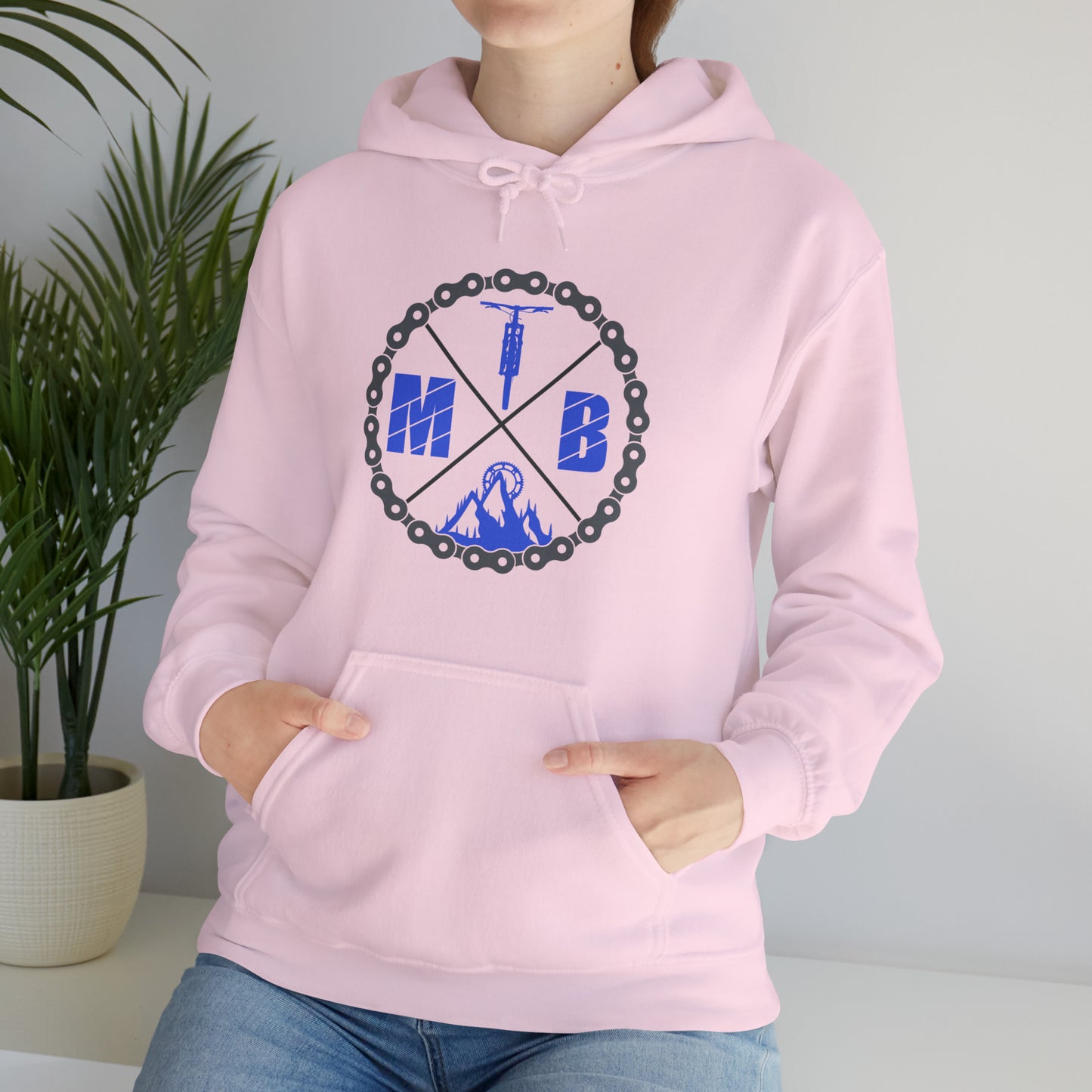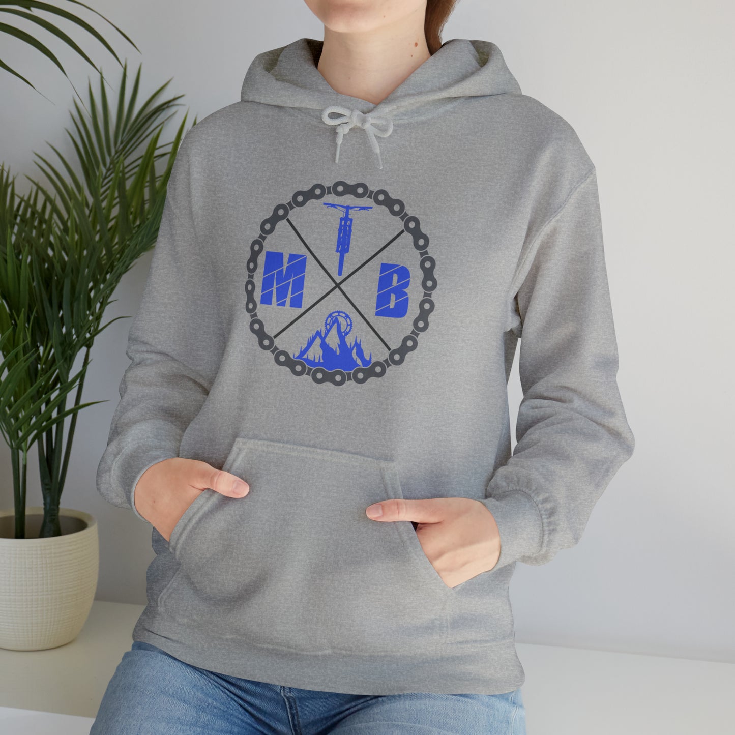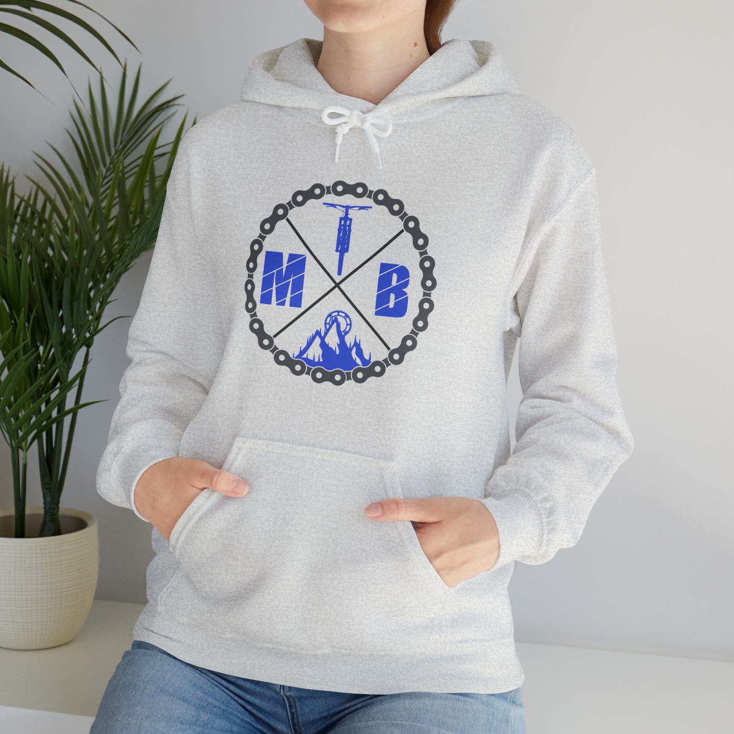 This unisex heavy blend hooded sweatshirt is relaxation itself. Made with a thick blend of cotton and polyester, it feels plush, soft and warm, a perfect choice for any cold day. In the front, the spacious kangaroo pocket adds daily practicality while the hood's drawstring is the same color as the base sweater for extra style points. Chill Stitch – MTB Chain Circle Mountain Bike Biking - Unisex Hooded Hoodie Sweatshirt – Embrace Your Vibe