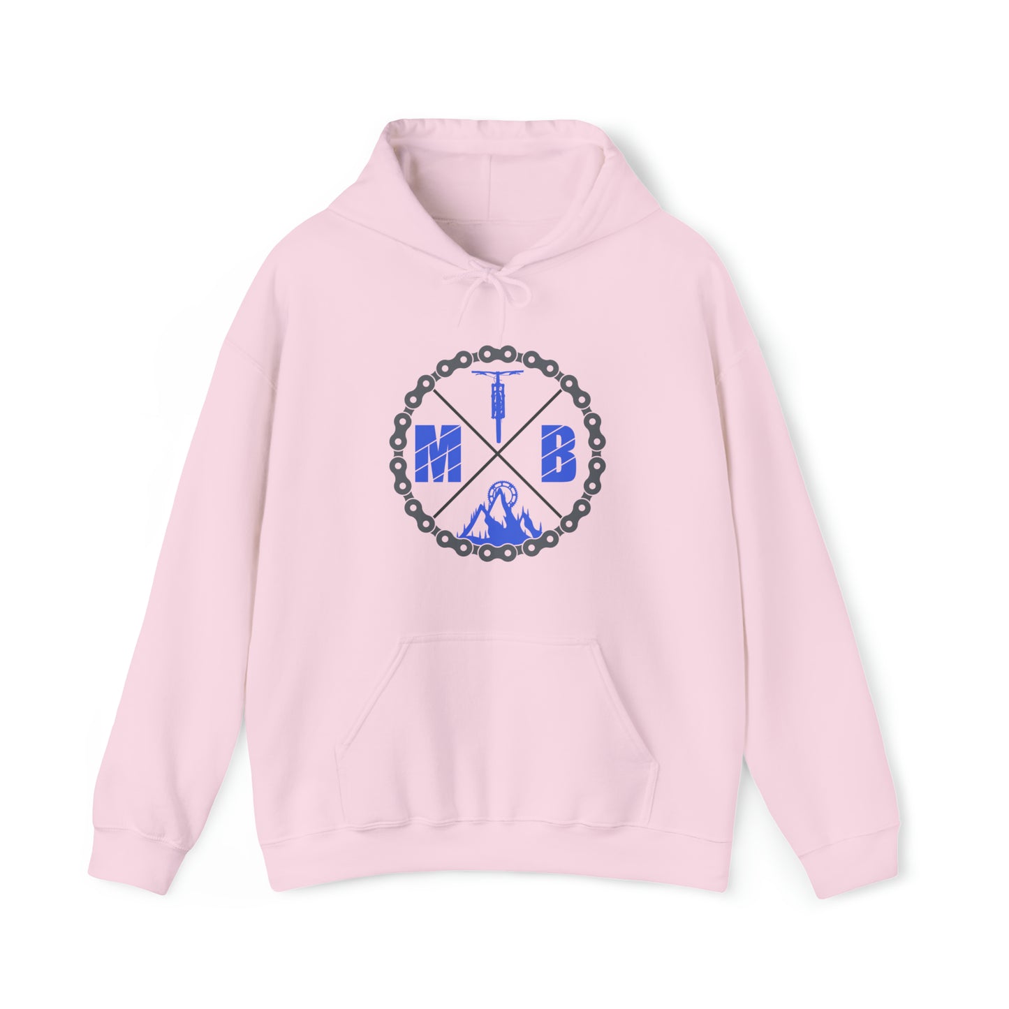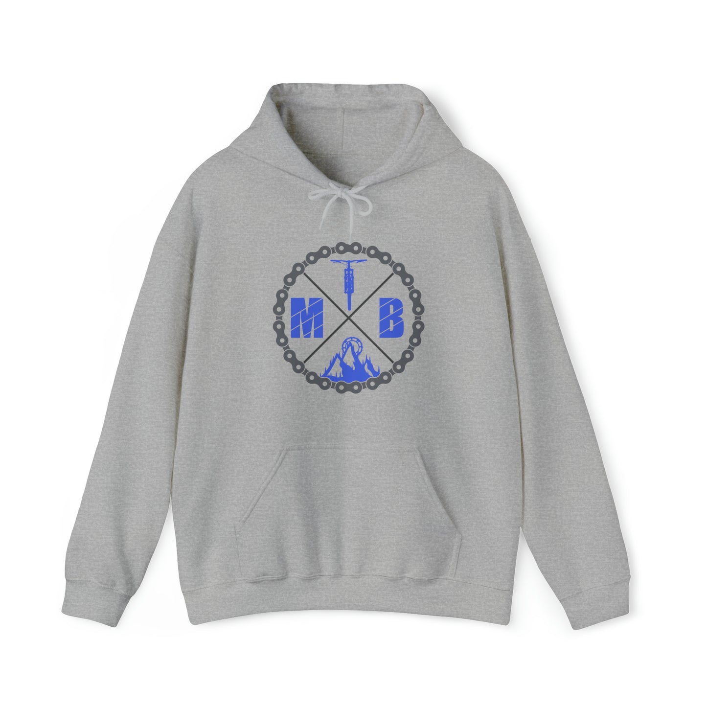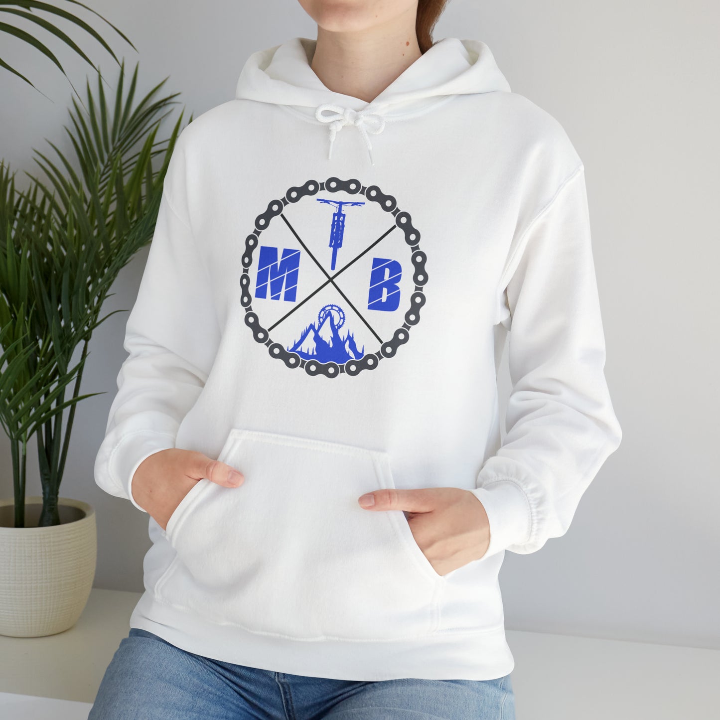 This unisex heavy blend hooded sweatshirt is relaxation itself. Made with a thick blend of cotton and polyester, it feels plush, soft and warm, a perfect choice for any cold day. In the front, the spacious kangaroo pocket adds daily practicality while the hood's drawstring is the same color as the base sweater for extra style points. Chill Stitch – MTB Chain Circle Mountain Bike Biking - Unisex Hooded Hoodie Sweatshirt – Embrace Your Vibe